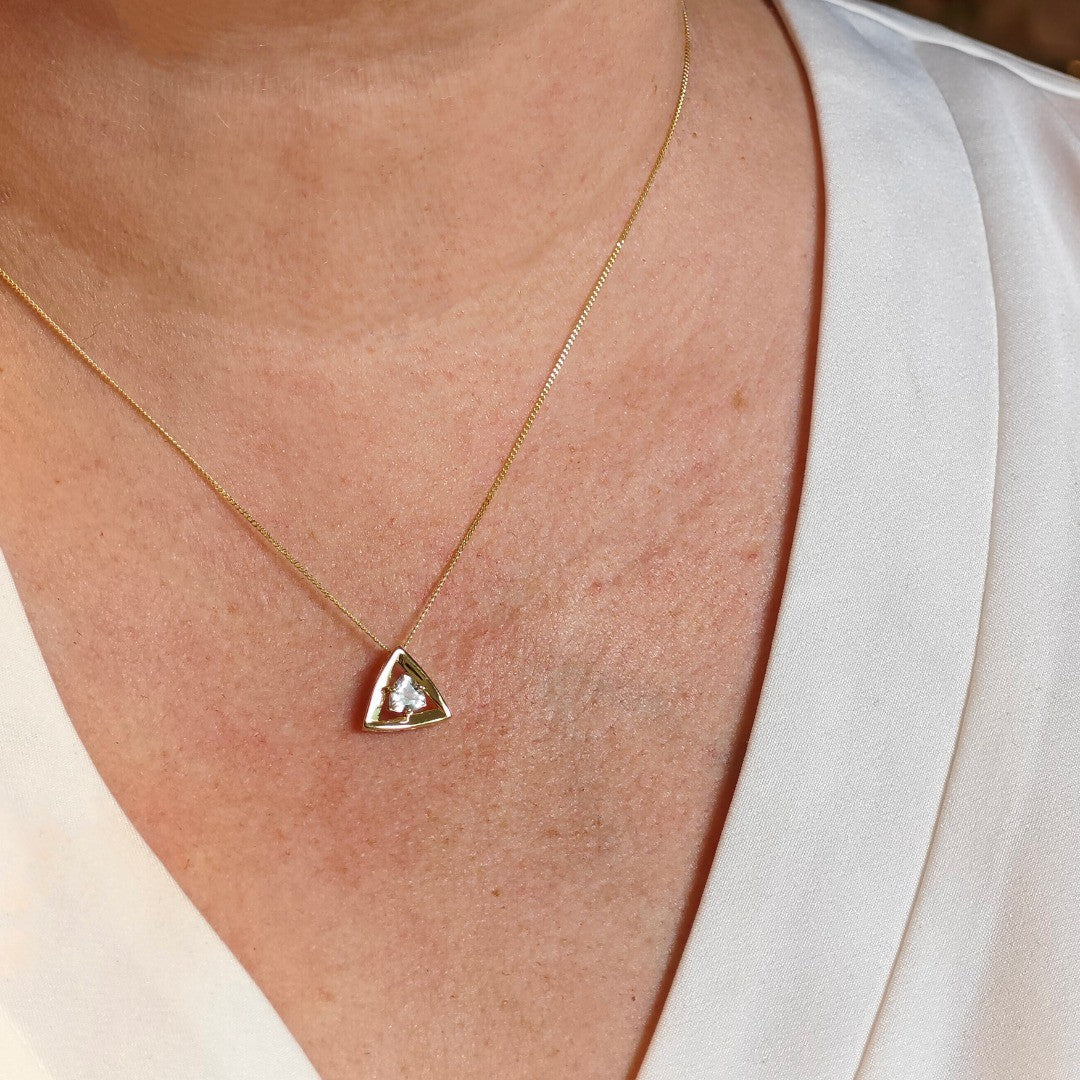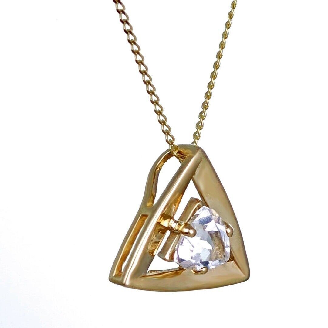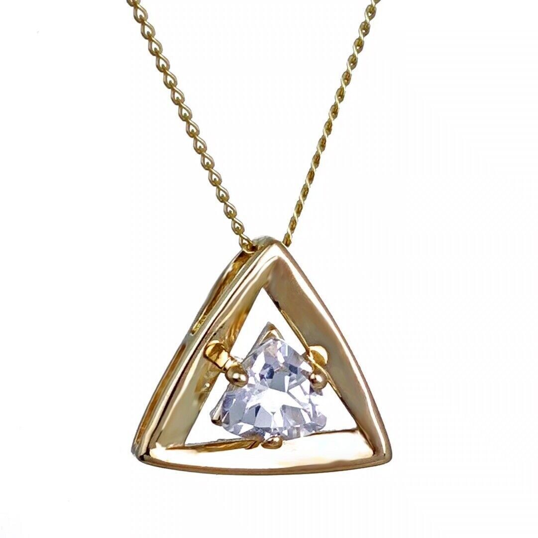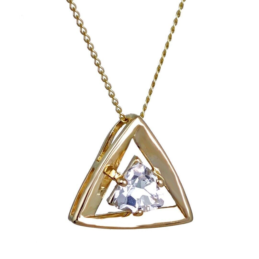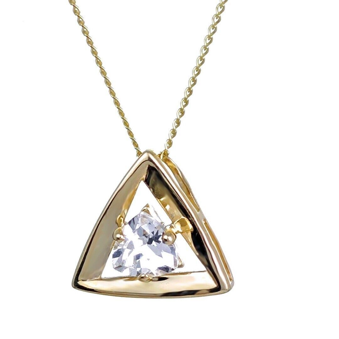 9ct Yellow Gold Topaz Necklace Natural White Trillion Gemstone Pendant
