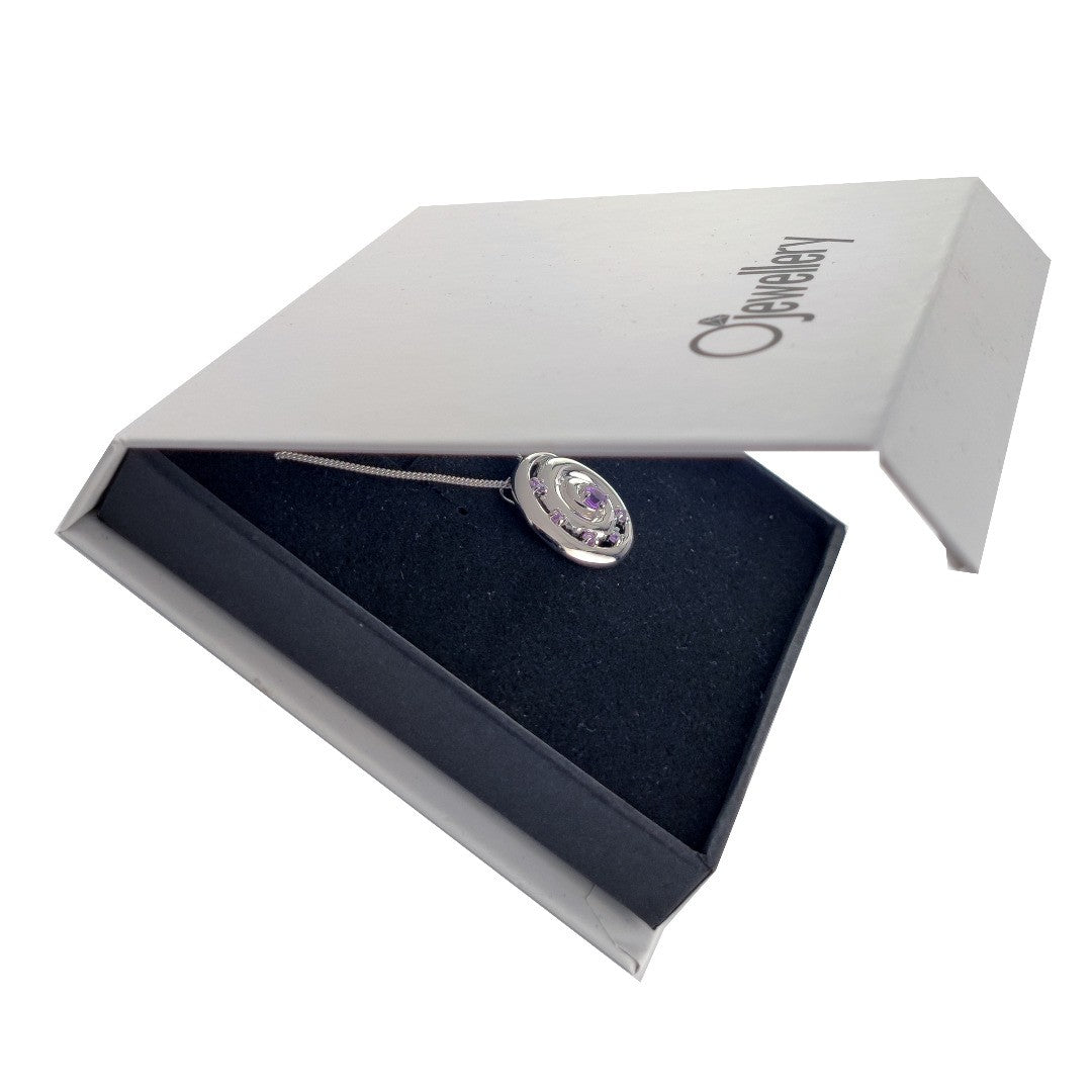 Amethysts are associated with calm and wisdom. They are the birthstone for February.This elegant pendant is suitable to wear for daytime or evening wear.