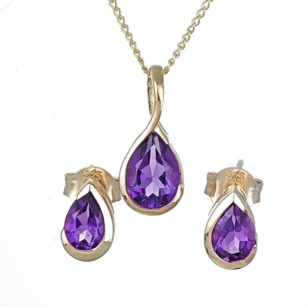 The earrings feature pear-shaped amethyst gemstones. They are perfect for everyday wear or for special occasions.