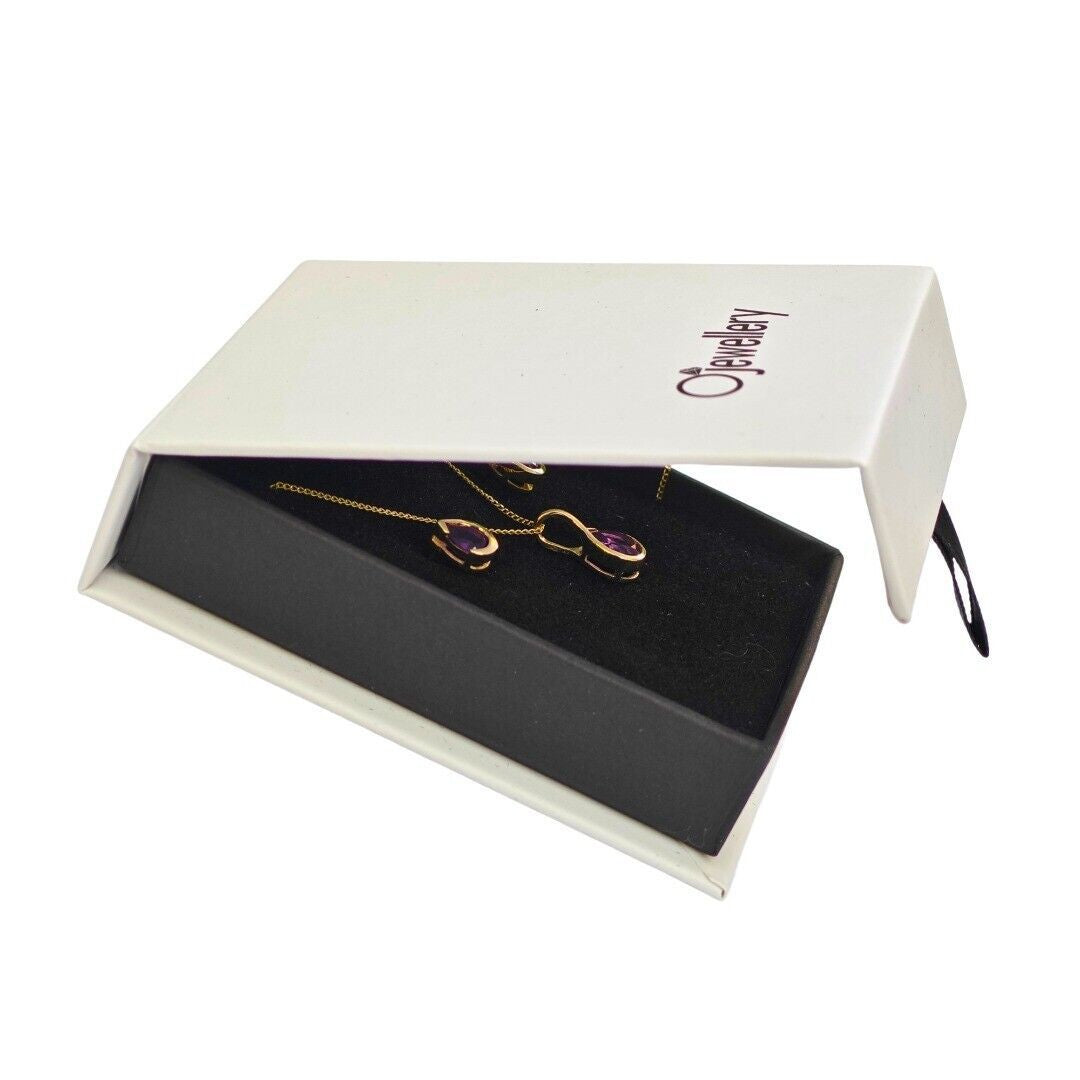 Amethyst Set Pendant and Earrings 9ct Yellow Gold Infinity Loop