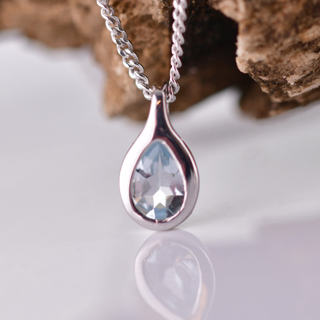 Aquamarine Necklace Pear Pendant Sterling Silver March Birthstone