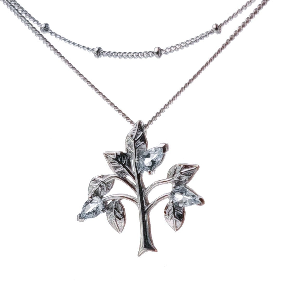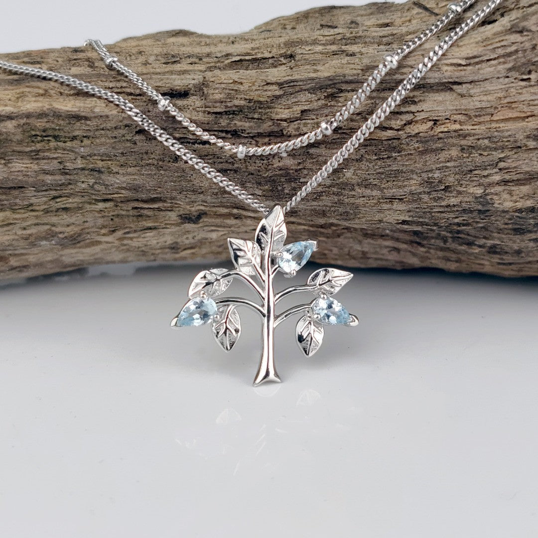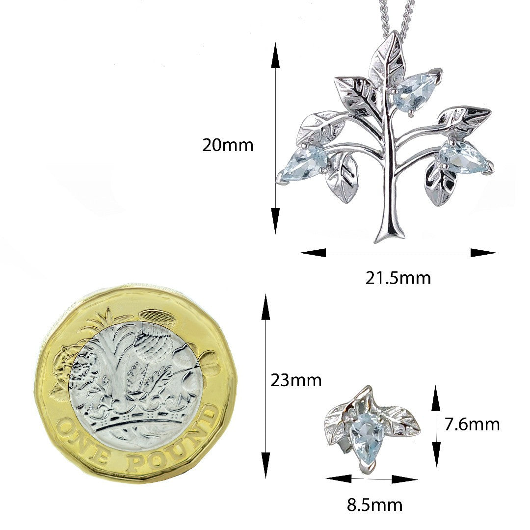 Aquamarine Necklace Set Tree of Life Sterling Silver 2 Chains