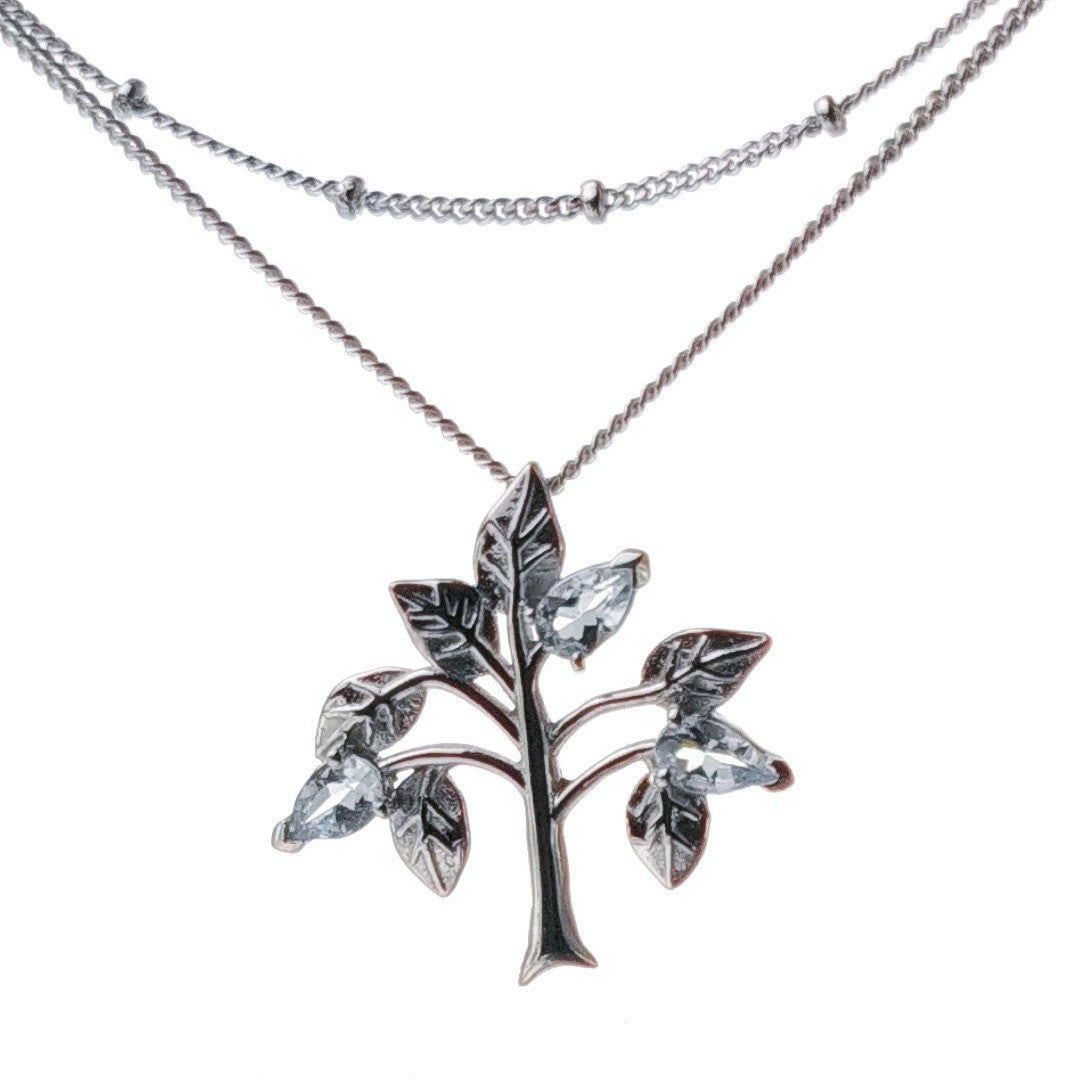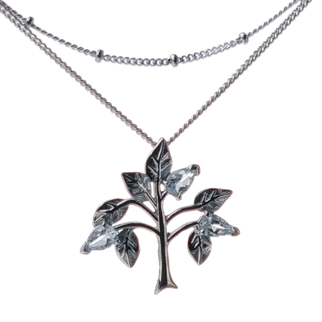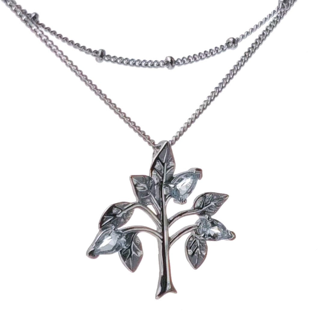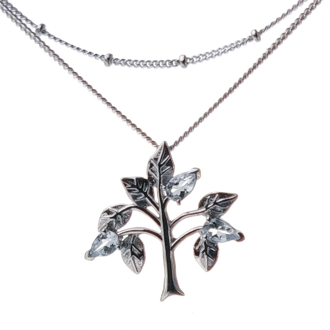 Aquamarine Necklace Set Tree of Life Sterling Silver 2 Chains