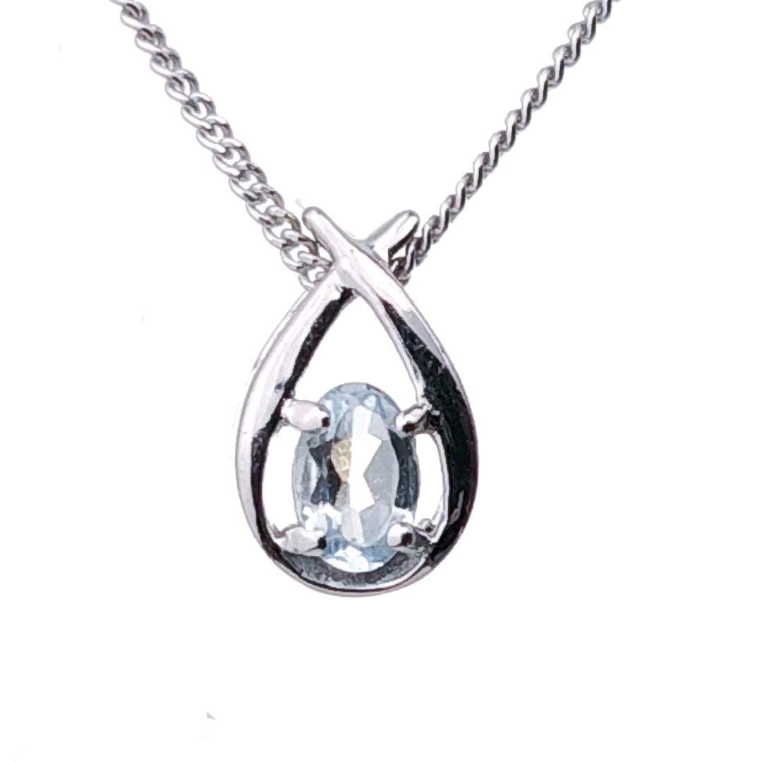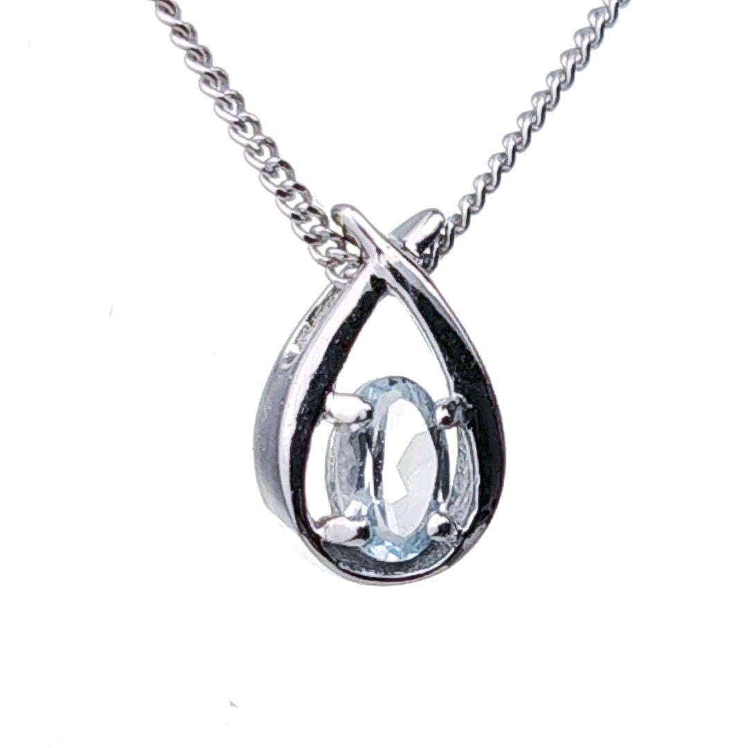 Aquamarine Necklace Sterling Silver Blue Twist Pendant Birthday Gift
