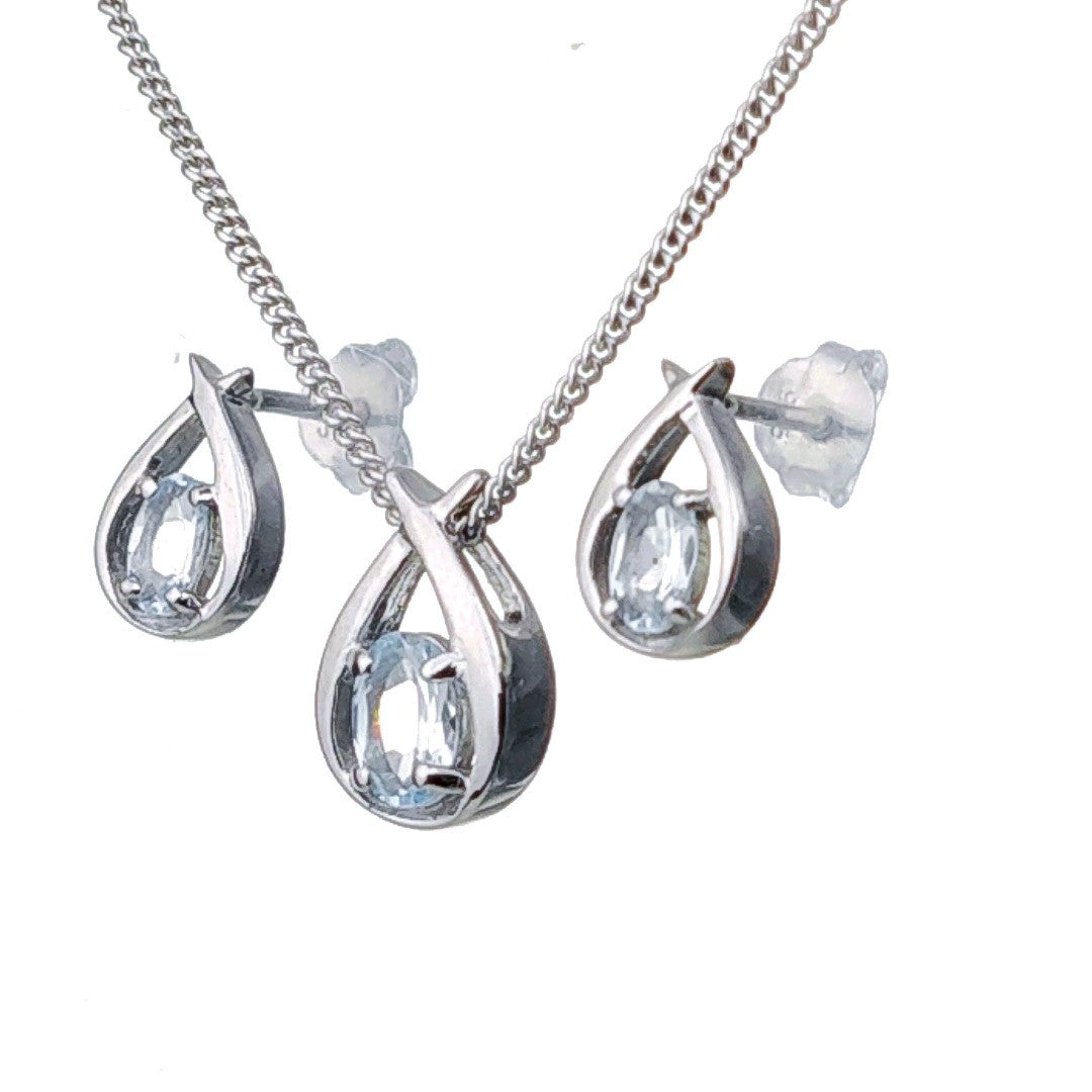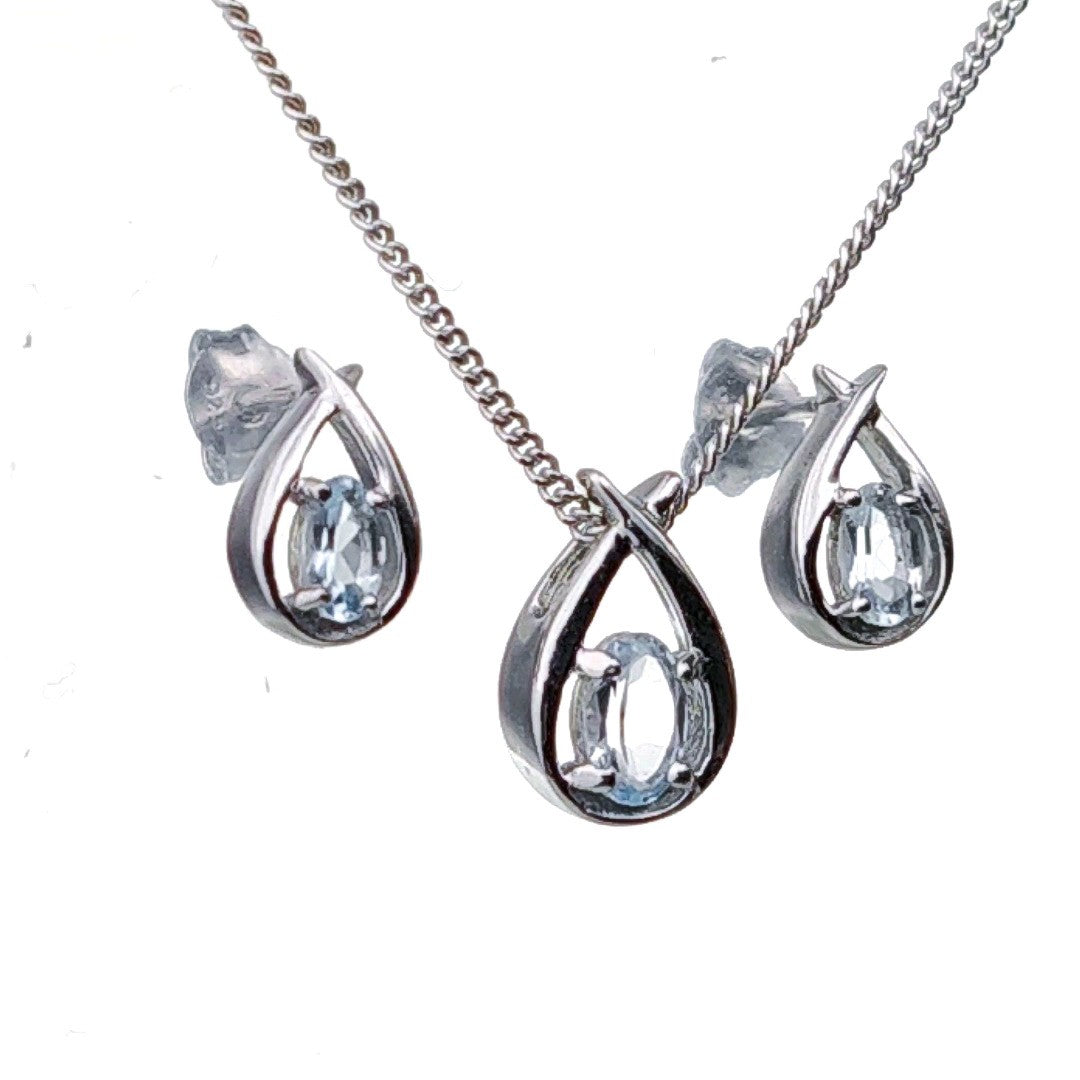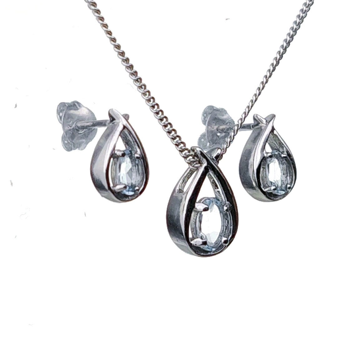 Aquamarine Set Necklace Earrings Sterling Silver Blue Twist Pendant Birthday Gift