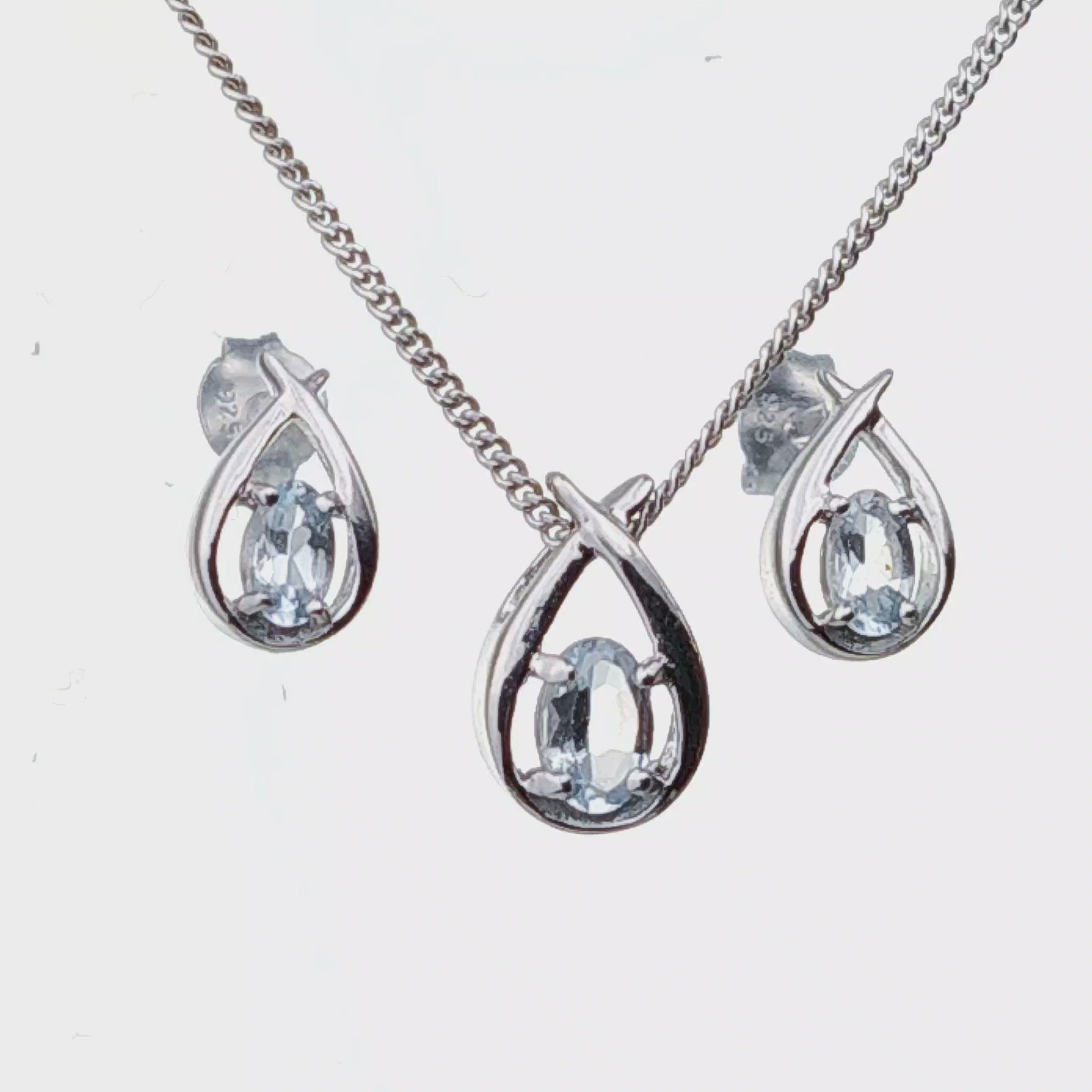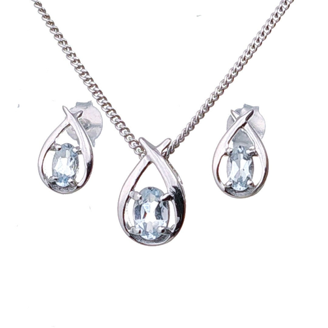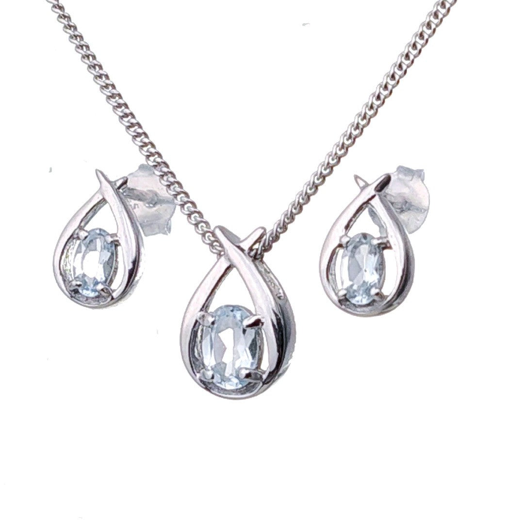 Aquamarine Set Necklace Earrings Sterling Silver Blue Twist Pendant Birthday Gift