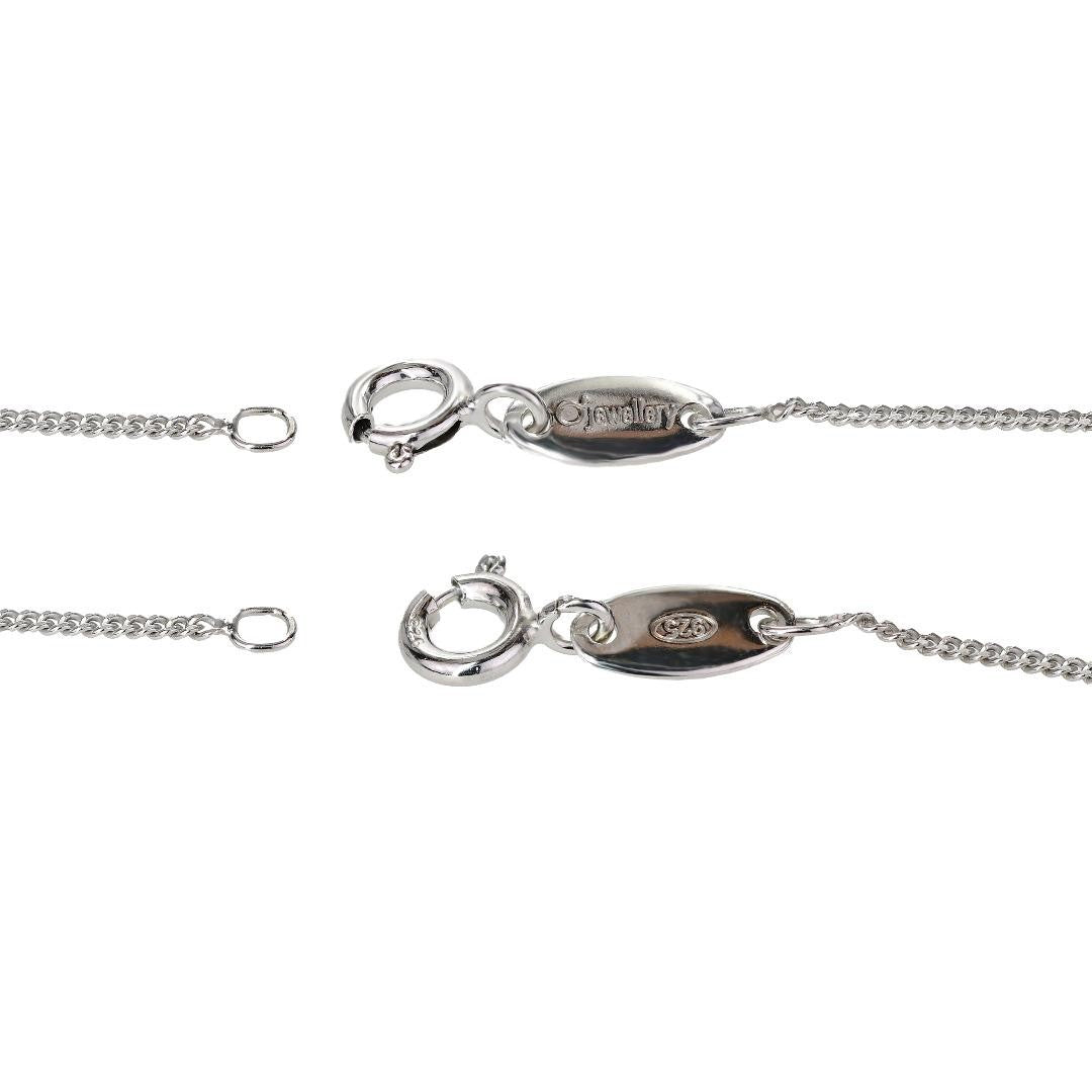 It is supplied on a 18 inch sterling silver chain. Both the pendant and chain are finished with a commercial grade rhodium plate to give a high quality shine finish.