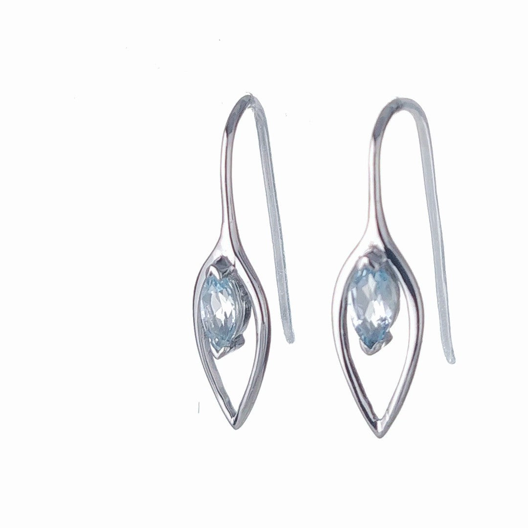 Blue Topaz Dangle Earrings 0.4ct Sterling Silver Marquise Hook Gift Box