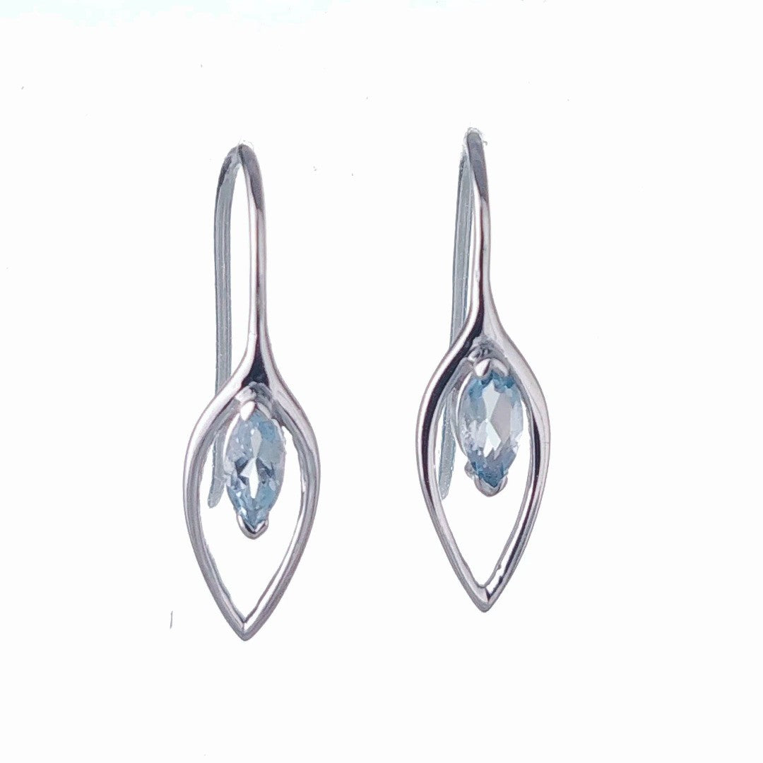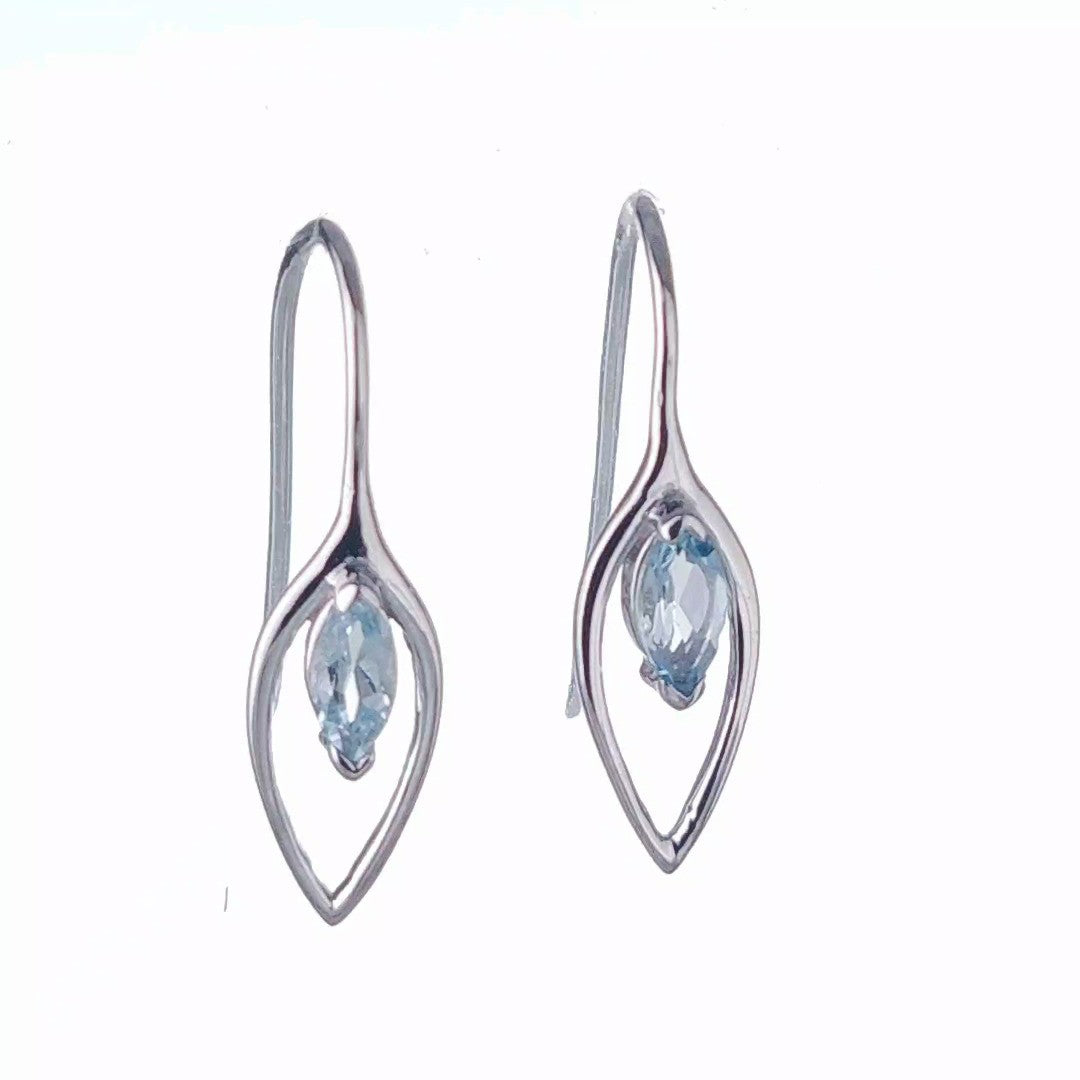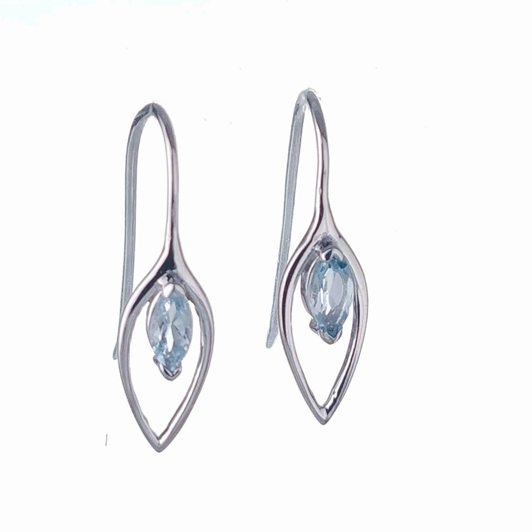 Sterling Silver blue topaz elipse design dangle Earrings set with a marquise natural African marquise blue topaz.