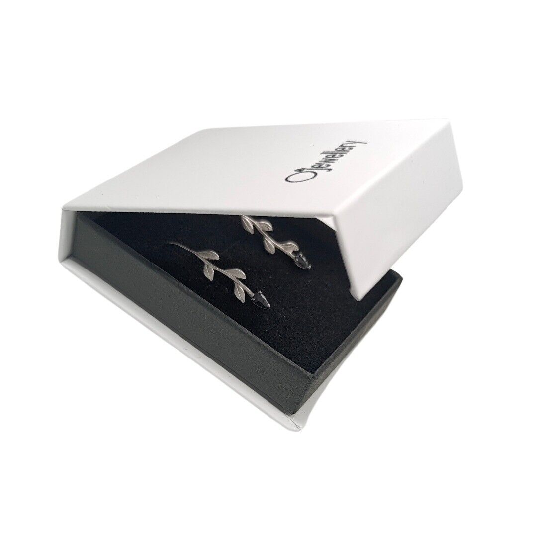 Your London Blue Topaz leaf dangle earrings arrive nestled in a beautiful Ojewellery gift box with a ribbon-handled gift bag, making them an ideal gift for a loved one or a special treat for yourself. A product information card with space for a personalized message and a jewellery cleaning cloth are also included, ensuring your earrings stay radiant.