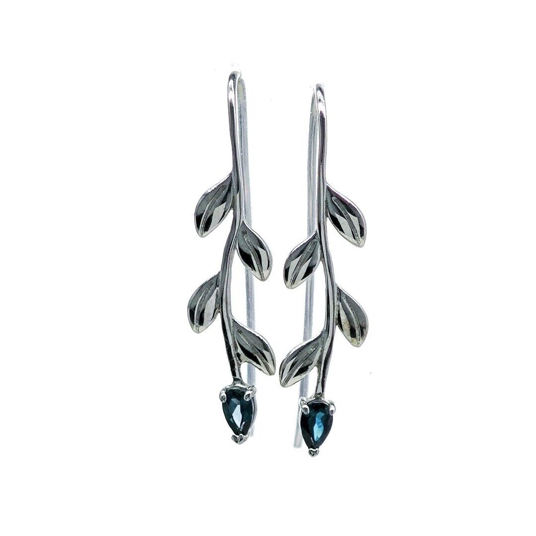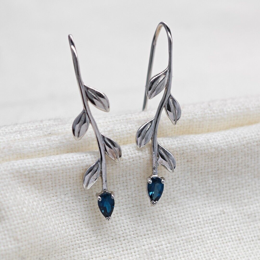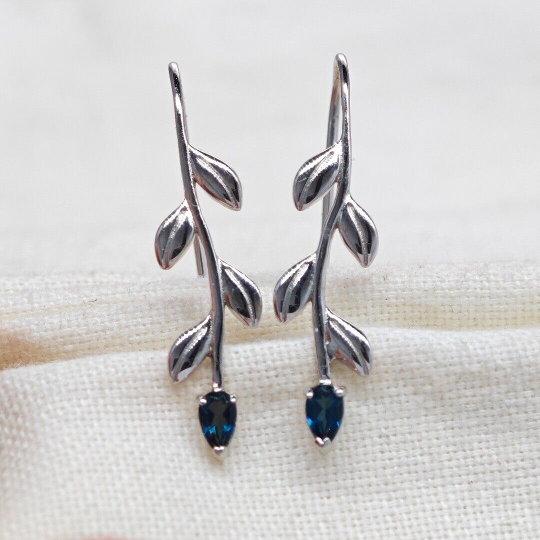 Embrace Nature's Elegance with Ojewellery's Enchanting London Blue Topaz Leaf Dangle Earrings!