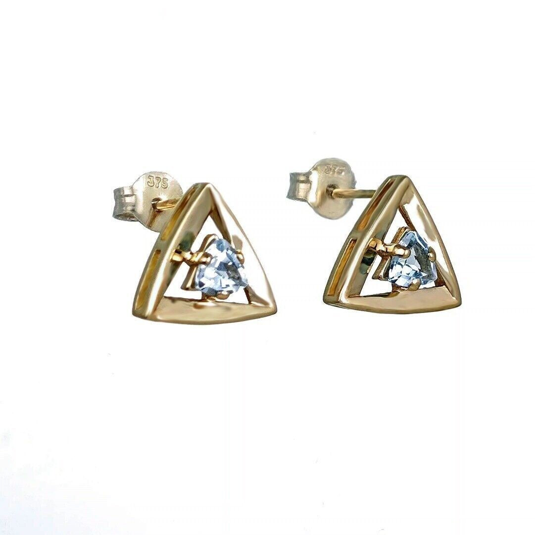 Blue Topaz Earrings 9ct Yellow Gold Studs Studs Trillion