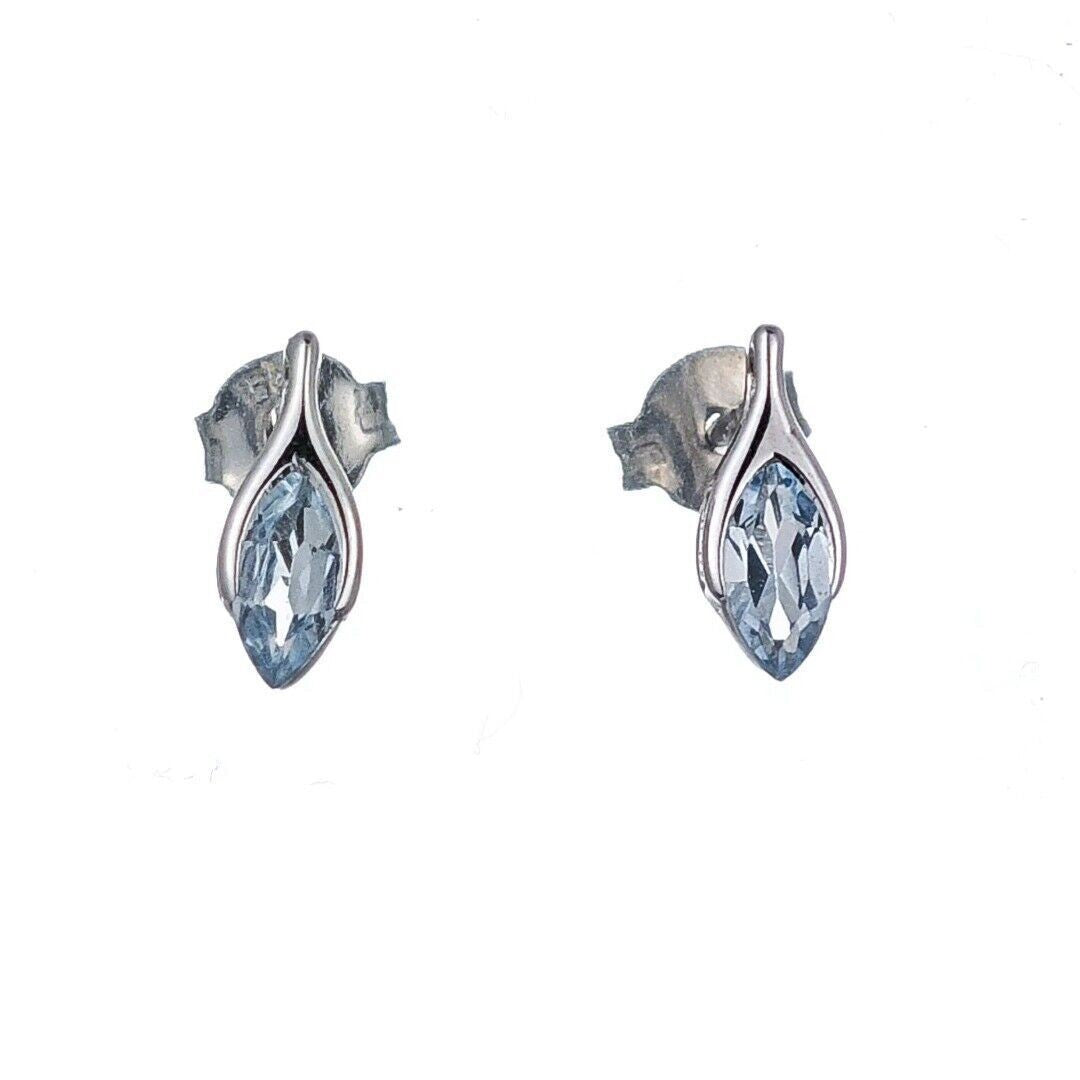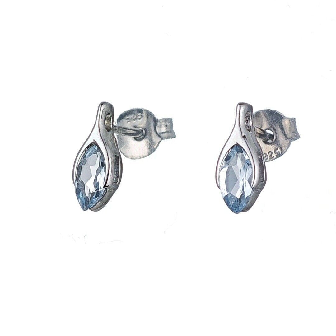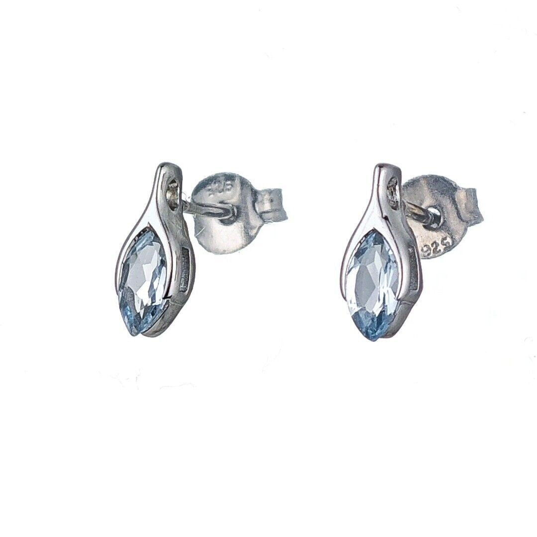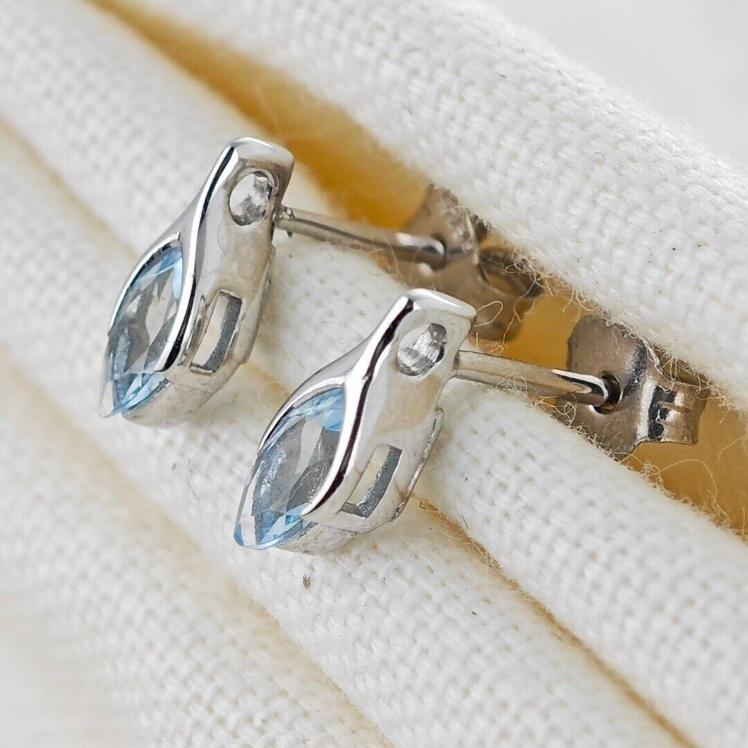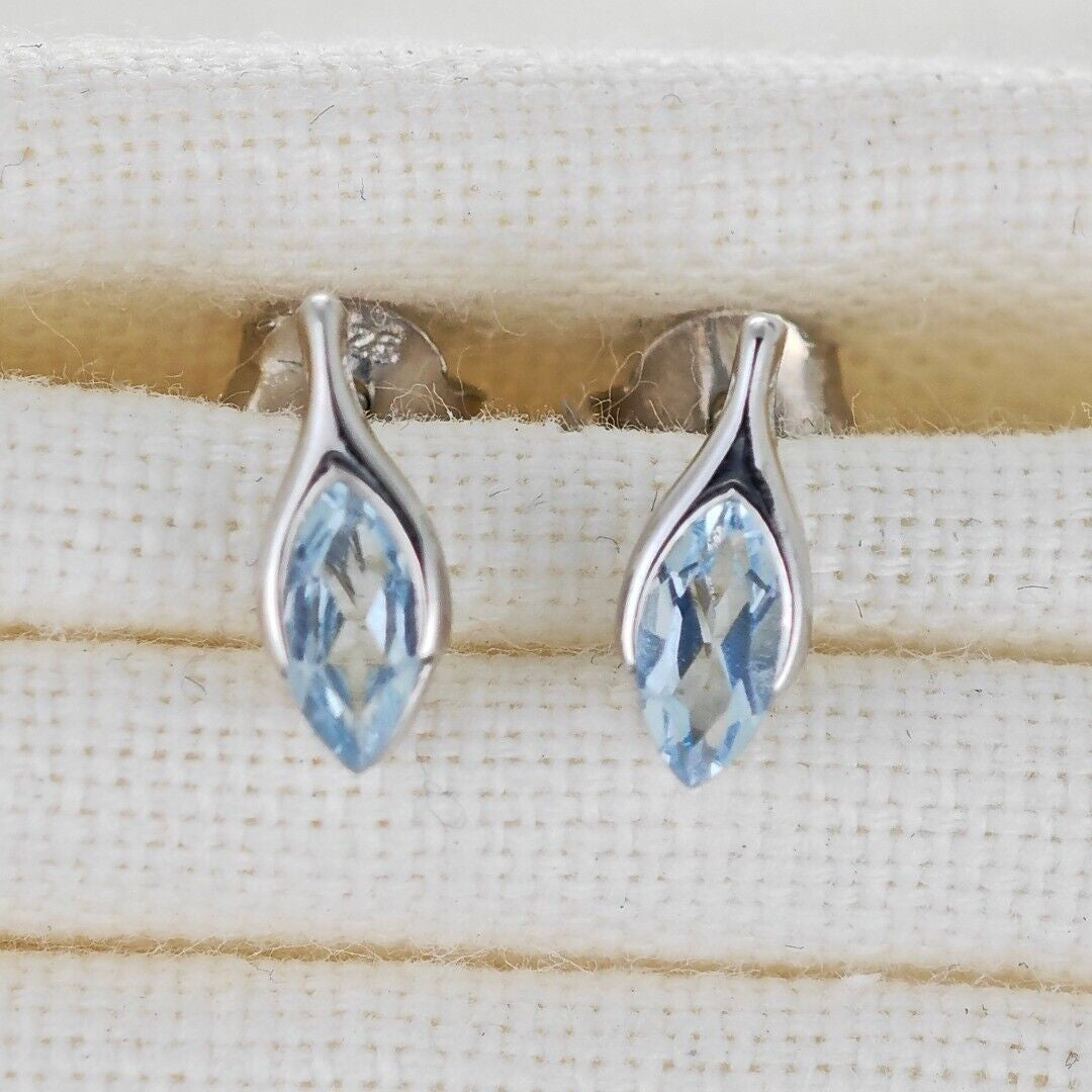 Blue Topaz Earrings Sterling Silver Studs Minimalist Marquise