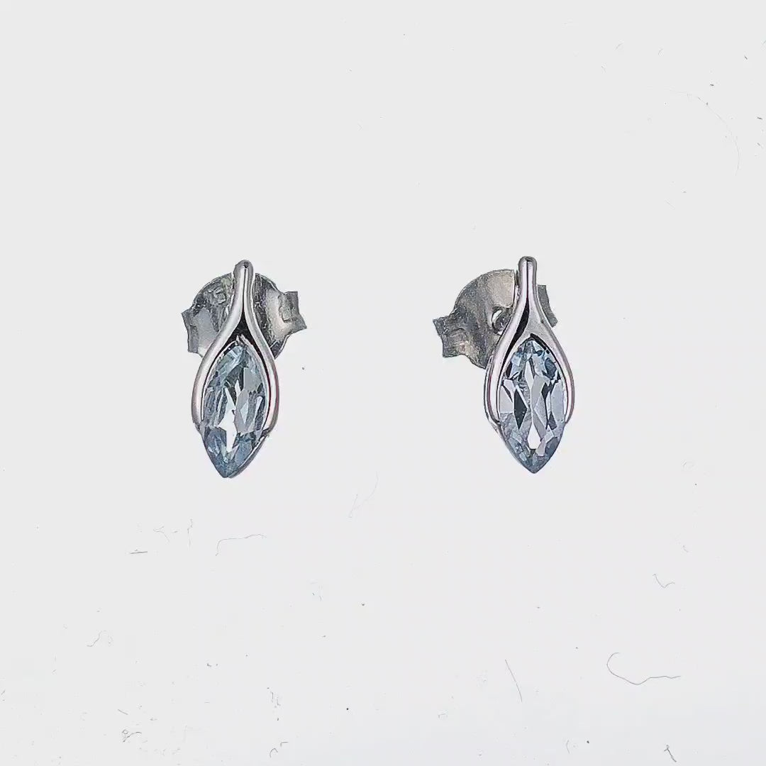 Elegant minimalist marquise cut stud earrings. Set in a raised partial rub over setting made of sterling silver to allow light to the back of the stone and show off its natural sparkle. The stones measure 6x3 mm in each stud.Topaz are associated with love self esteem and good fortune. They are the birthstone for December.This elegant set is suitable to wear for daytime or evening wear.Finished with a commercial grade rhodium plate to give a high quality shine finish.Supplied in an Ojewellery presentation box, within a ribbon handled gift bag, complete with product information authenticity card with space for a gift message and a jewellery cleaning cloth to keep your jewellery in ready to wear condition.Our jewellery packaging is from an FSC chain of custody audited supplier and our very short supply chains mean we are able to trace our natural gemstones back to country of origin.Specification:Fastening: ButterflyEarring Drop: 9.8mmEarring Width: 4mmWeight of pair:1.1gStones Natural African Pale Blue Topaz Marquise cut 2qty 6 x 3 mm