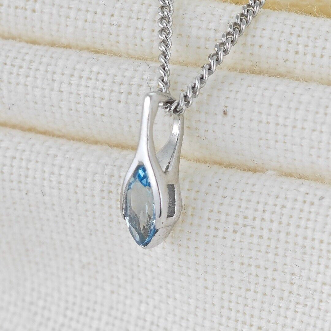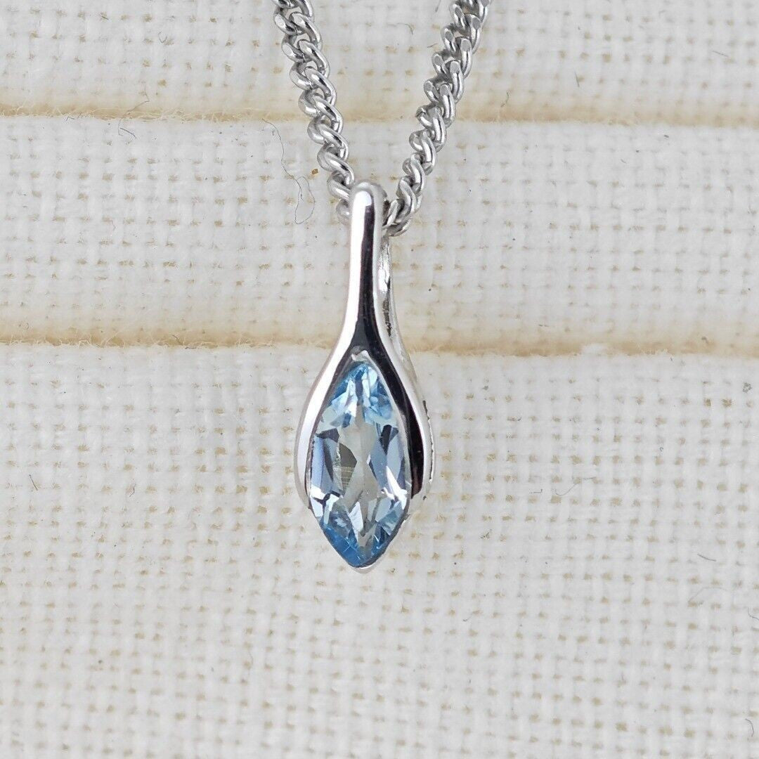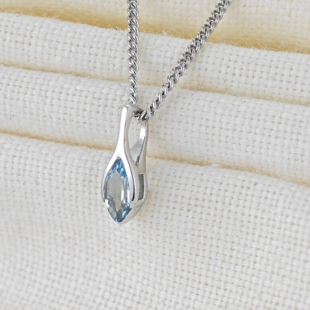 Blue Topaz Pendant Sterling Silver Minimalist Marquise