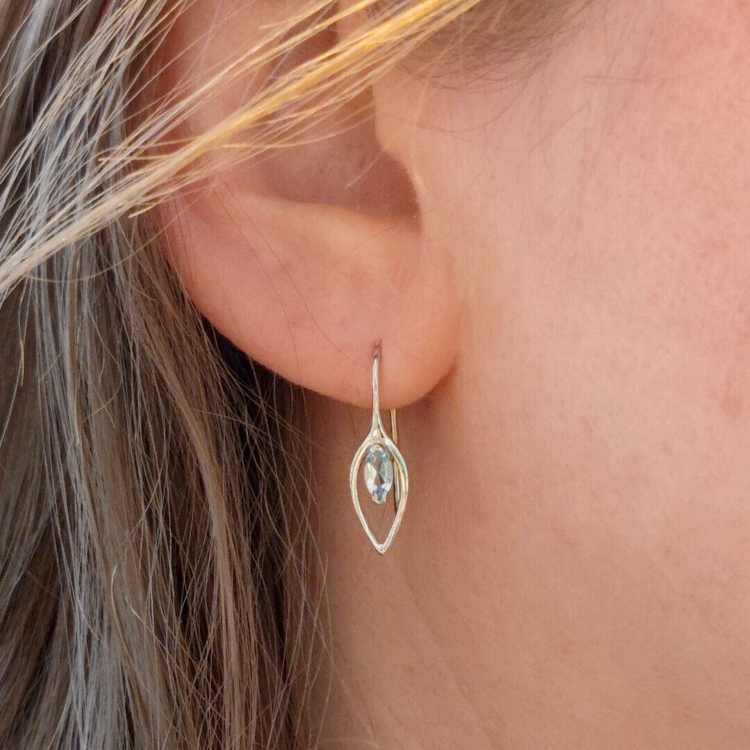 Stone: Natural pale Blue Topaz, marquise cut 6x3mm
