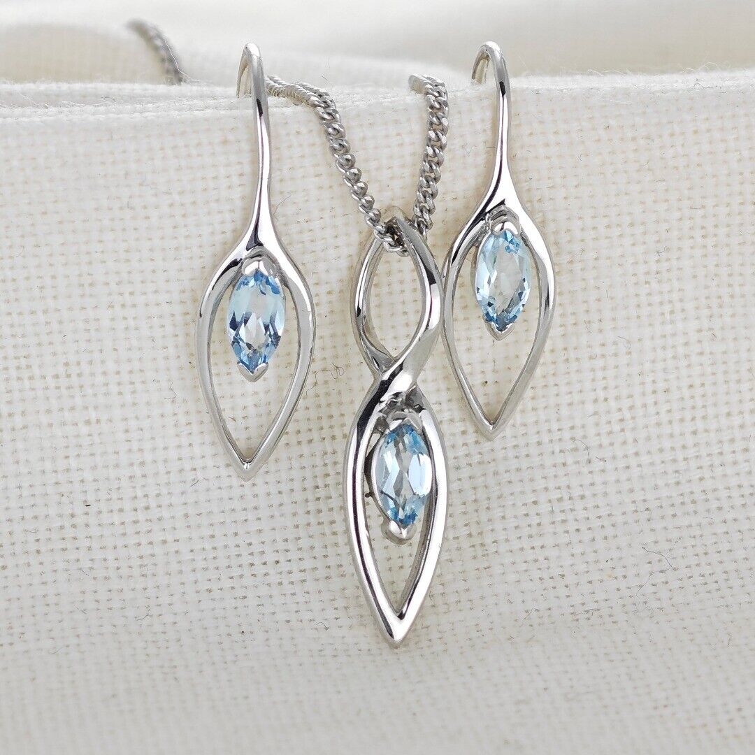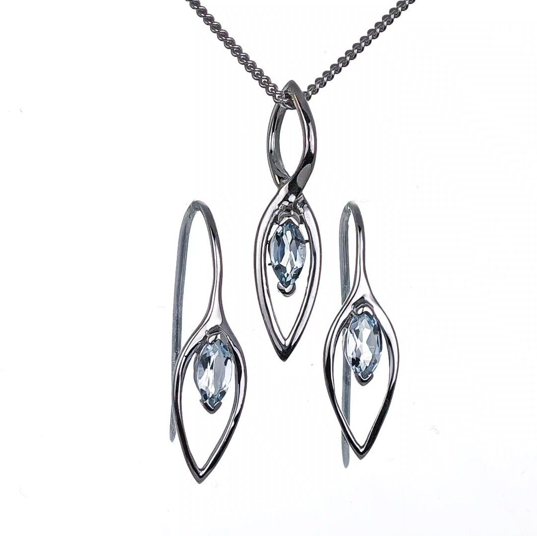 Blue Topaz Set Earrings Pendant Sterling Silver Marquise Dangle