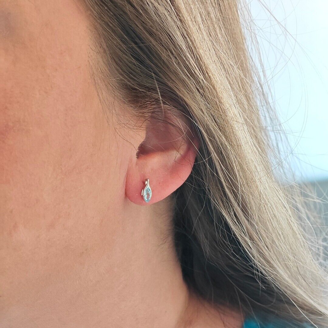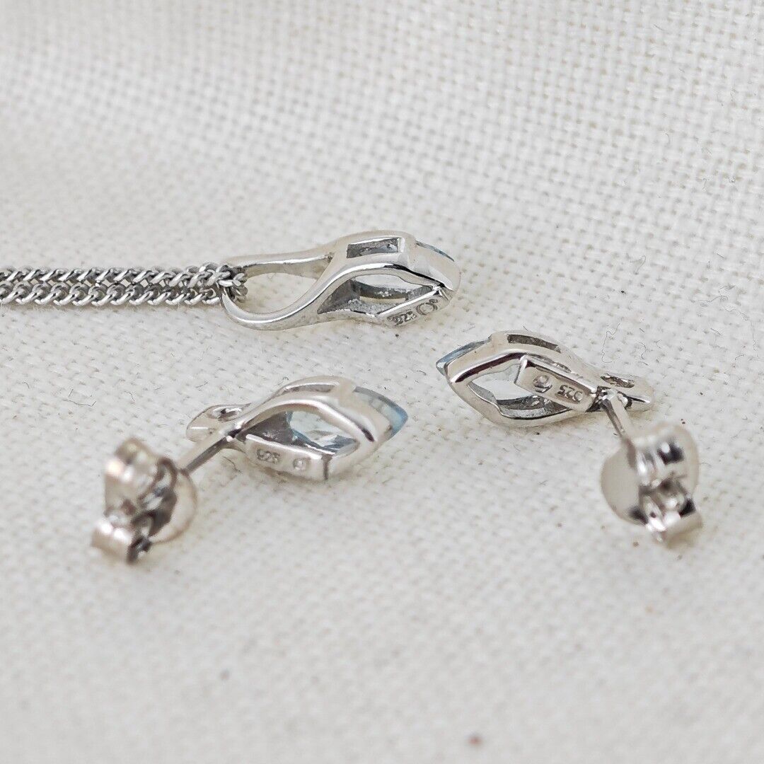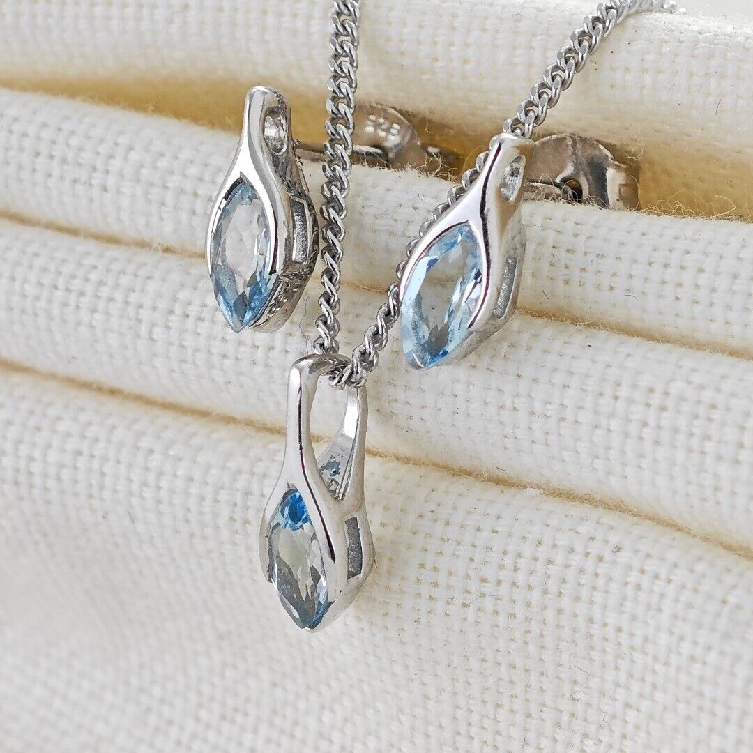 Blue Topaz Set Necklace Earrings Sterling Silver Studs Minimalist Marquise