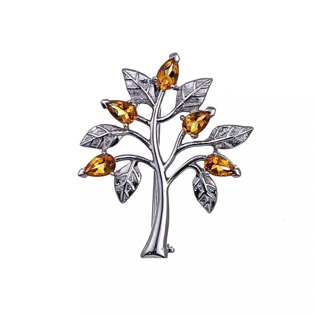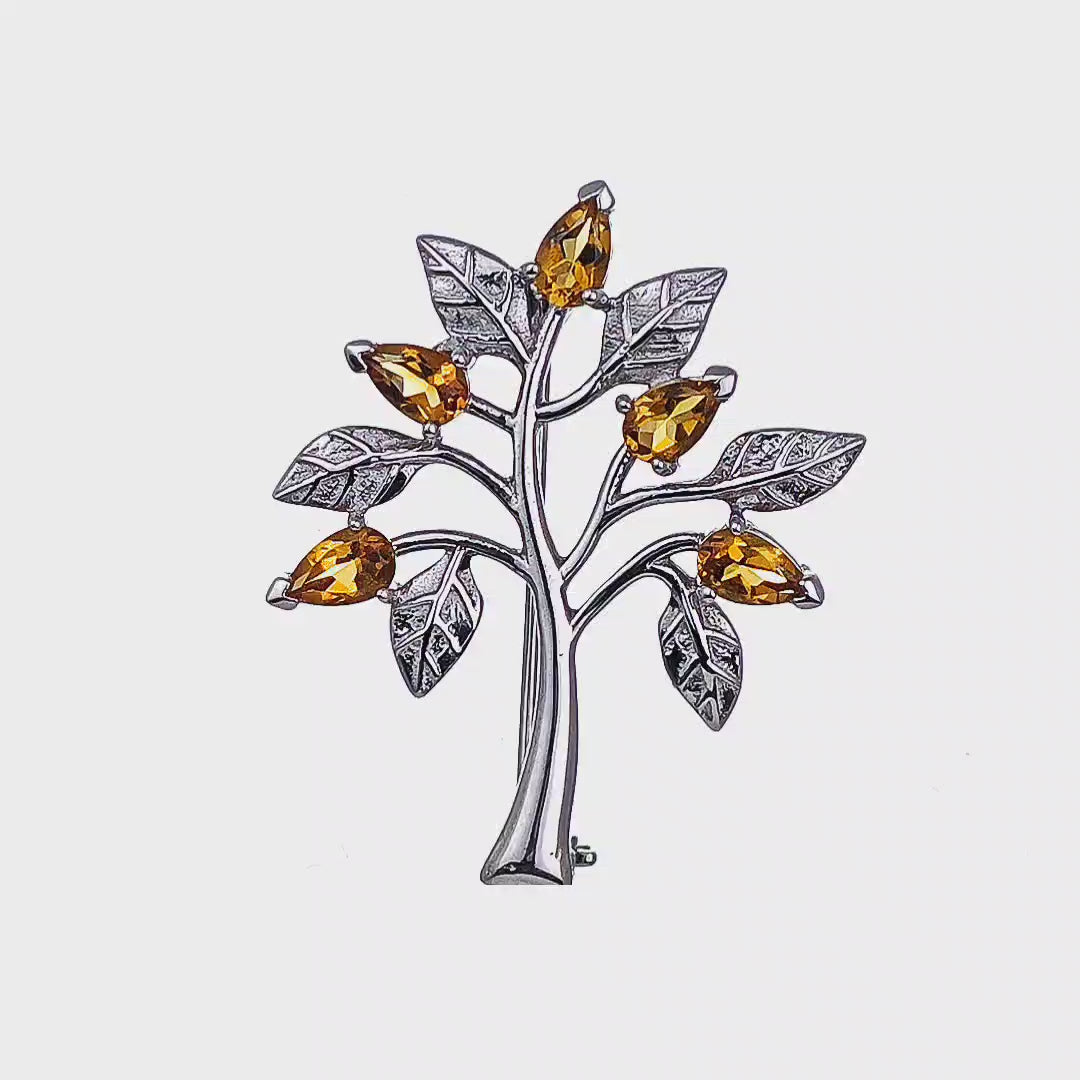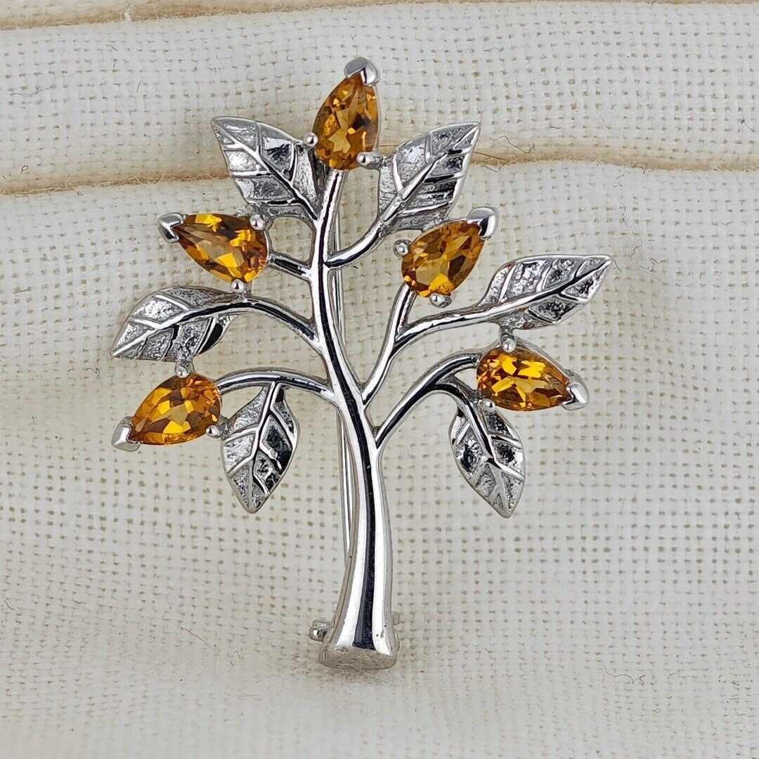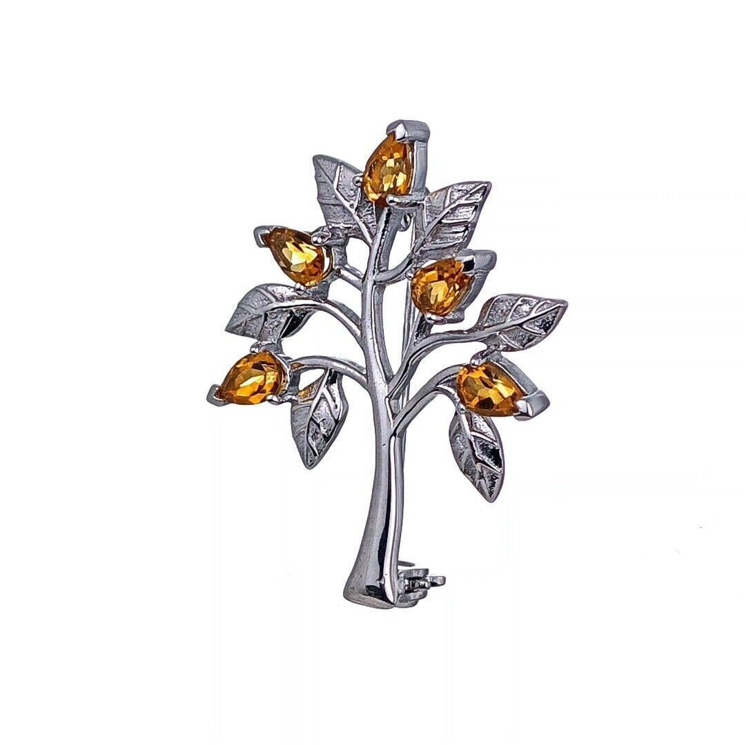 Citrine Brooch Tree of Life Sterling Silver Yellow Boxed Gift