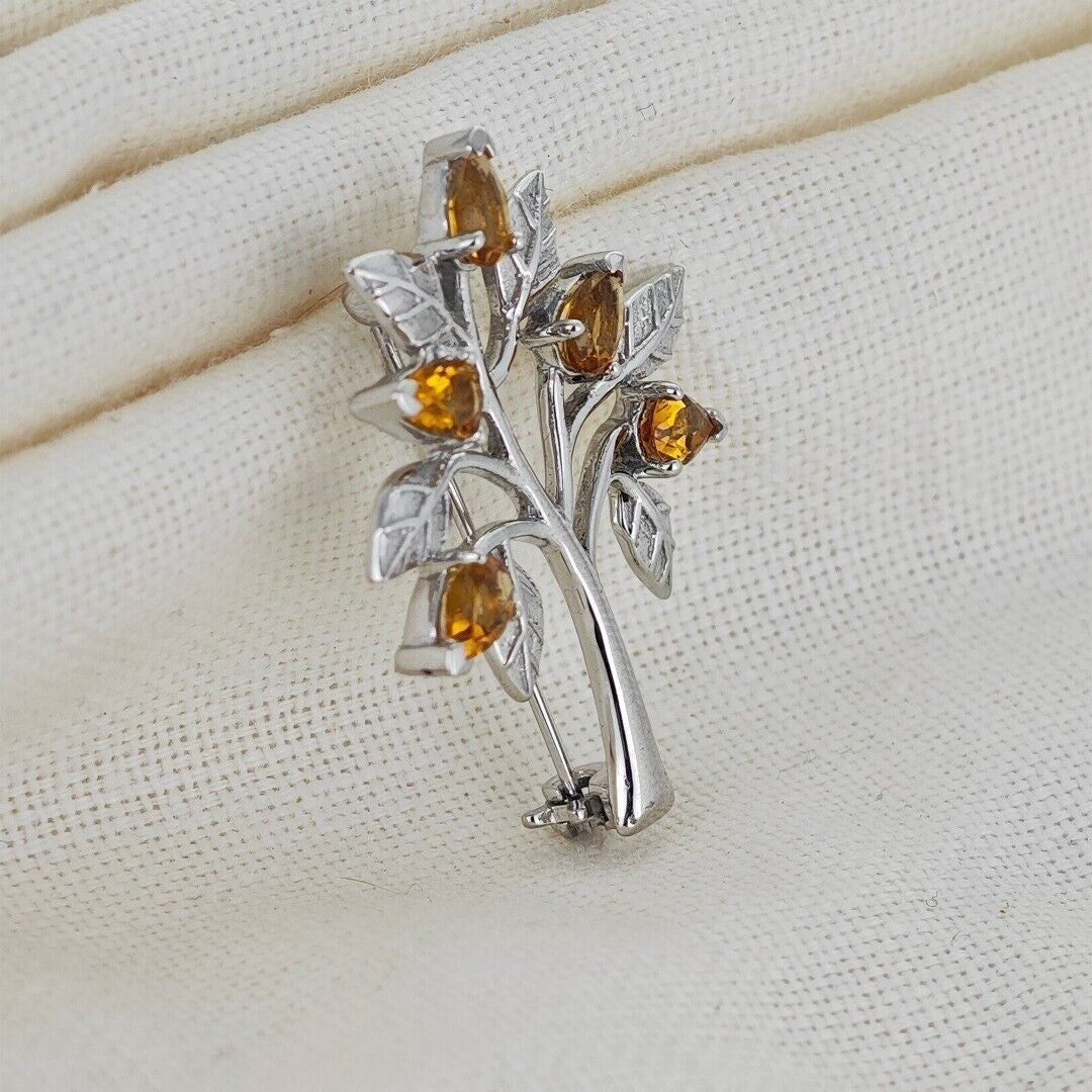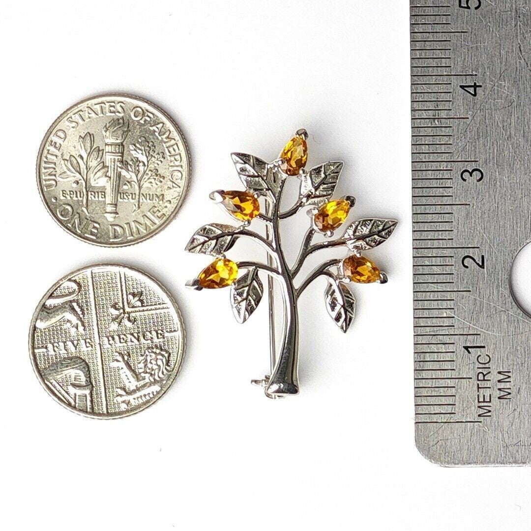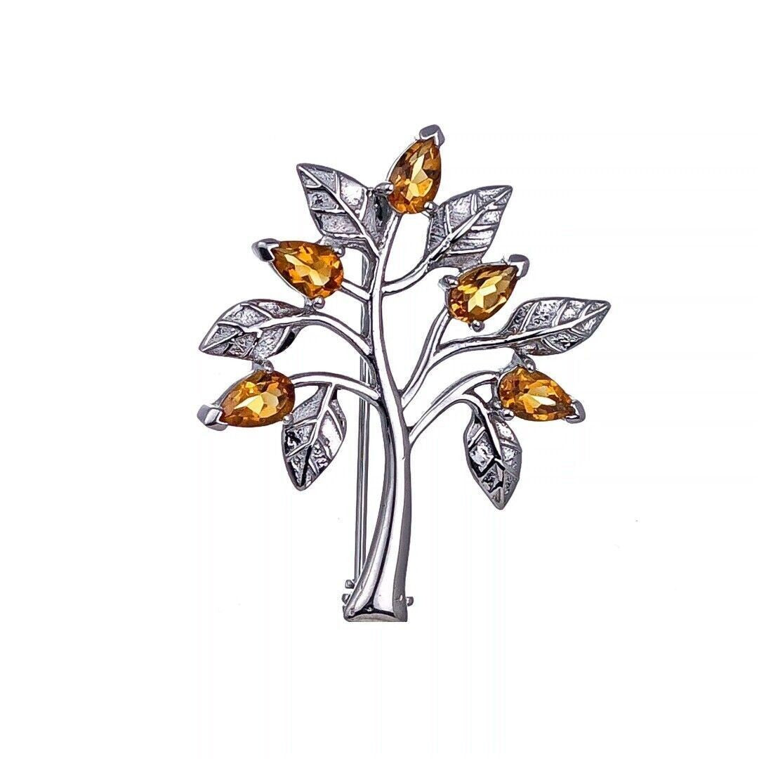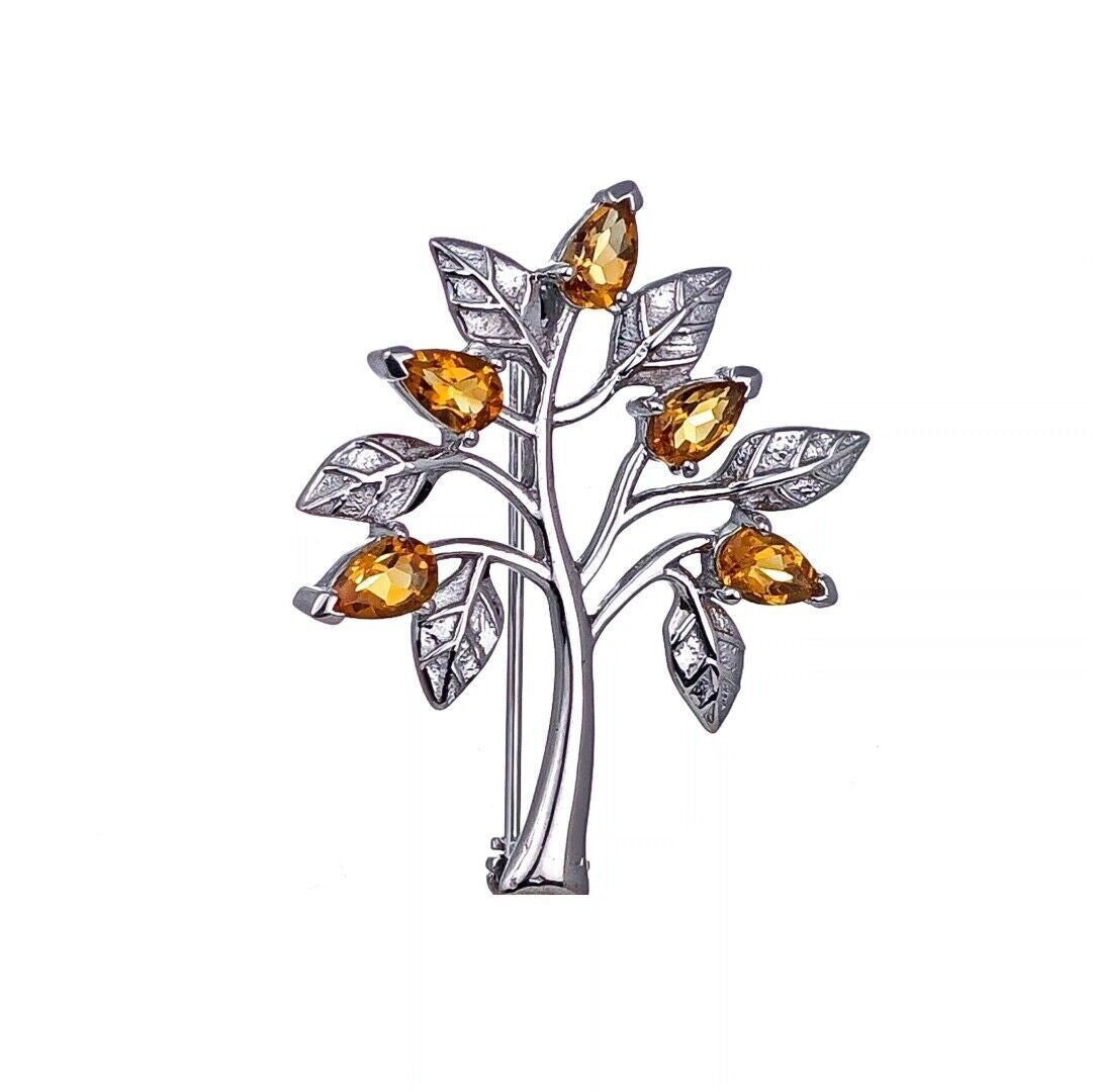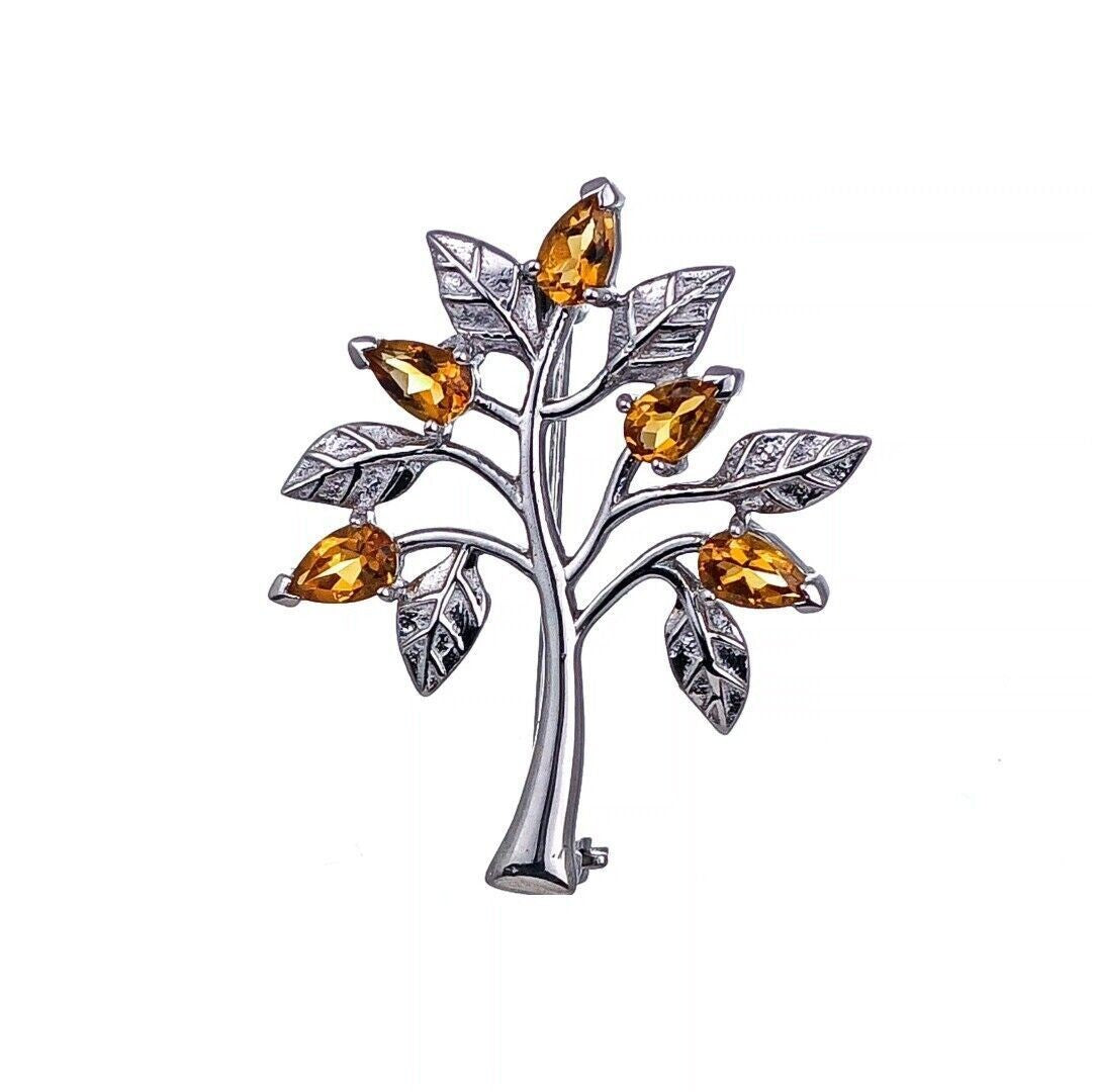 Citrine Brooch Tree of Life Sterling Silver Yellow Boxed Gift