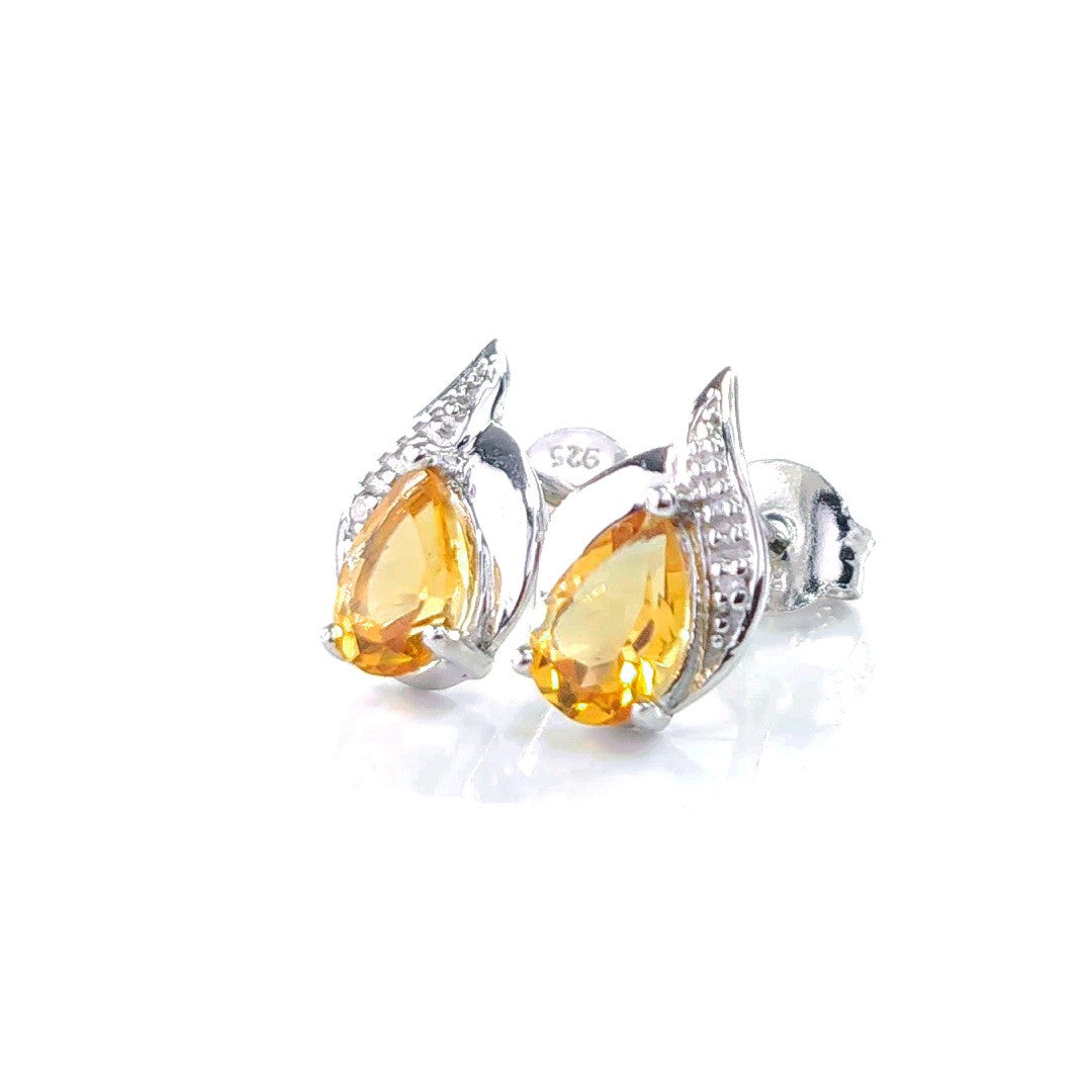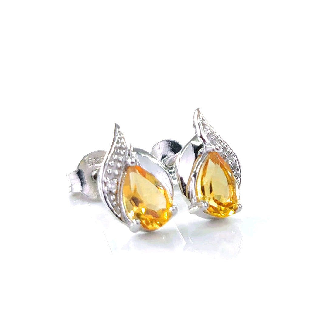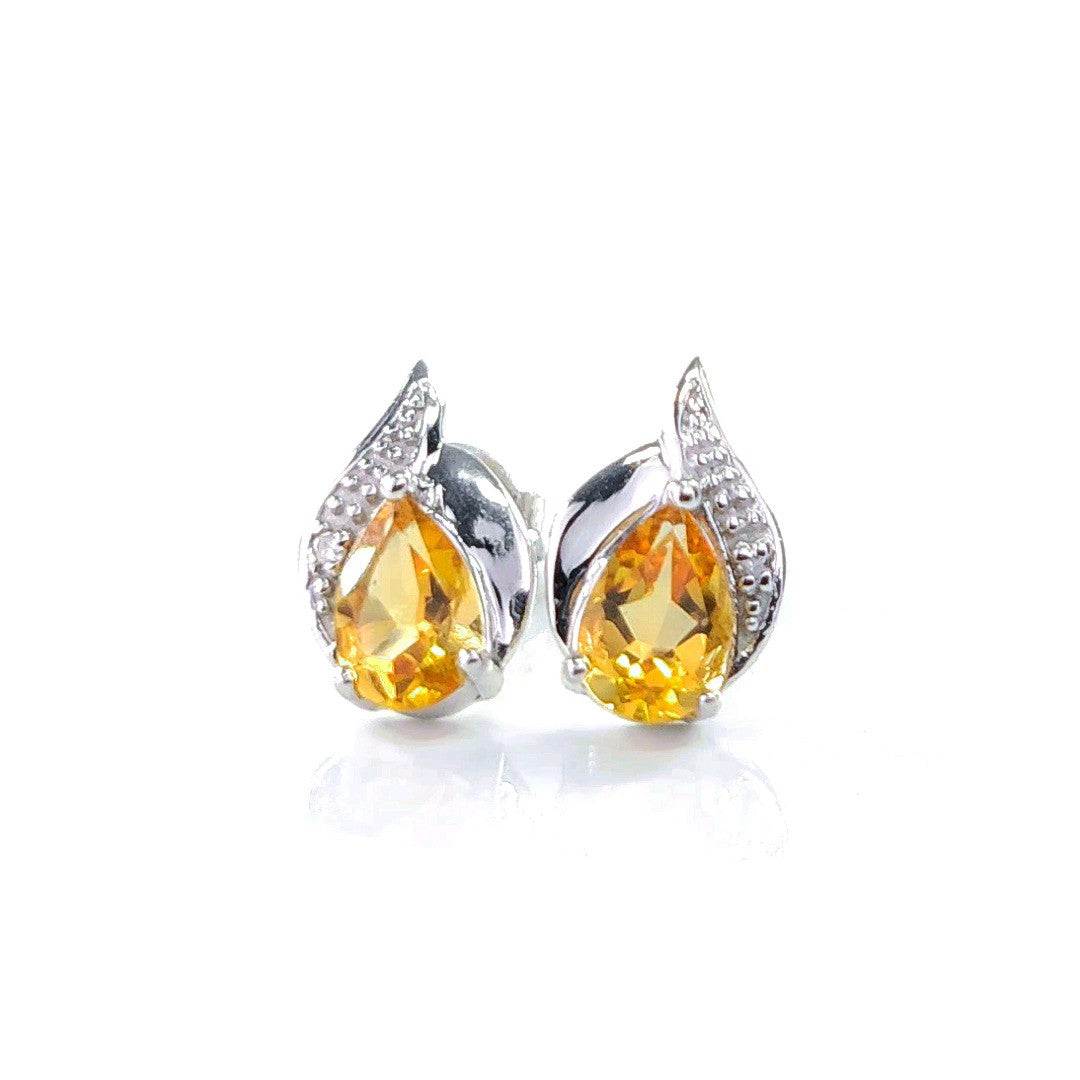 Citrine Earrings Diamond 0.7ct Pear Studs Sterling Silver November Birthstone