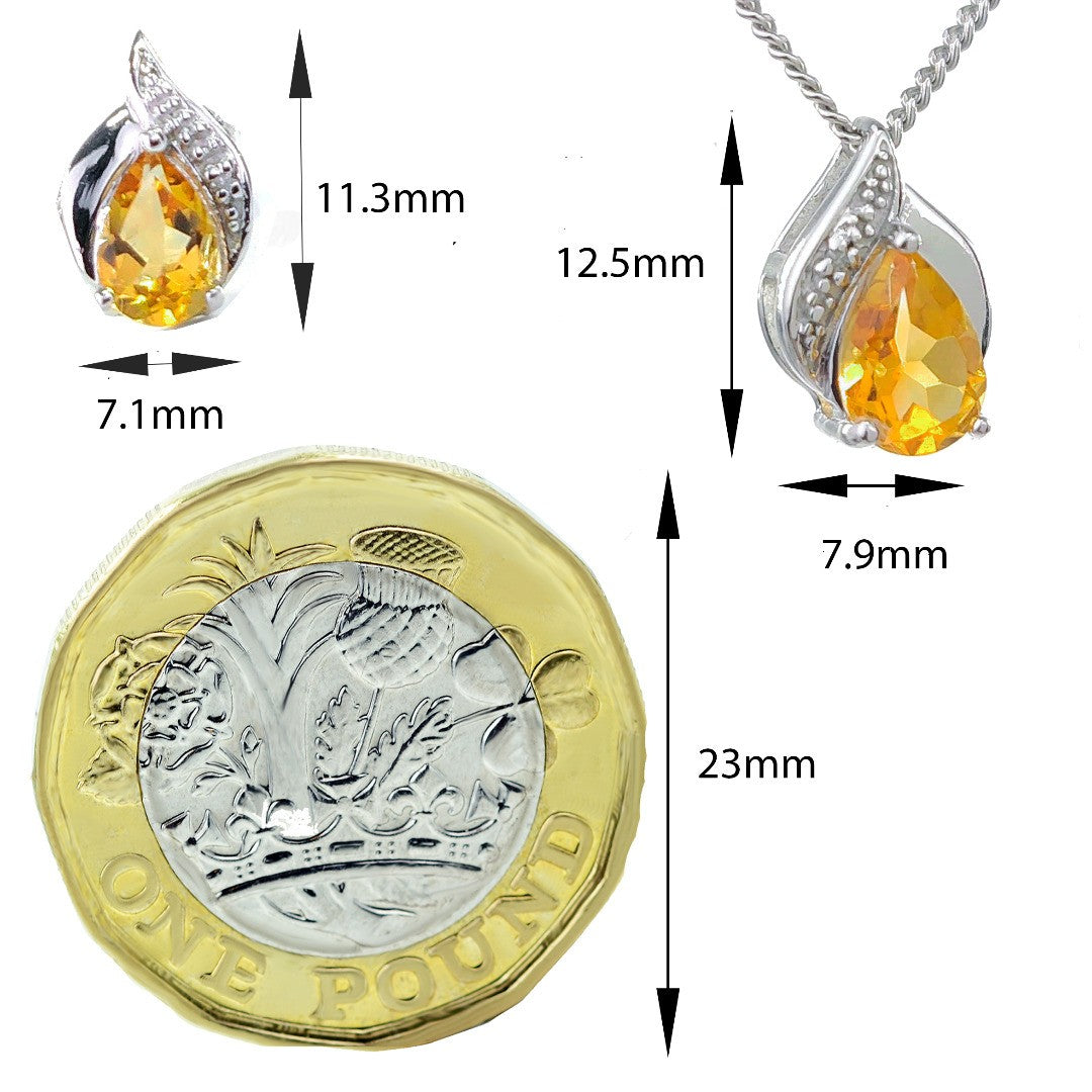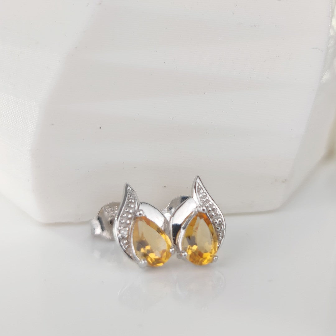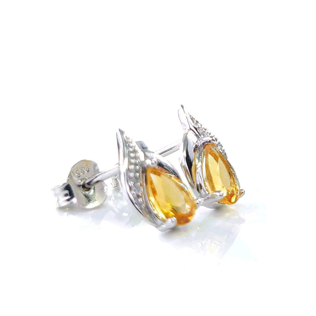 Citrine Earrings Diamond 0.7ct Pear Studs Sterling Silver November Birthstone