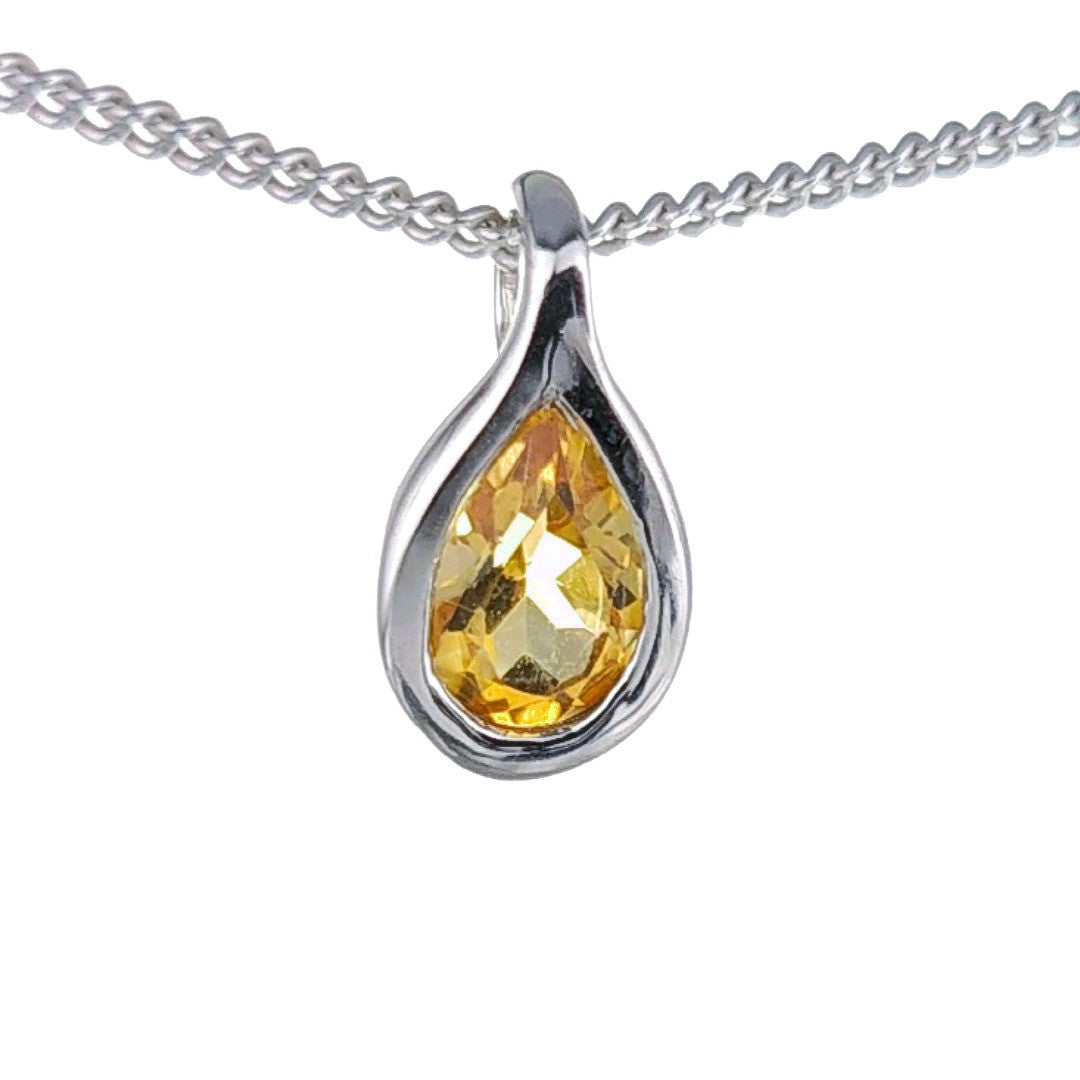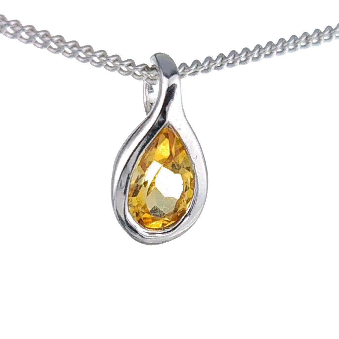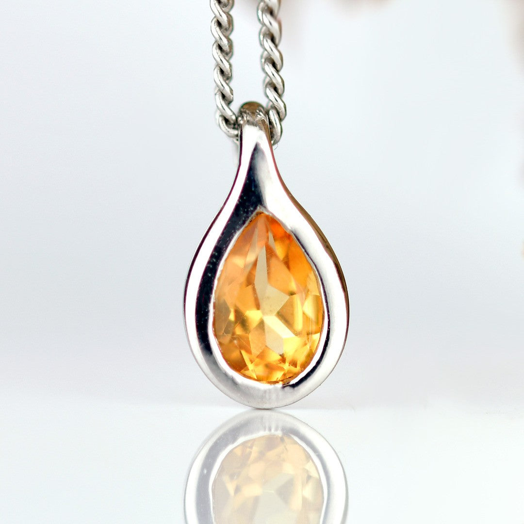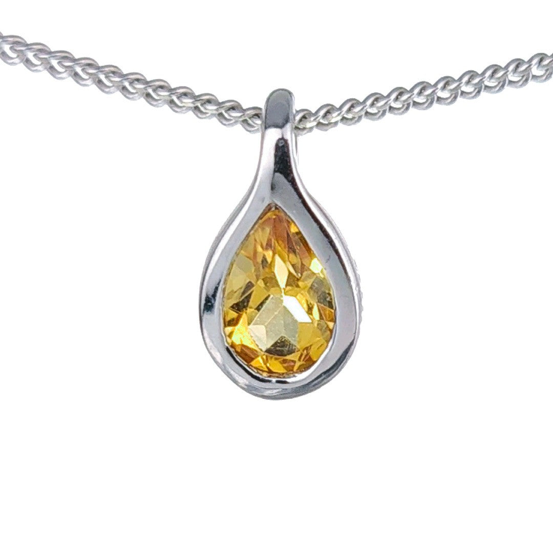 Citrine Necklace 0.35ct Pear Yellow Pendant Silver November Birthstone