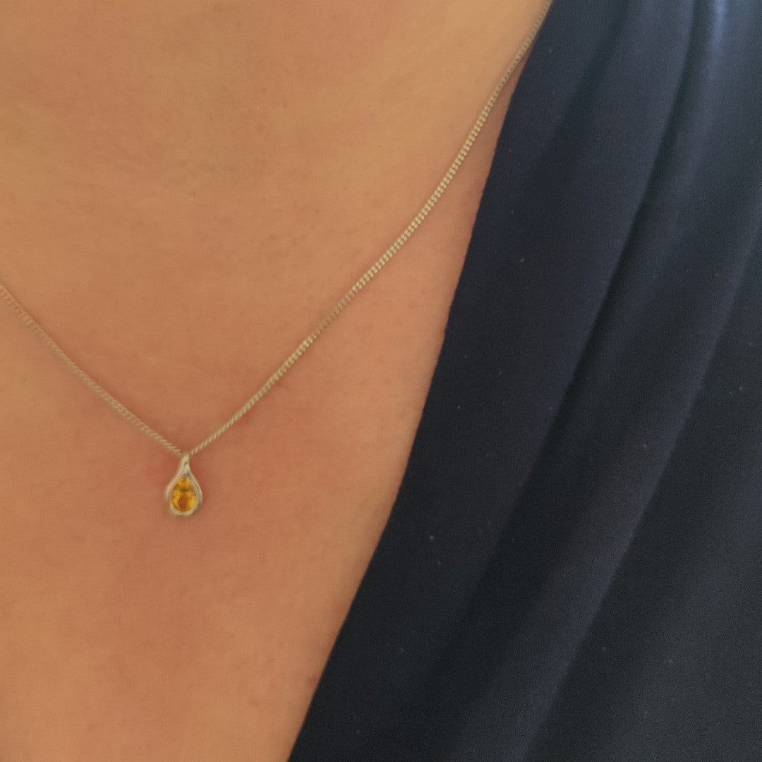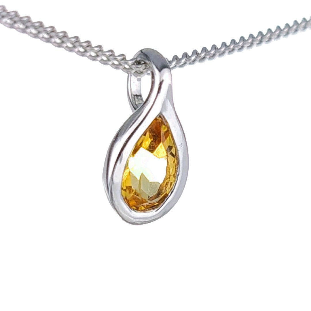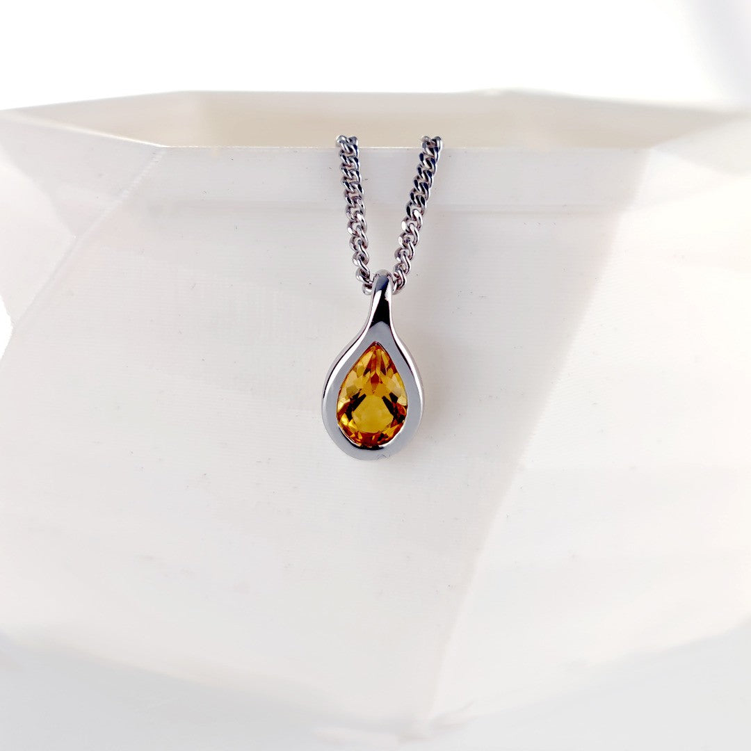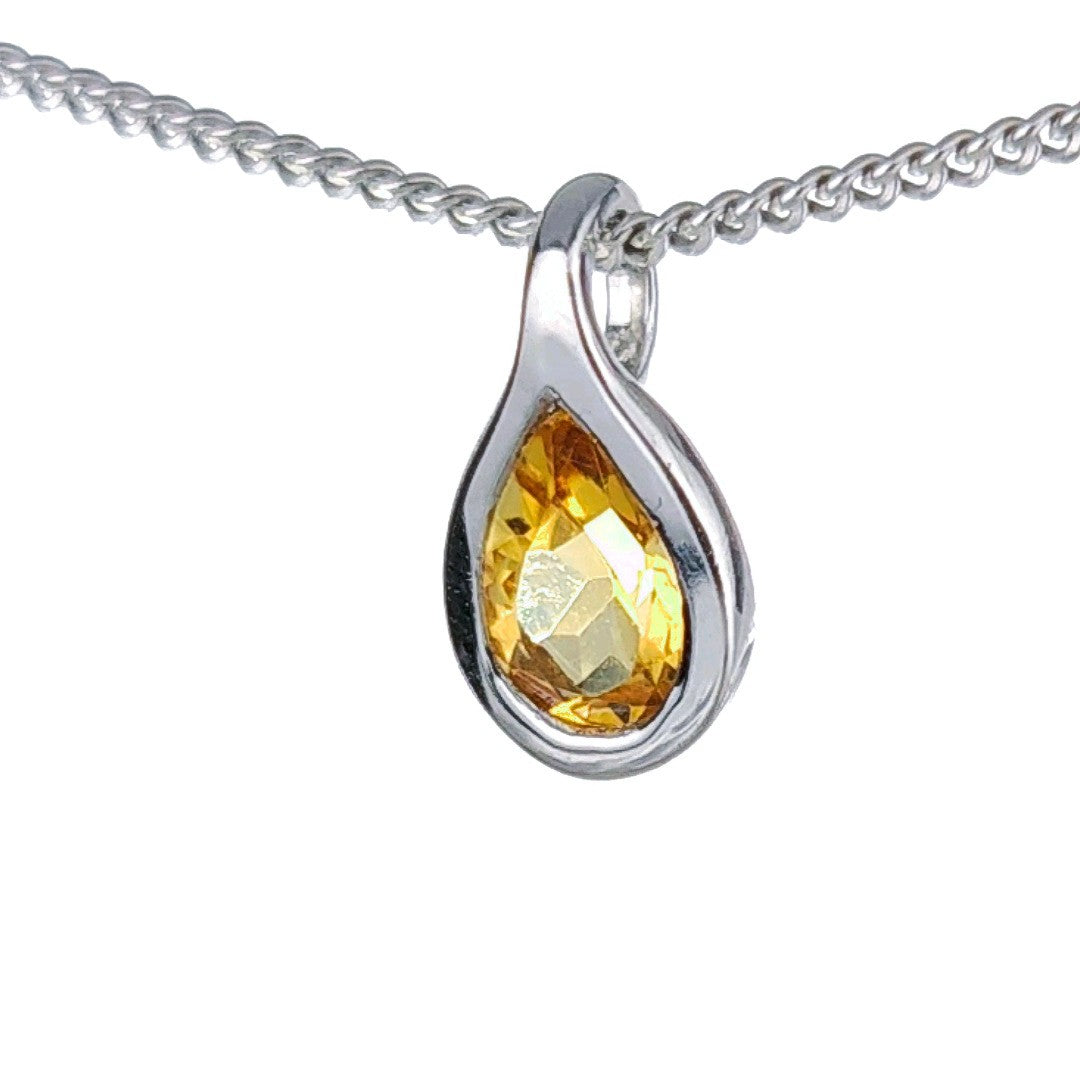 Citrine Necklace 0.35ct Pear Yellow Pendant Silver November Birthstone