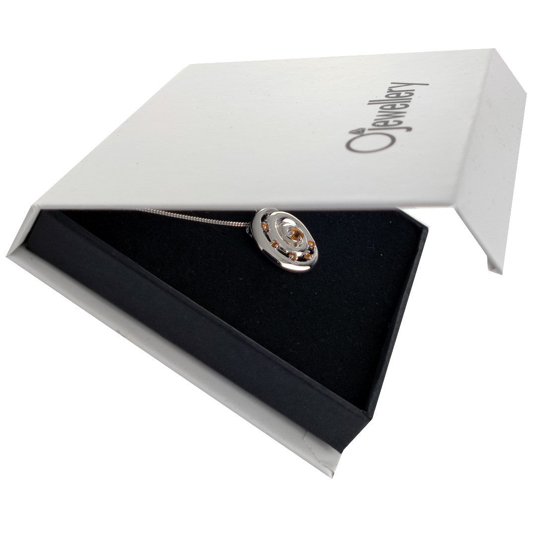 Supplied in an Ojewellery presentation box, within a ribbon handled gift bag, complete with product information authenticity card with space for a gift message and a jewellery cleaning cloth to keep your jewellery in ready to wear condition.