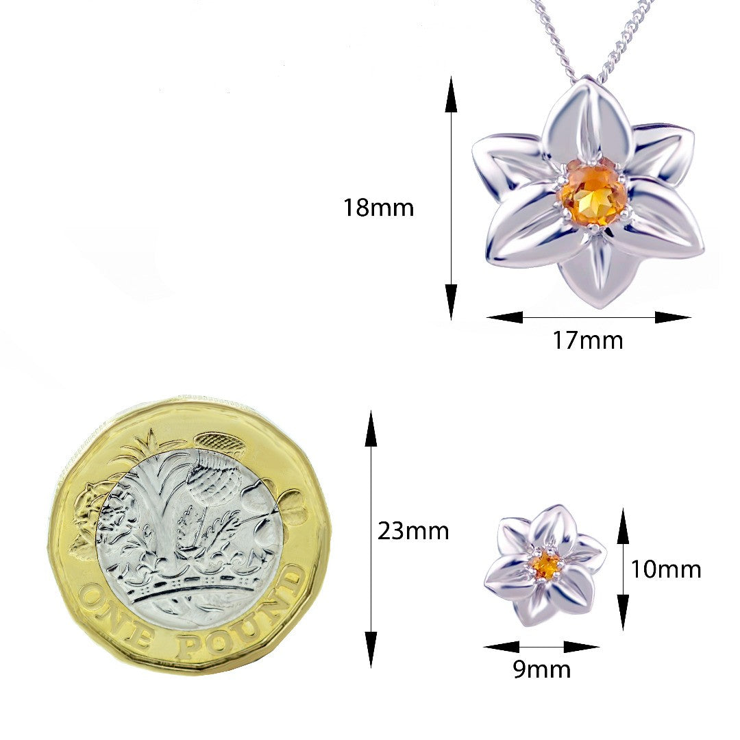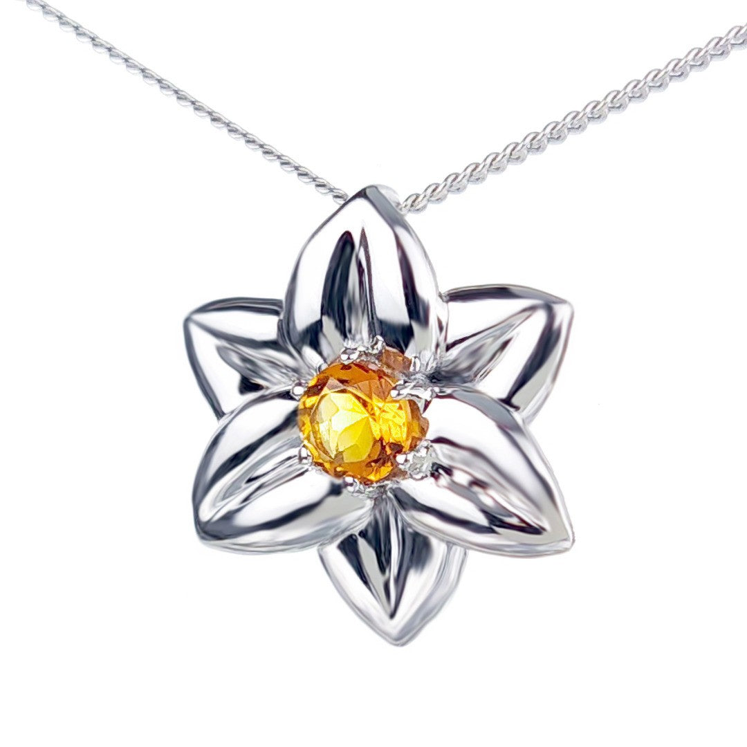 Citrine Necklace 0.4ct Yellow Daffodil Pendant Silver November Birthstone