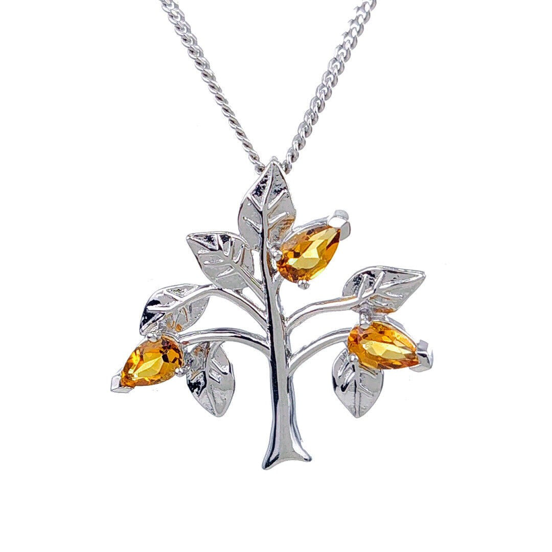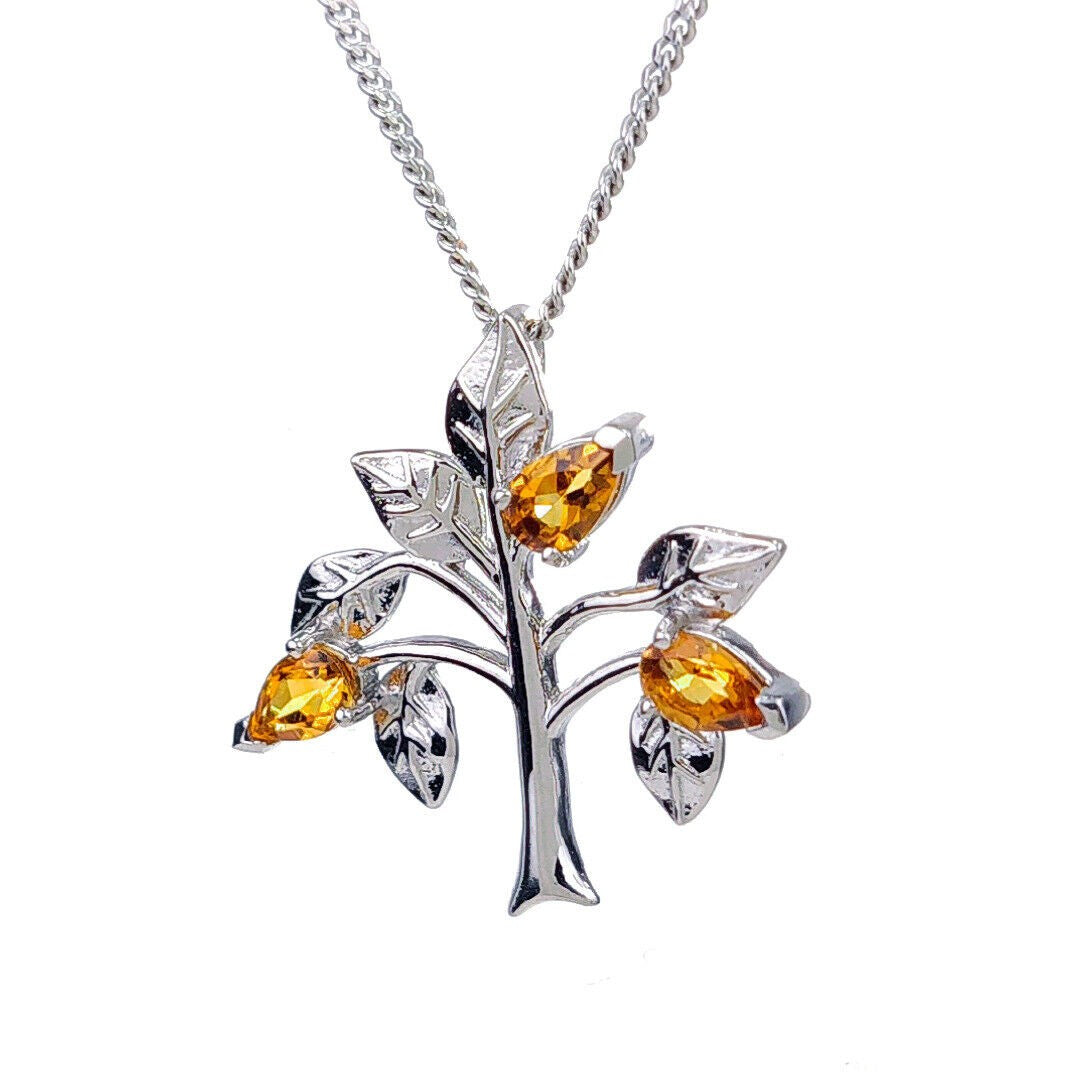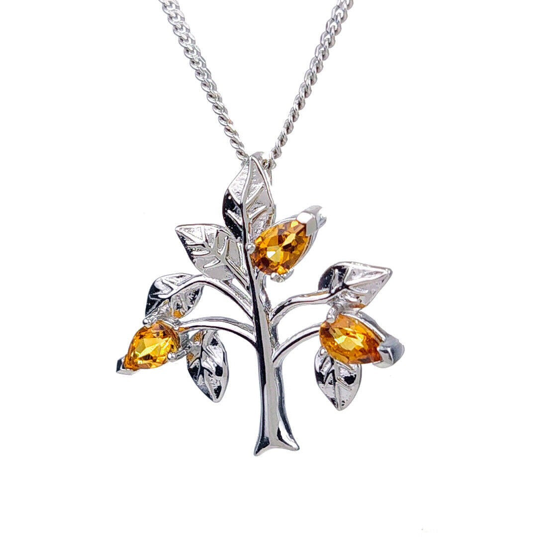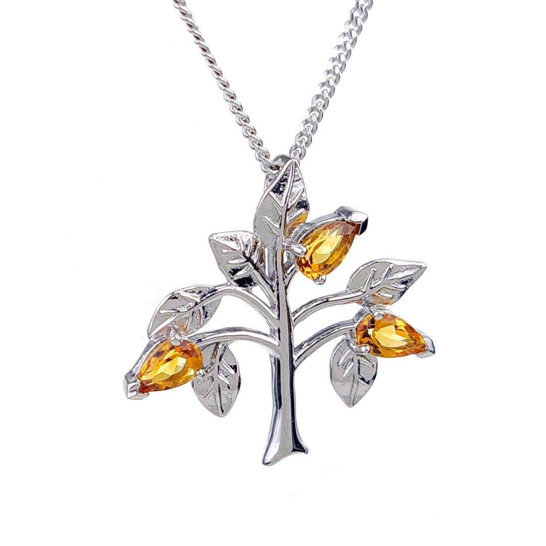 Citrine Necklace 0.6ct Yellow Tree of Life Pendant Silver November Birthstone