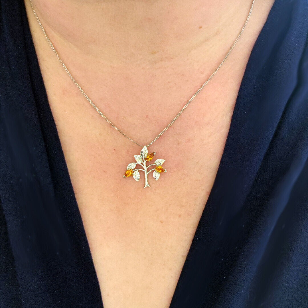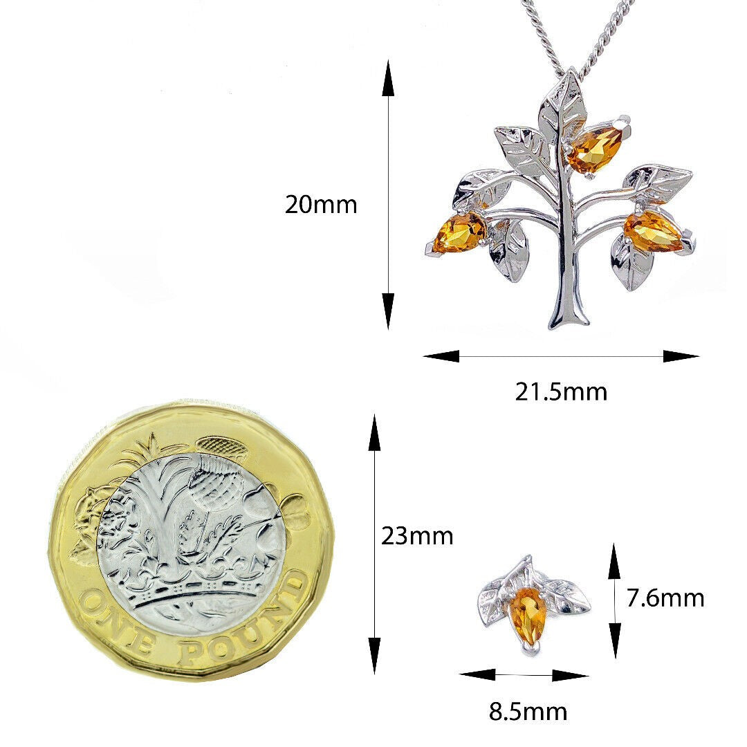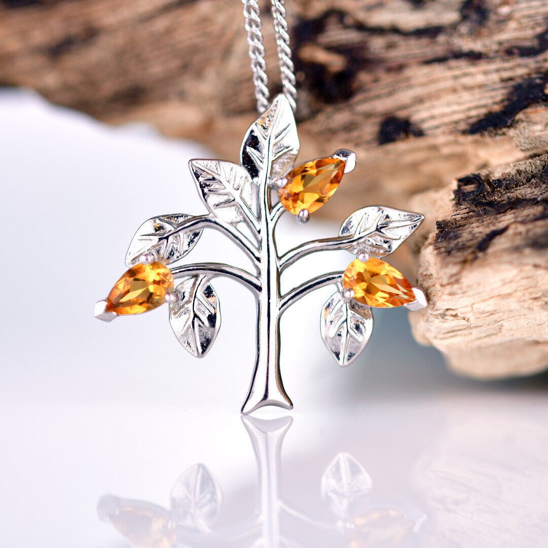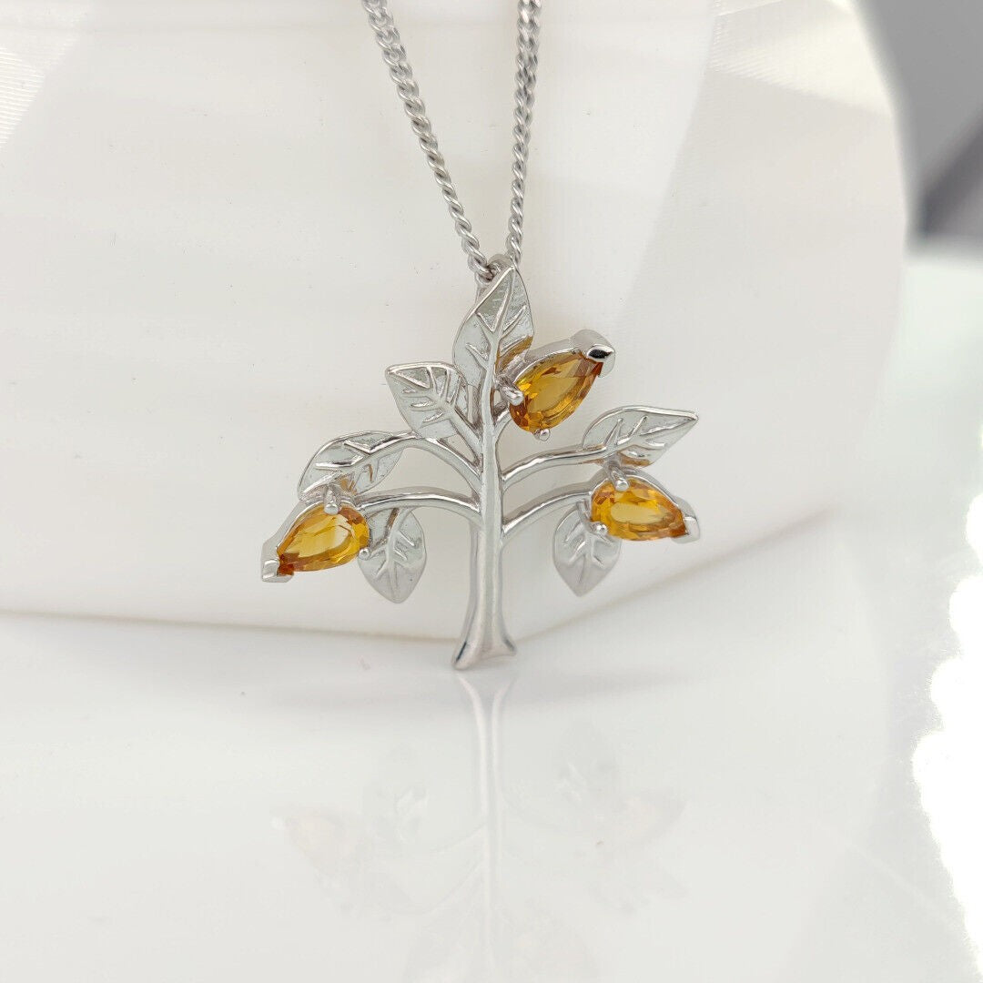 Citrine Necklace 0.6ct Yellow Tree of Life Pendant Silver November Birthstone
