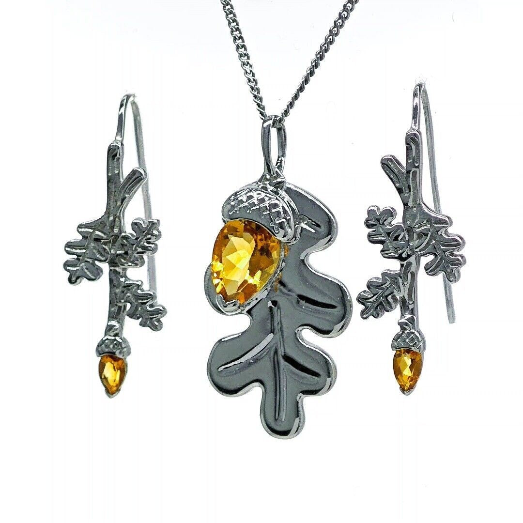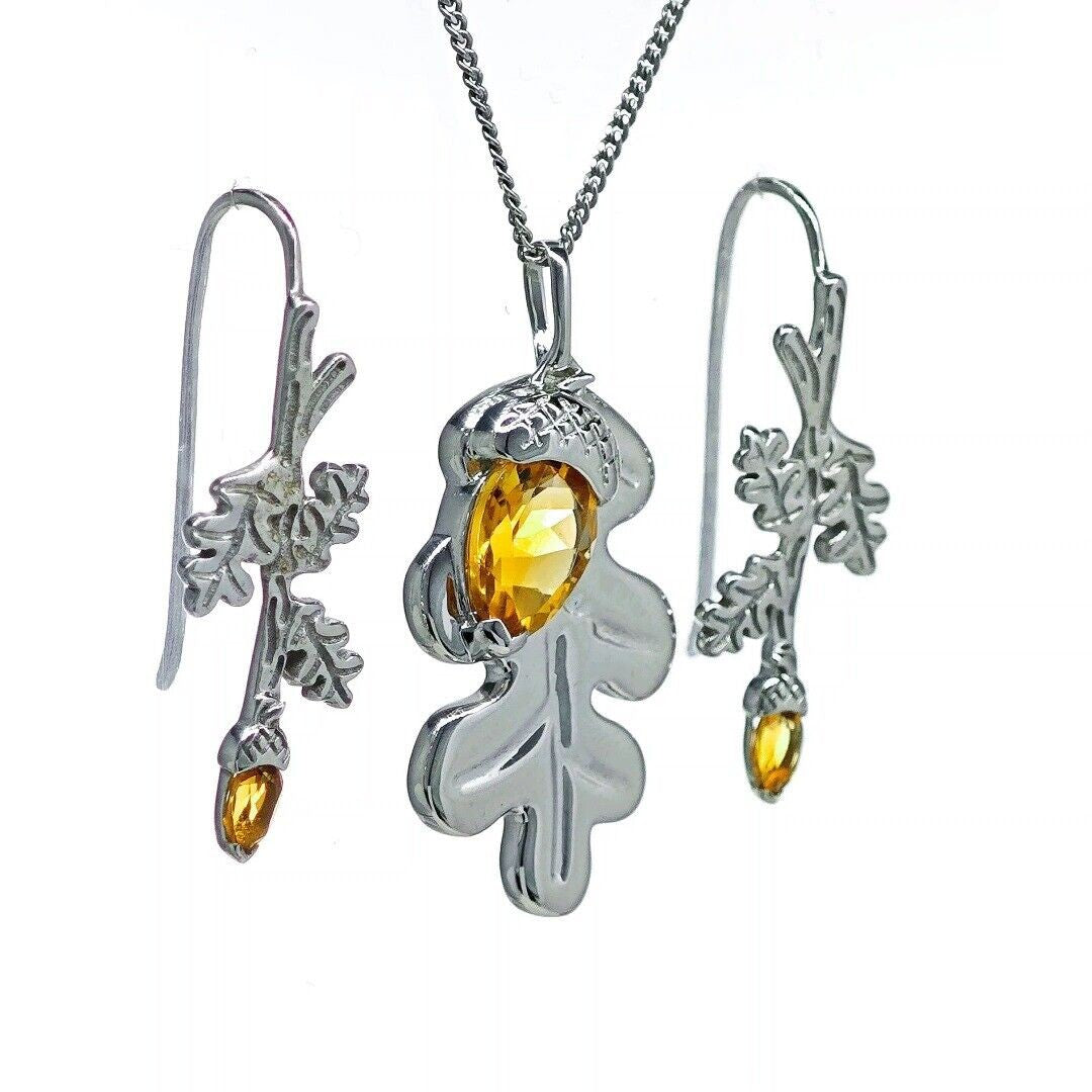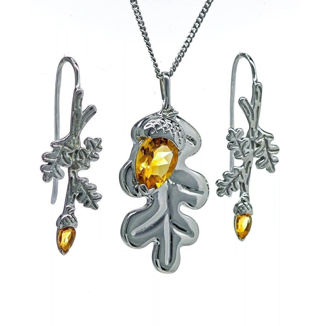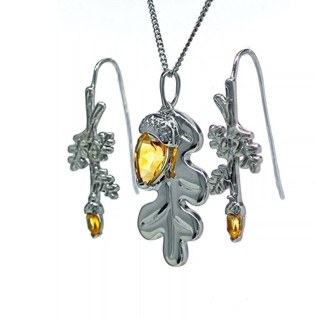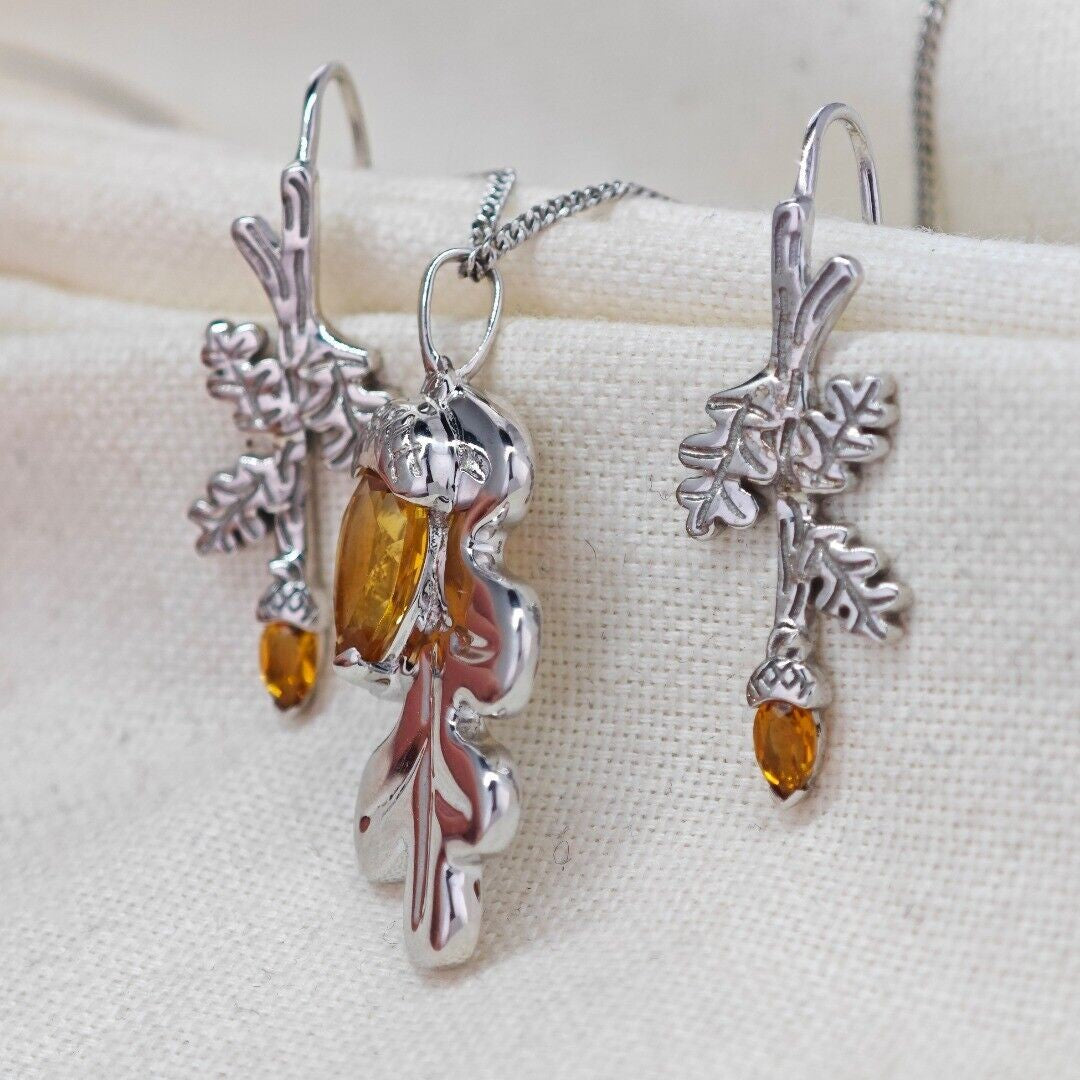Embrace nature's strength and sunshine with this stunning oak leaf and citrine acorn jewellery set!