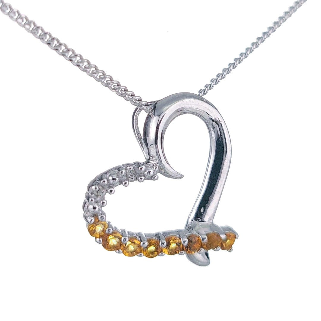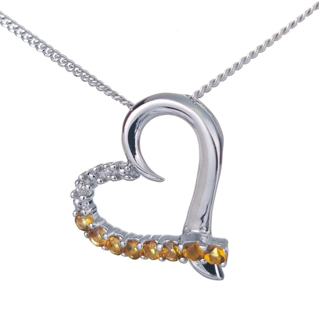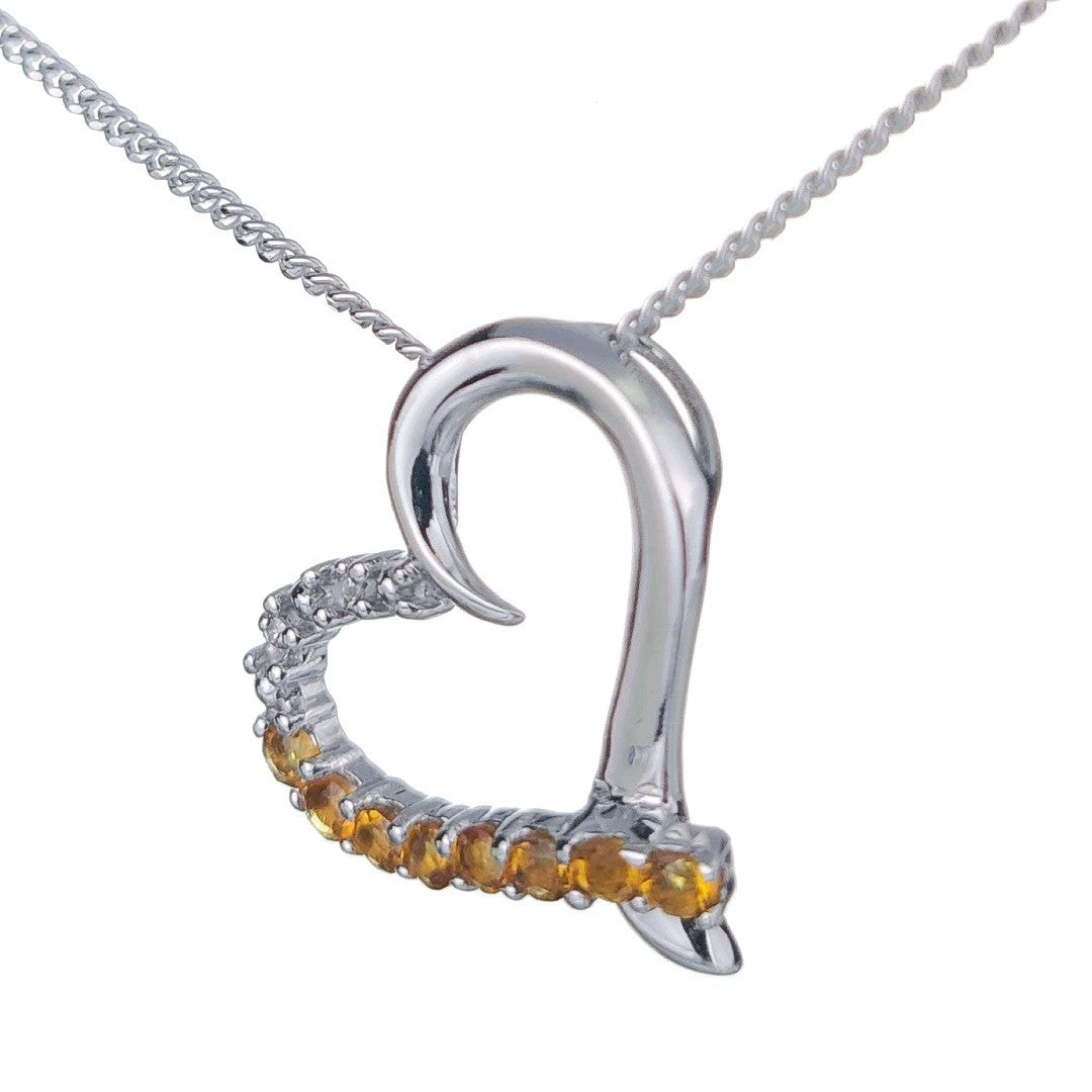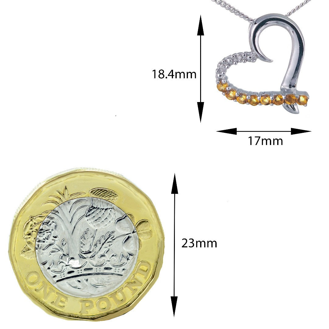 Citrine Necklace Diamond 0.32ct Heart Pendant Sterling Silver November Birthstone