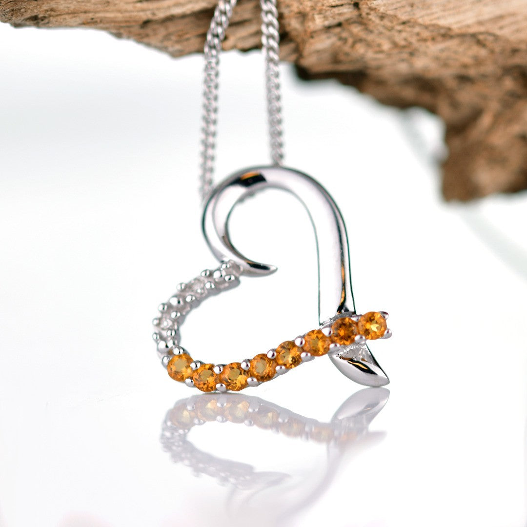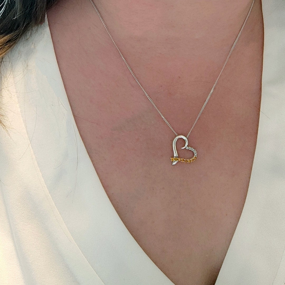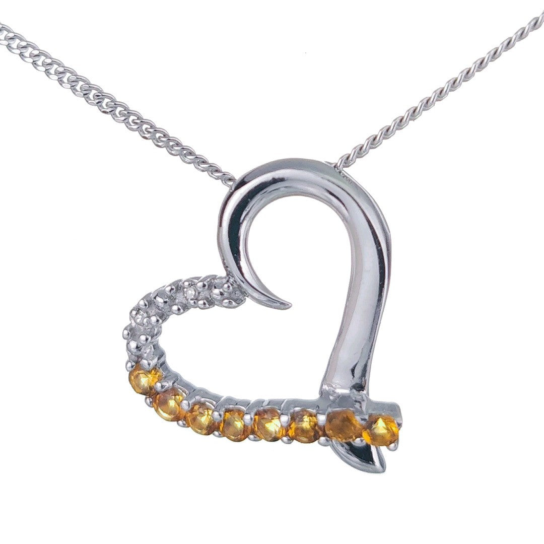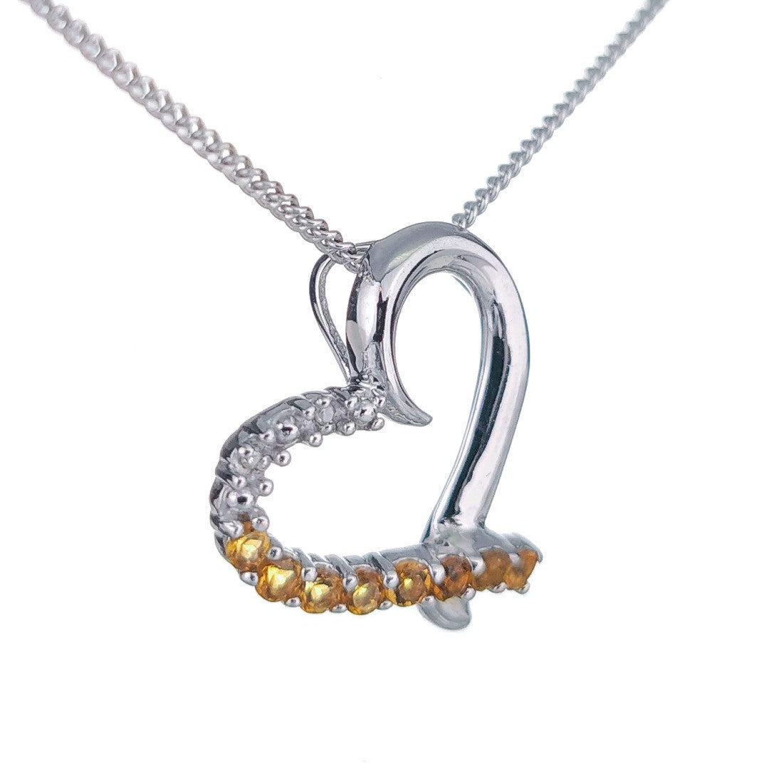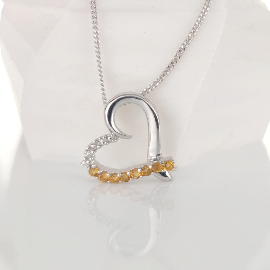Citrine Necklace Diamond 0.32ct Heart Pendant Sterling Silver November Birthstone