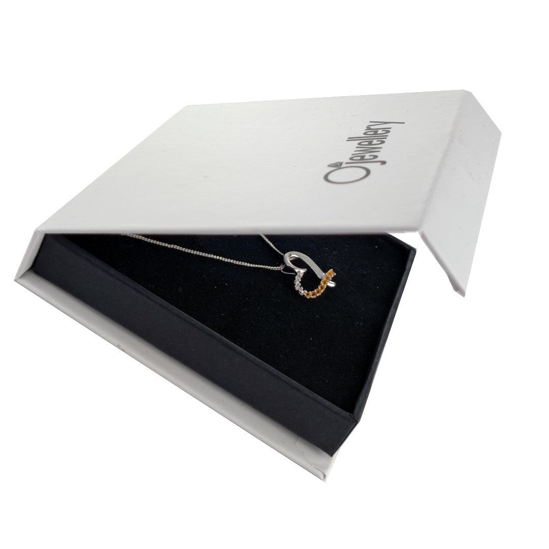 Elegant sterling silver pendant set with a sparkling natural near colourless real diamond and natural yellow citrine.