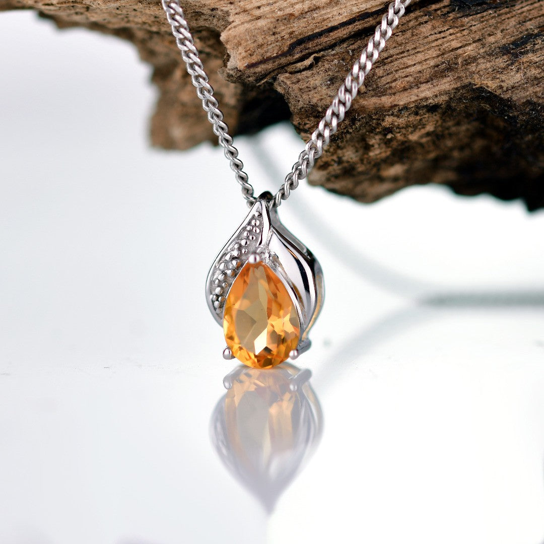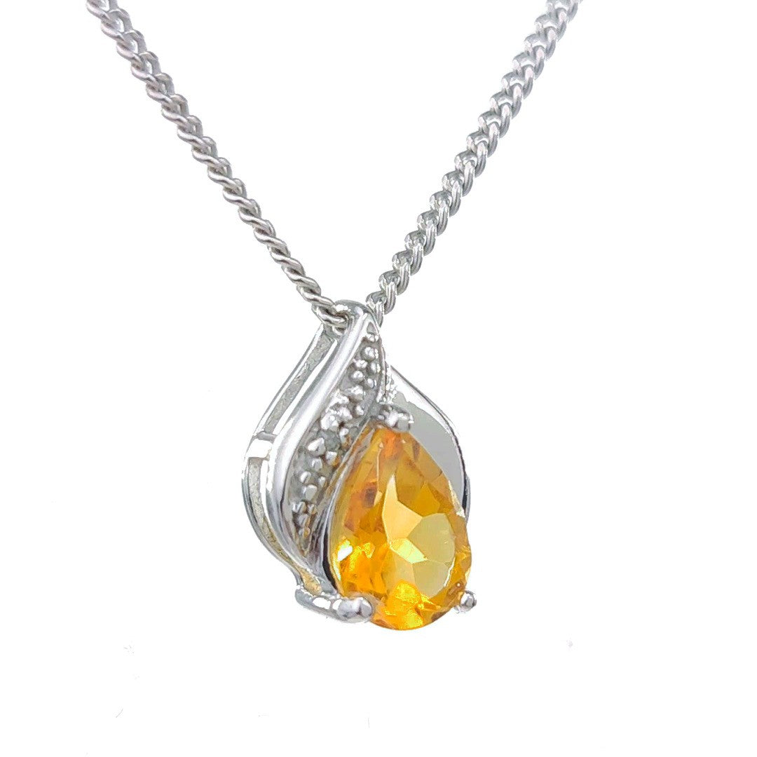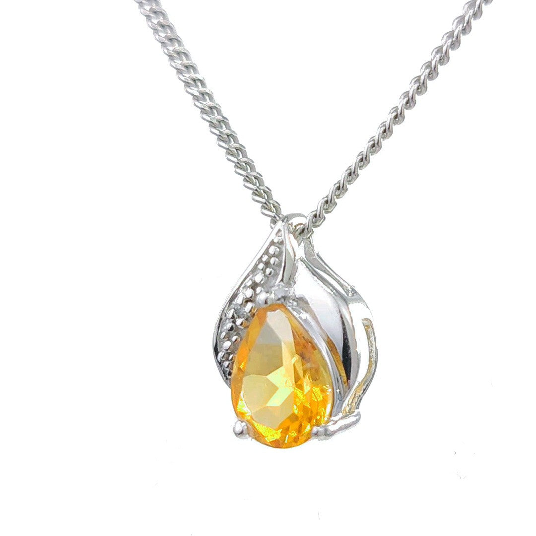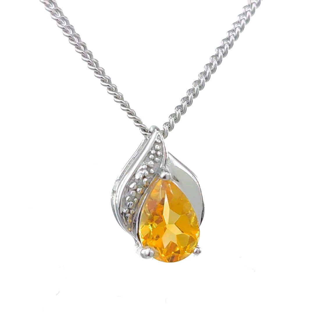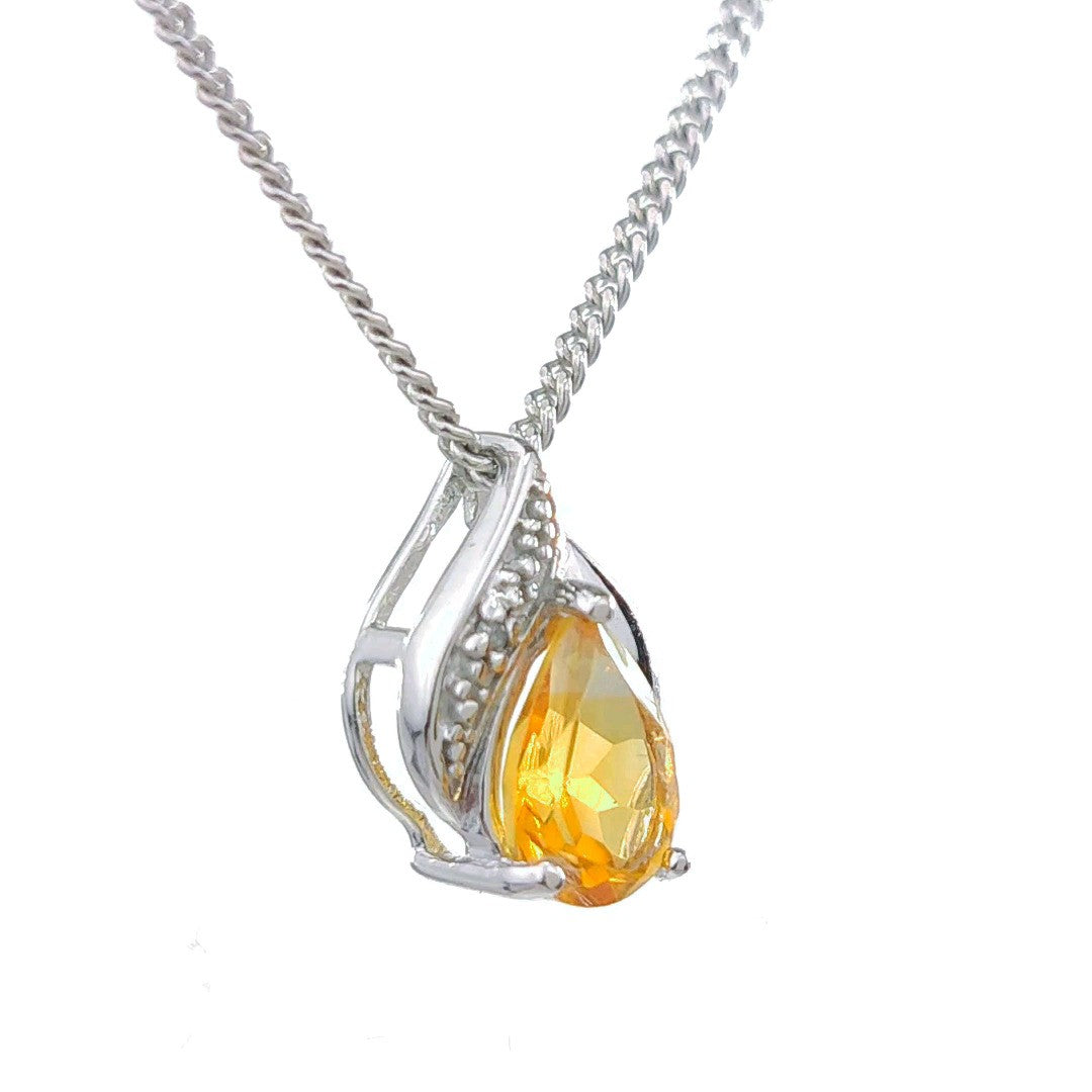 Citrine Necklace Diamond 0.65ct Yellow Pendant Sterling Silver November Birthstone