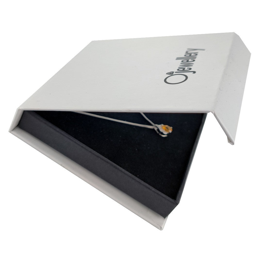 Supplied in an Ojewellery presentation box, within a ribbon handled gift bag, complete with product information authenticity card with space for a gift message and a jewellery cleaning cloth to keep your jewellery in ready to wear condition.