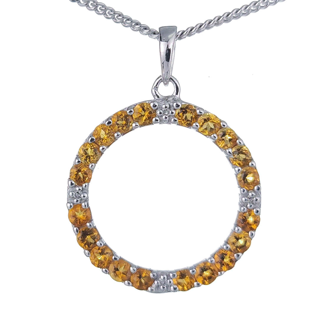Citrine Necklace Diamond 0.8ct Yellow Circle Pendant Sterling Silver November Birthstone