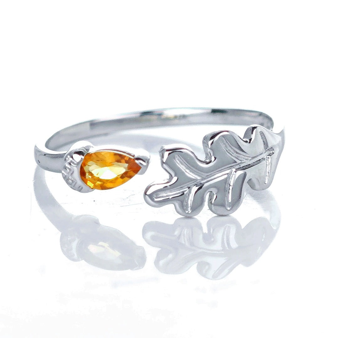 The oak leaf is a symbol of strength, and the citrine brings energy and optimism. This ring is more than just an accessory - it's a reminder of nature's beauty.