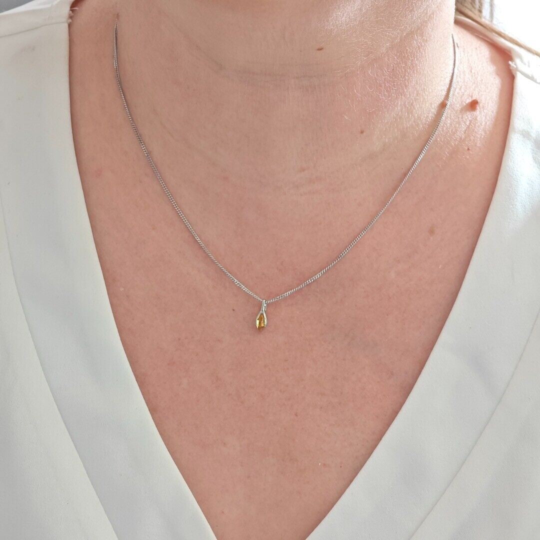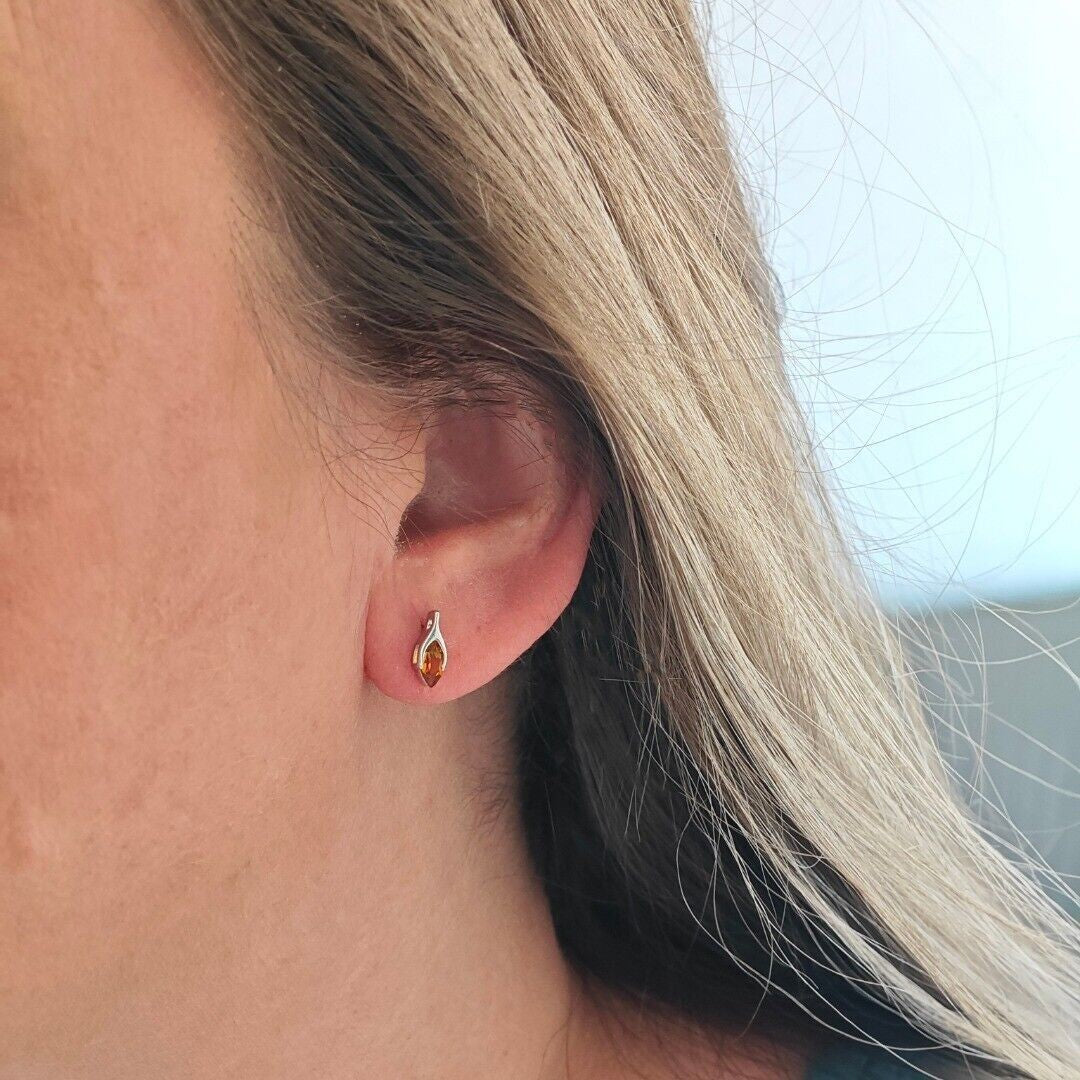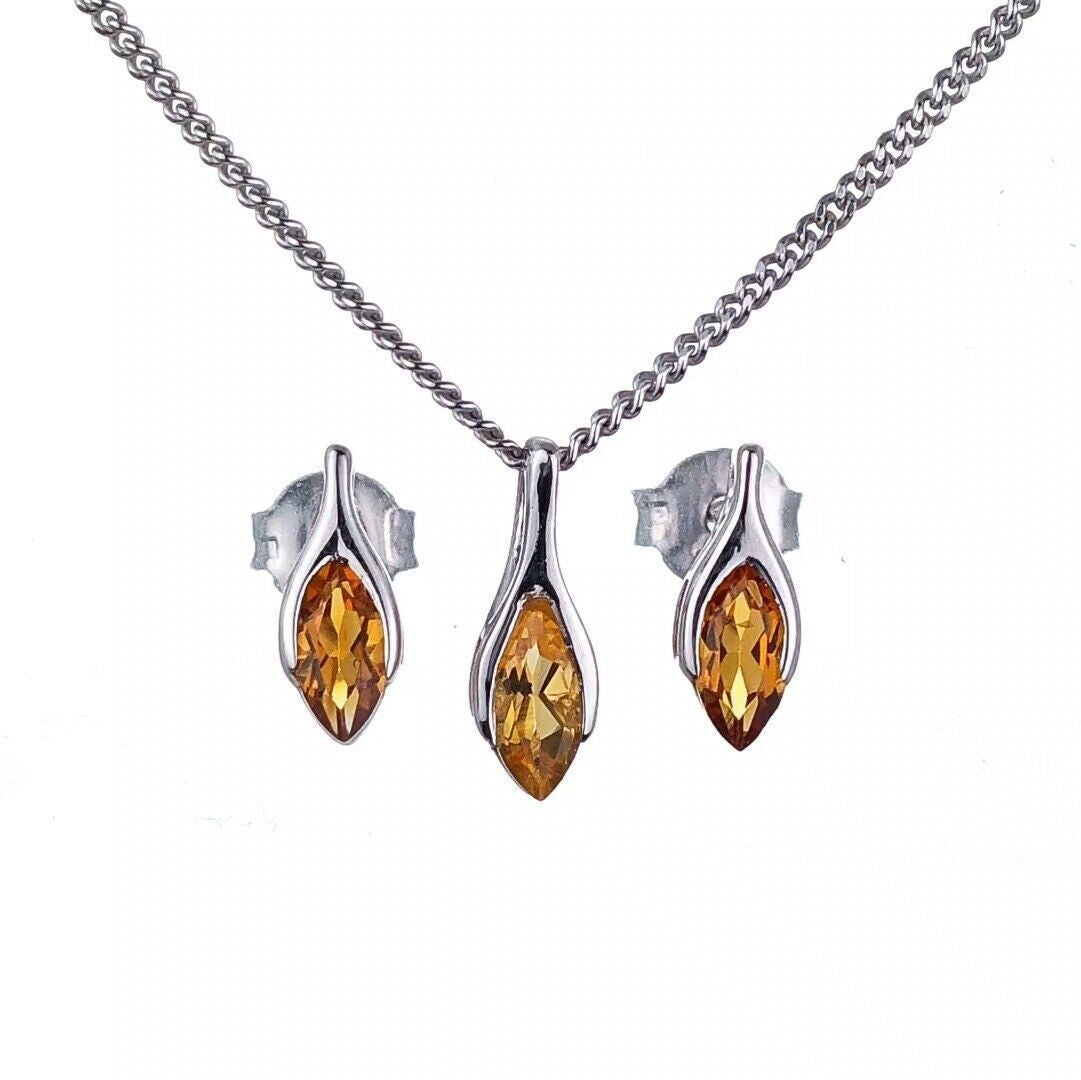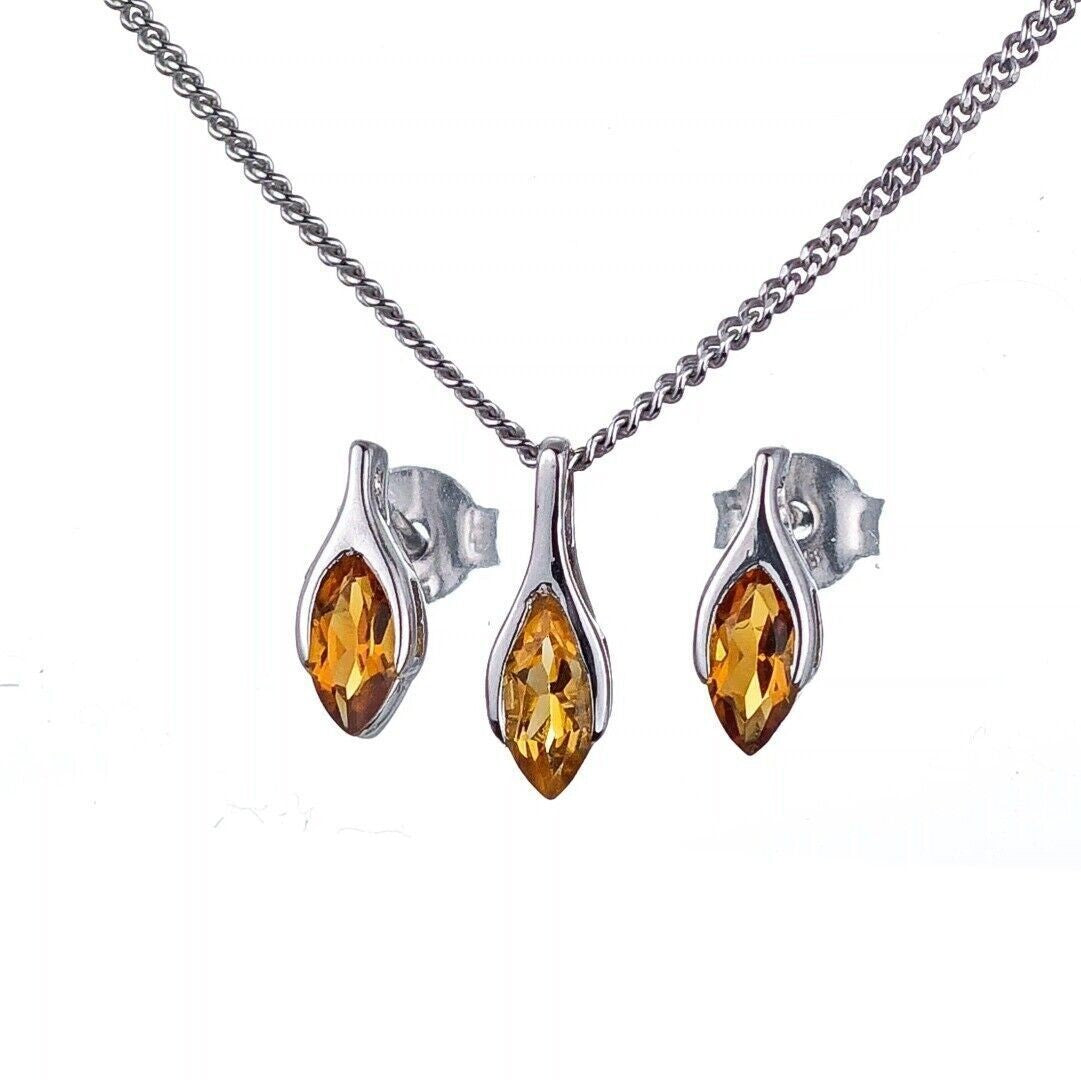 Citrine Set Necklace Earrings Sterling Silver Studs Minimalist Marquise