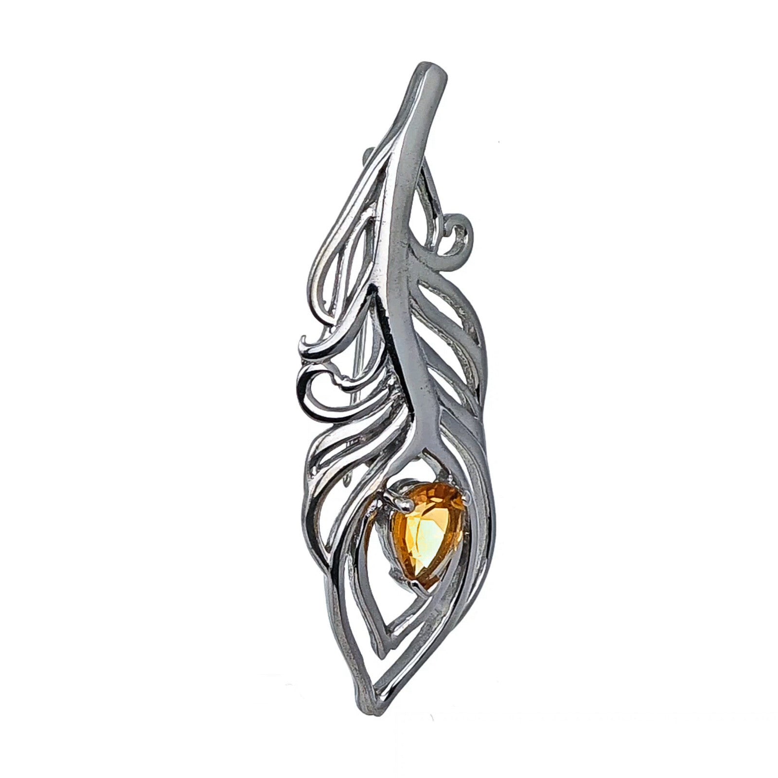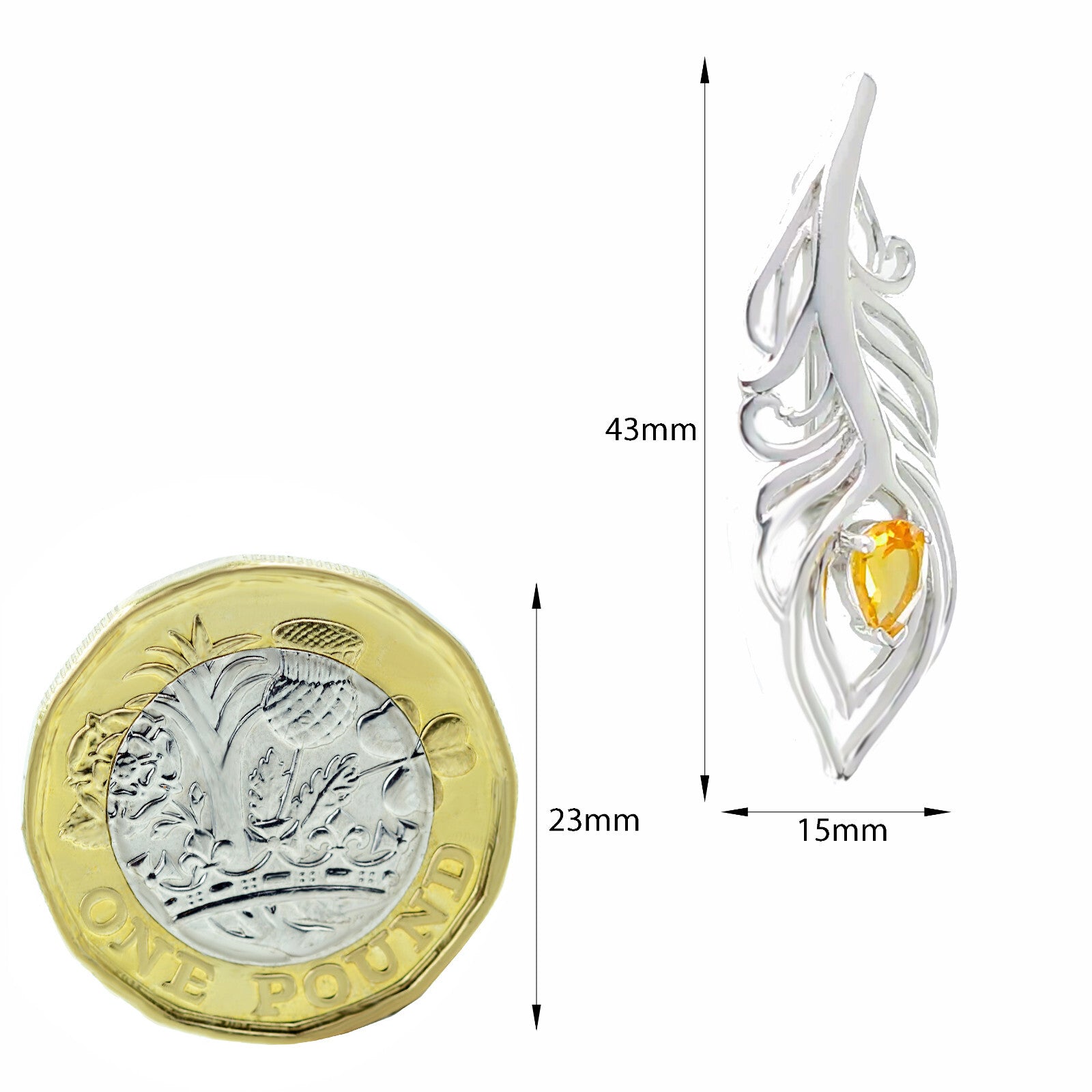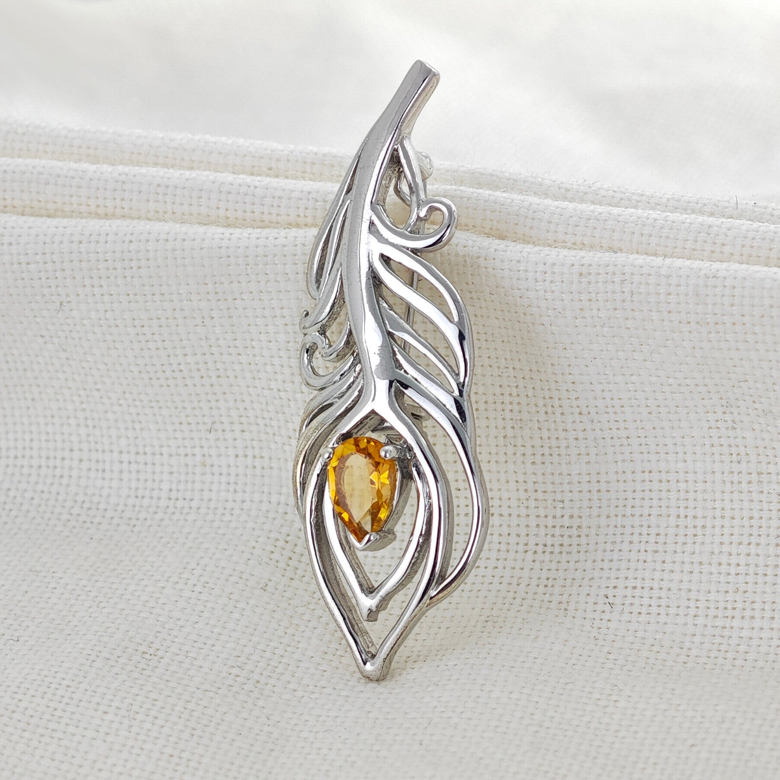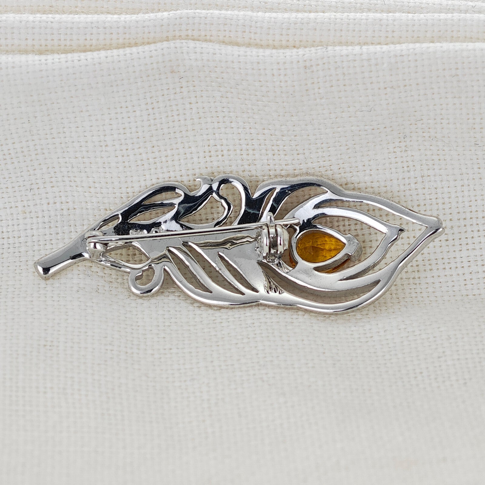 Citrine Sterling Silver Brooch 0.65ct Yellow Peacock Feather