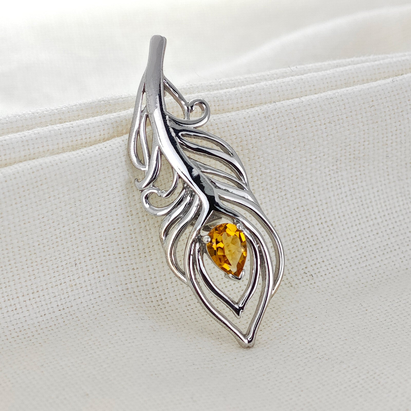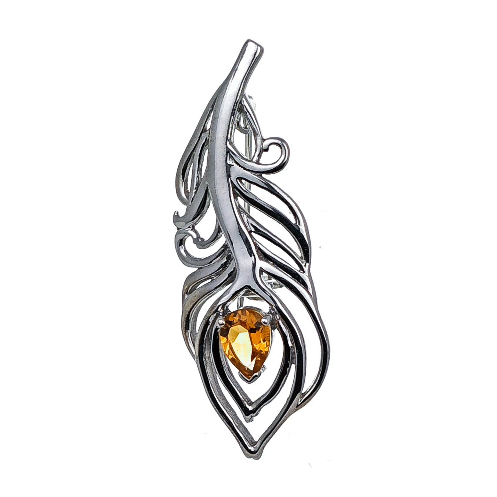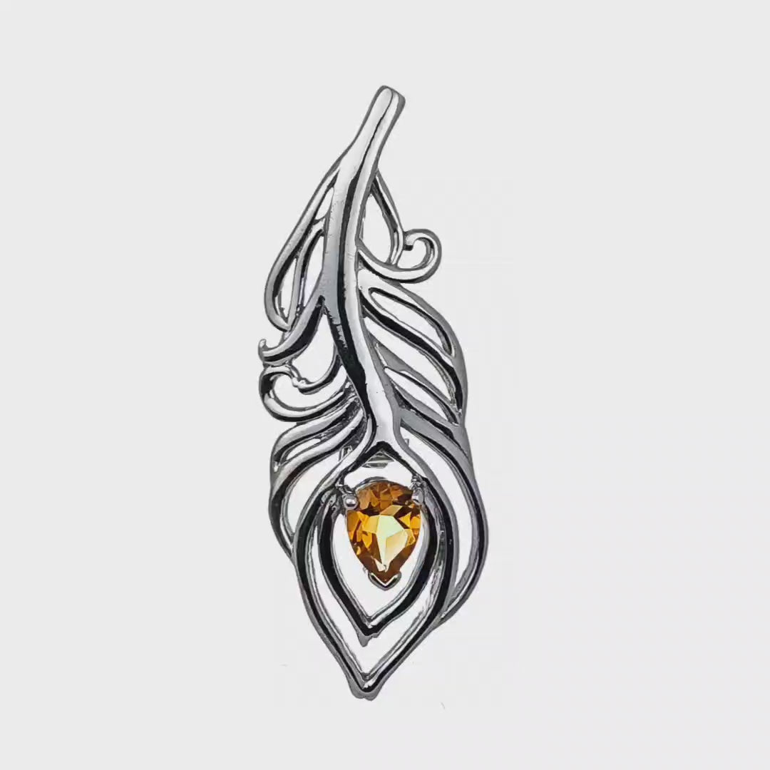Citrine Sterling Silver Brooch 0.65ct Yellow Peacock Feather