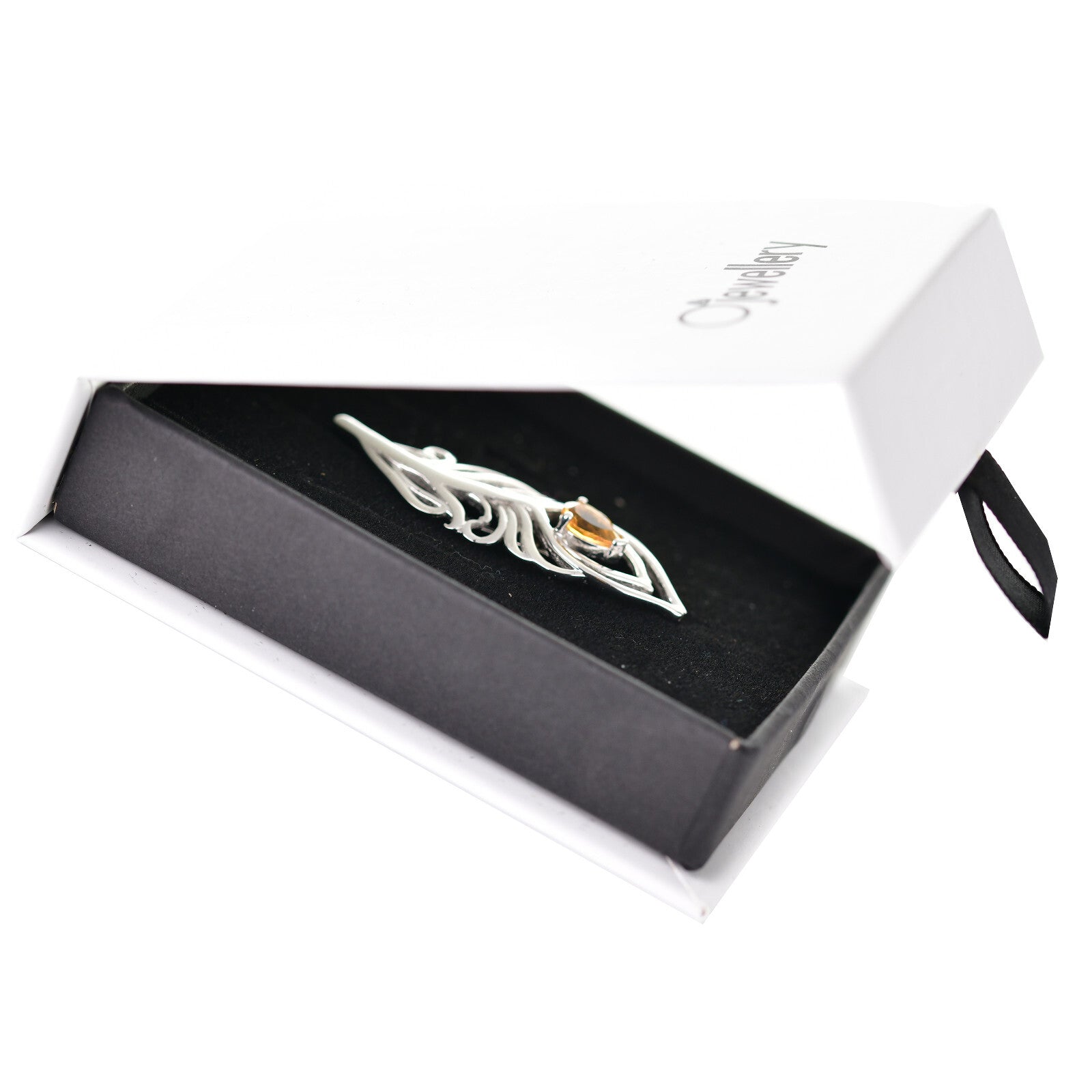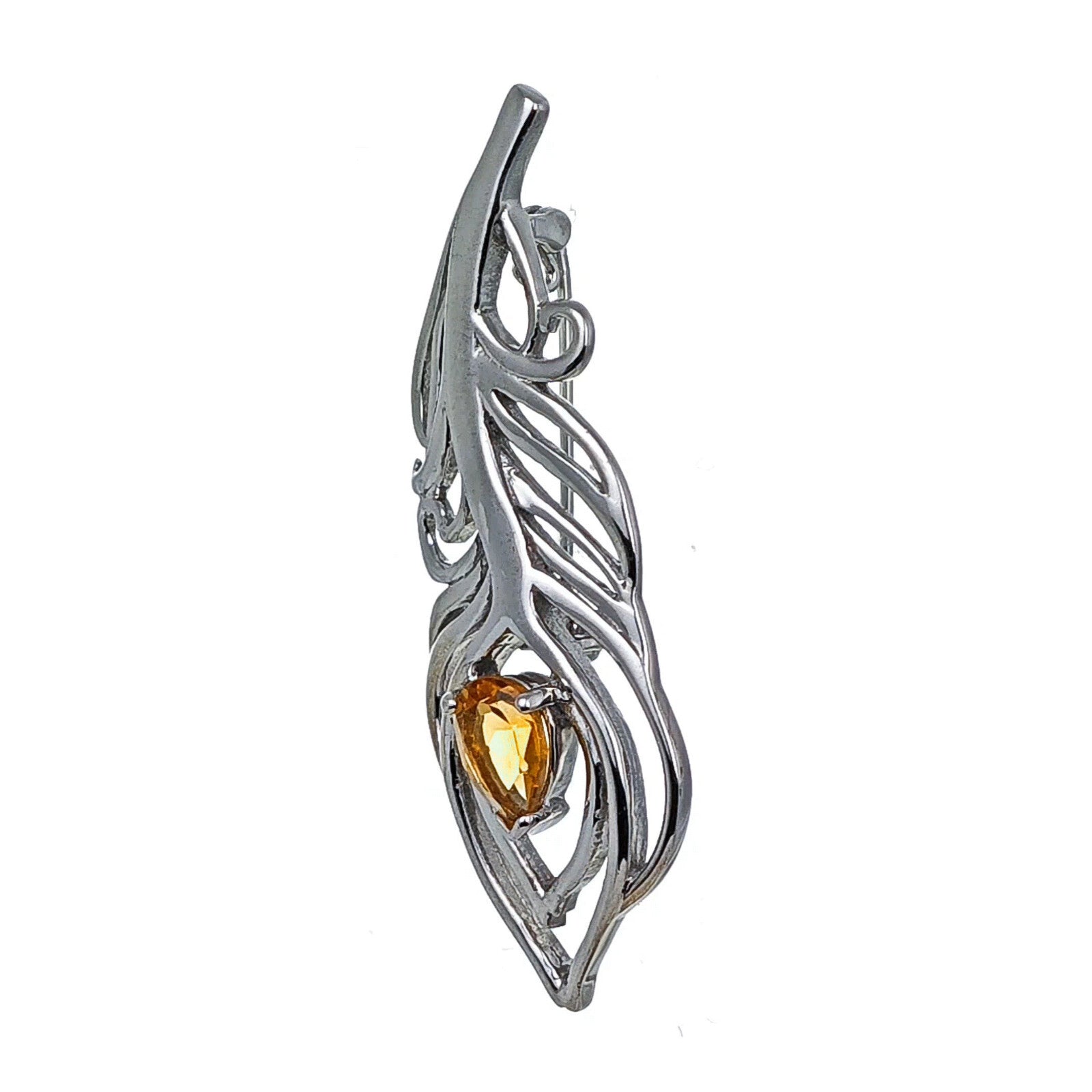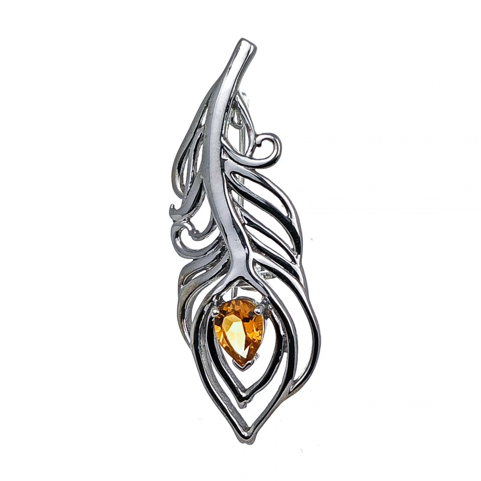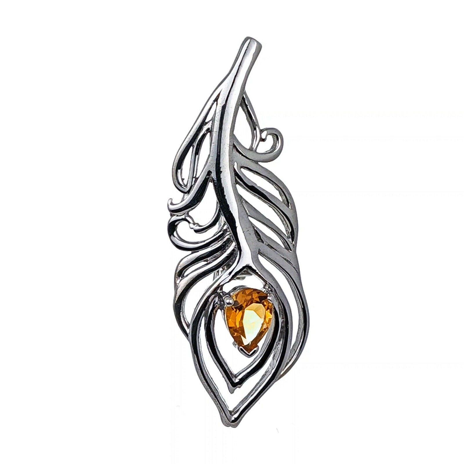 Citrine Sterling Silver Brooch 0.65ct Yellow Peacock Feather