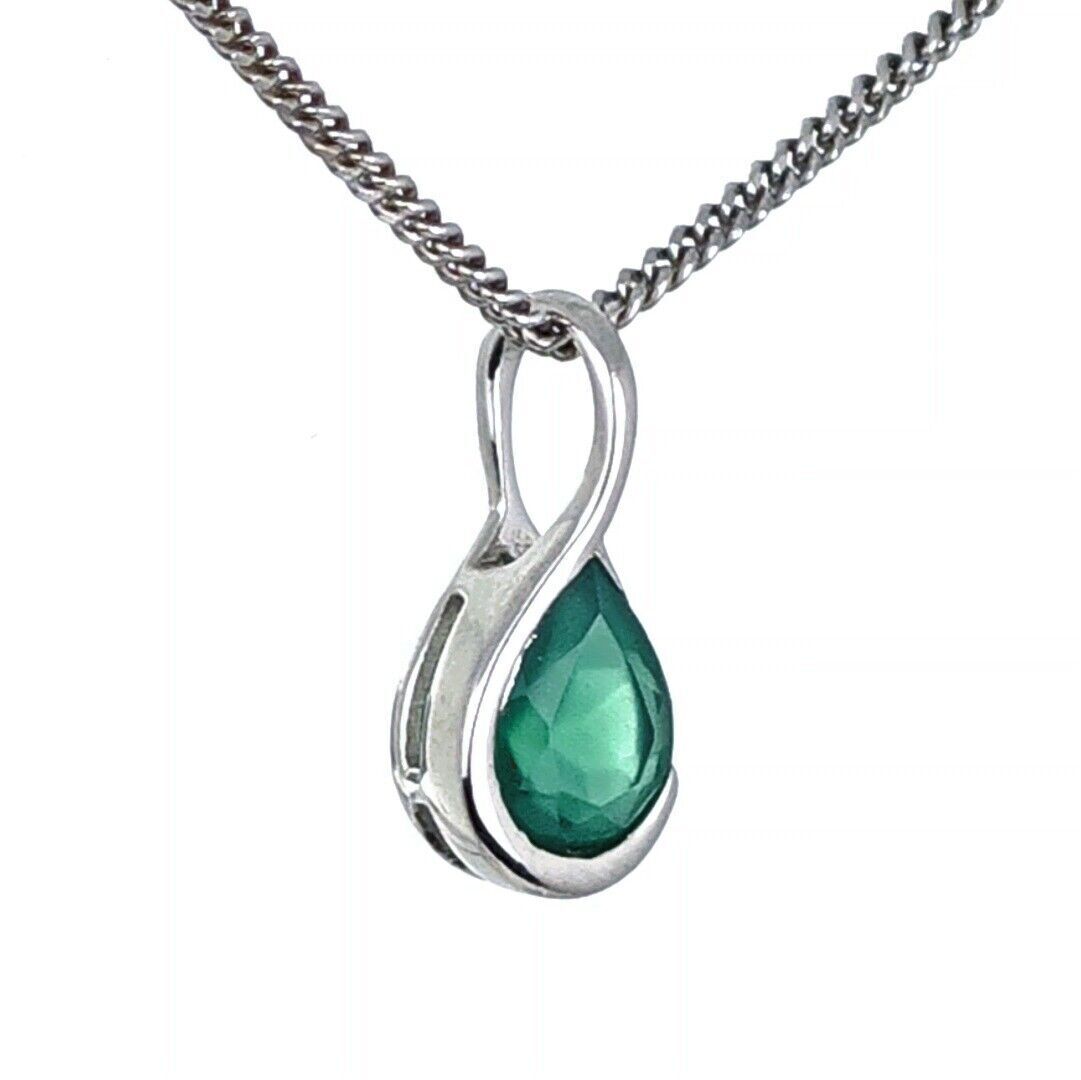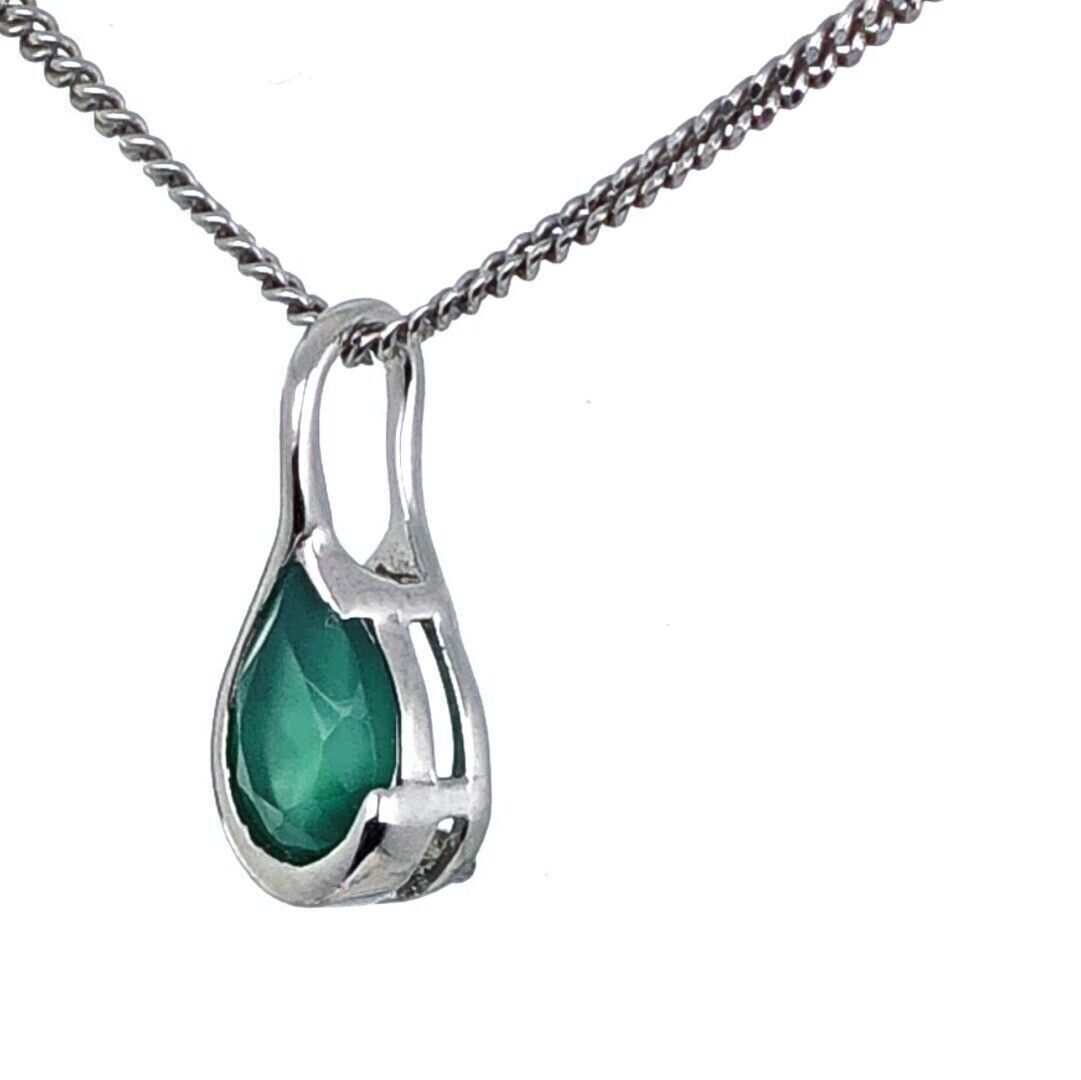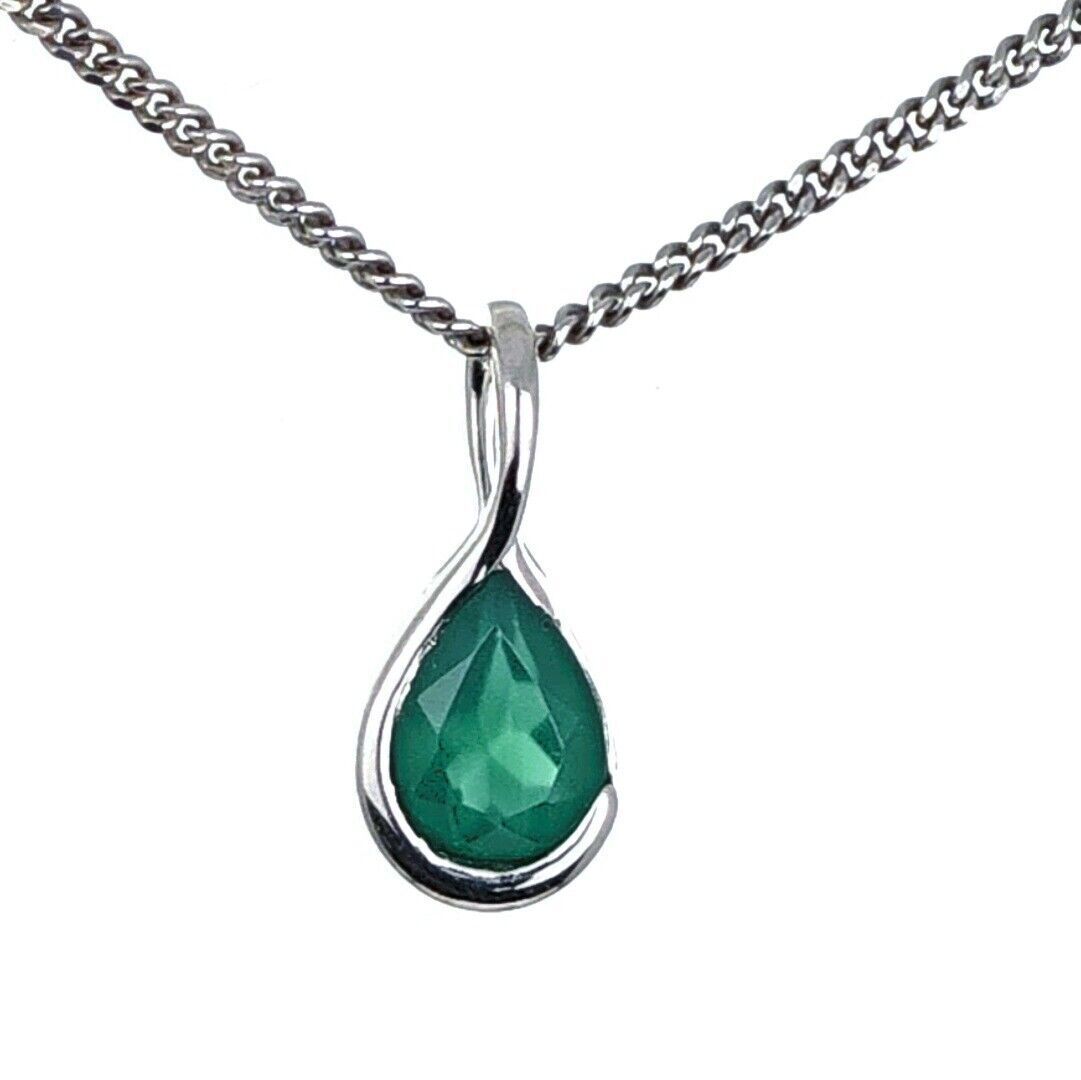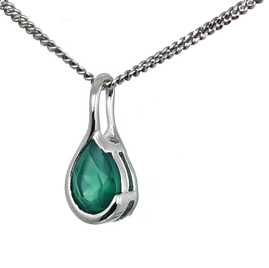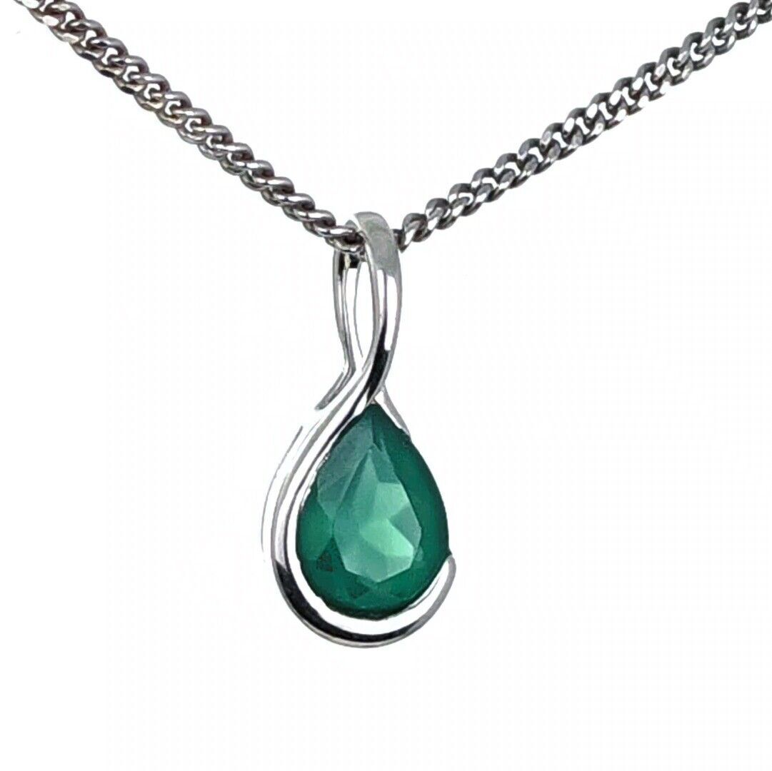 Elegant onyx pear pendant. Set in a raised rub over setting made of sterling silver to allow light to the back of the stone and show off its natural sparkle. The natural green onyx are from Inida. The stone measures 7x5 mm