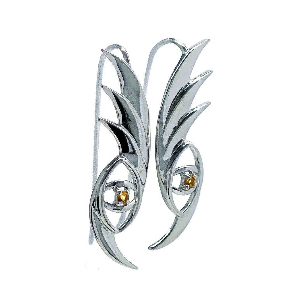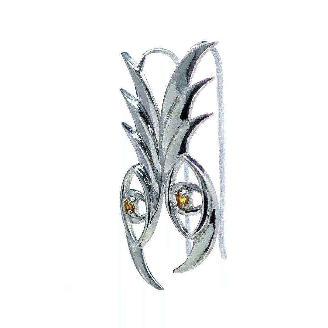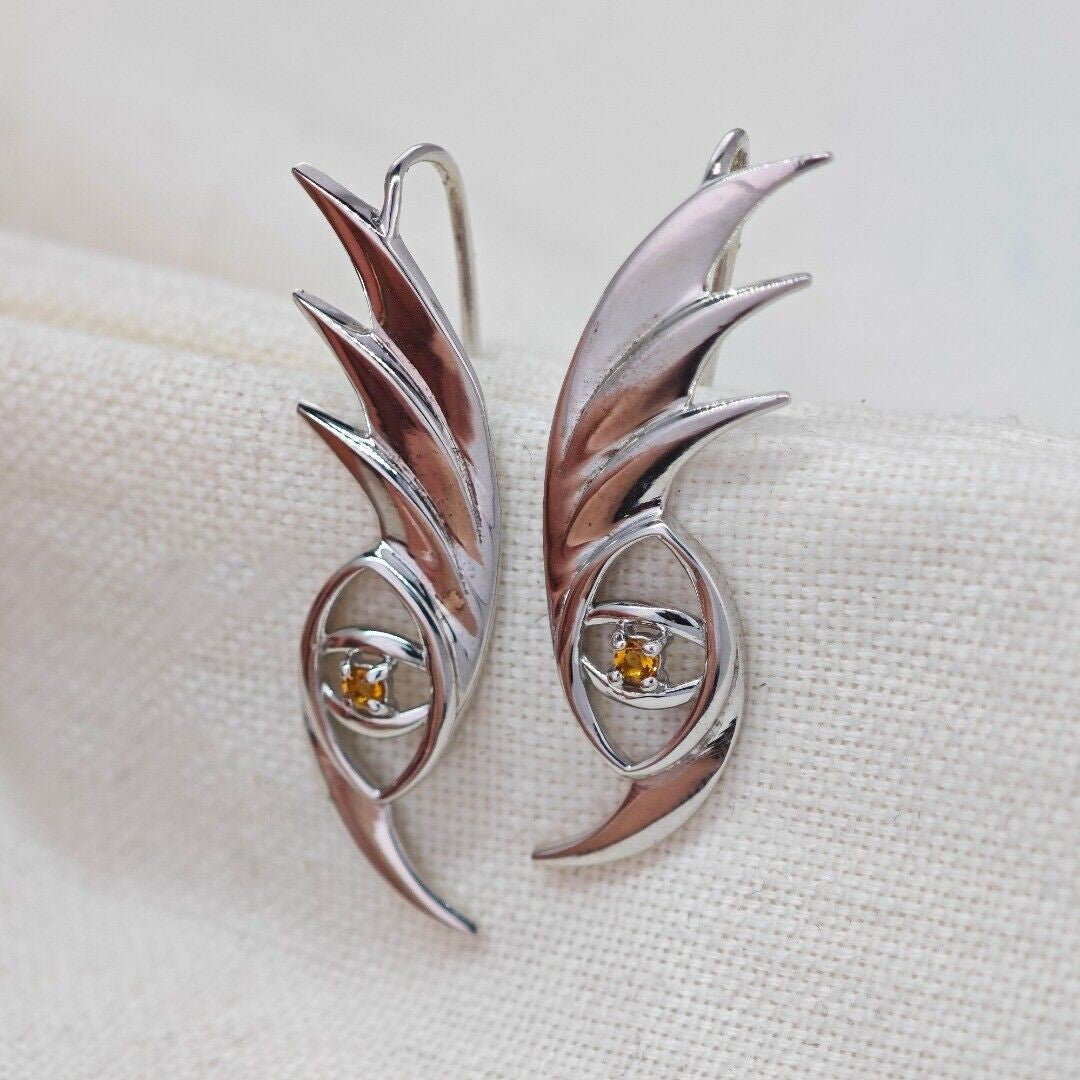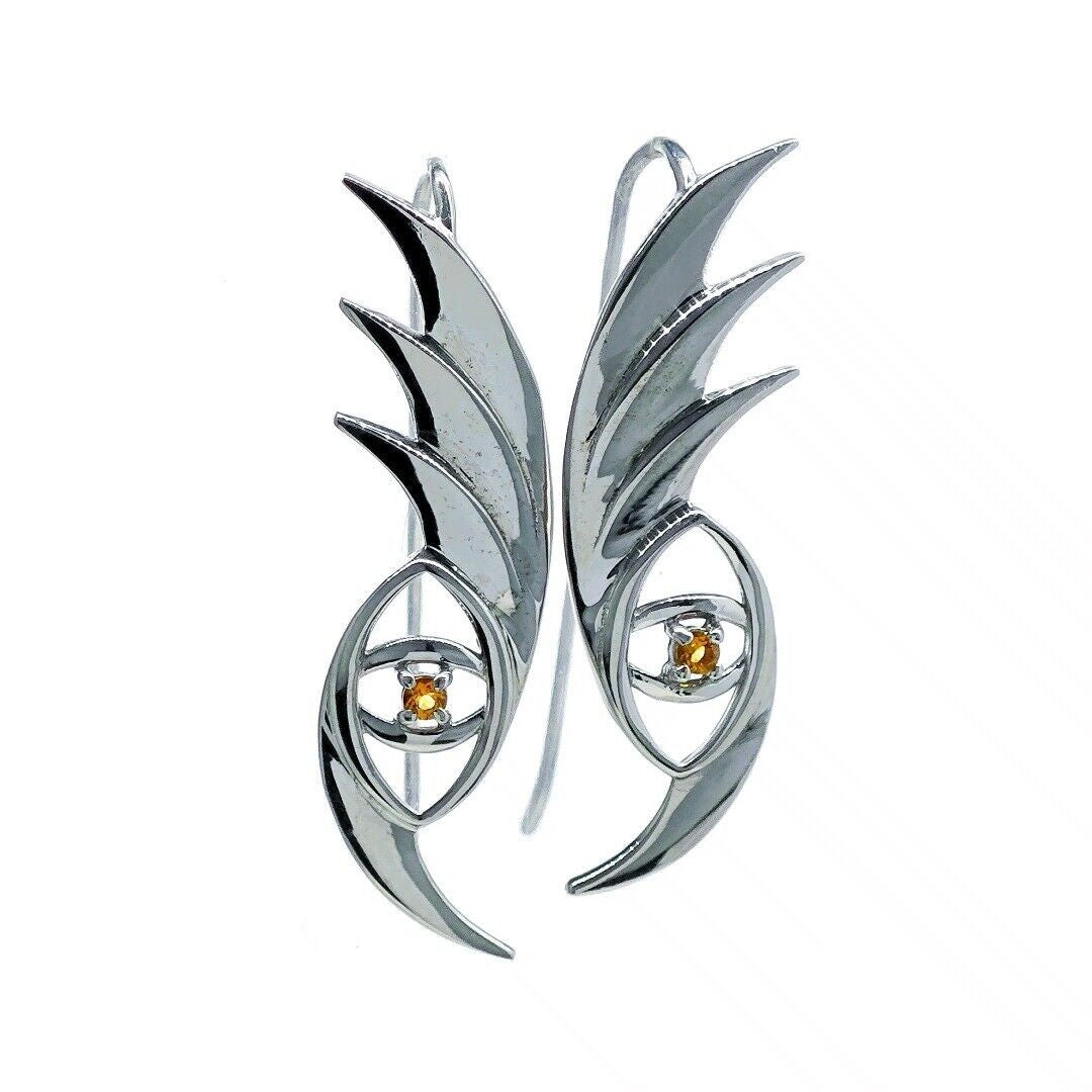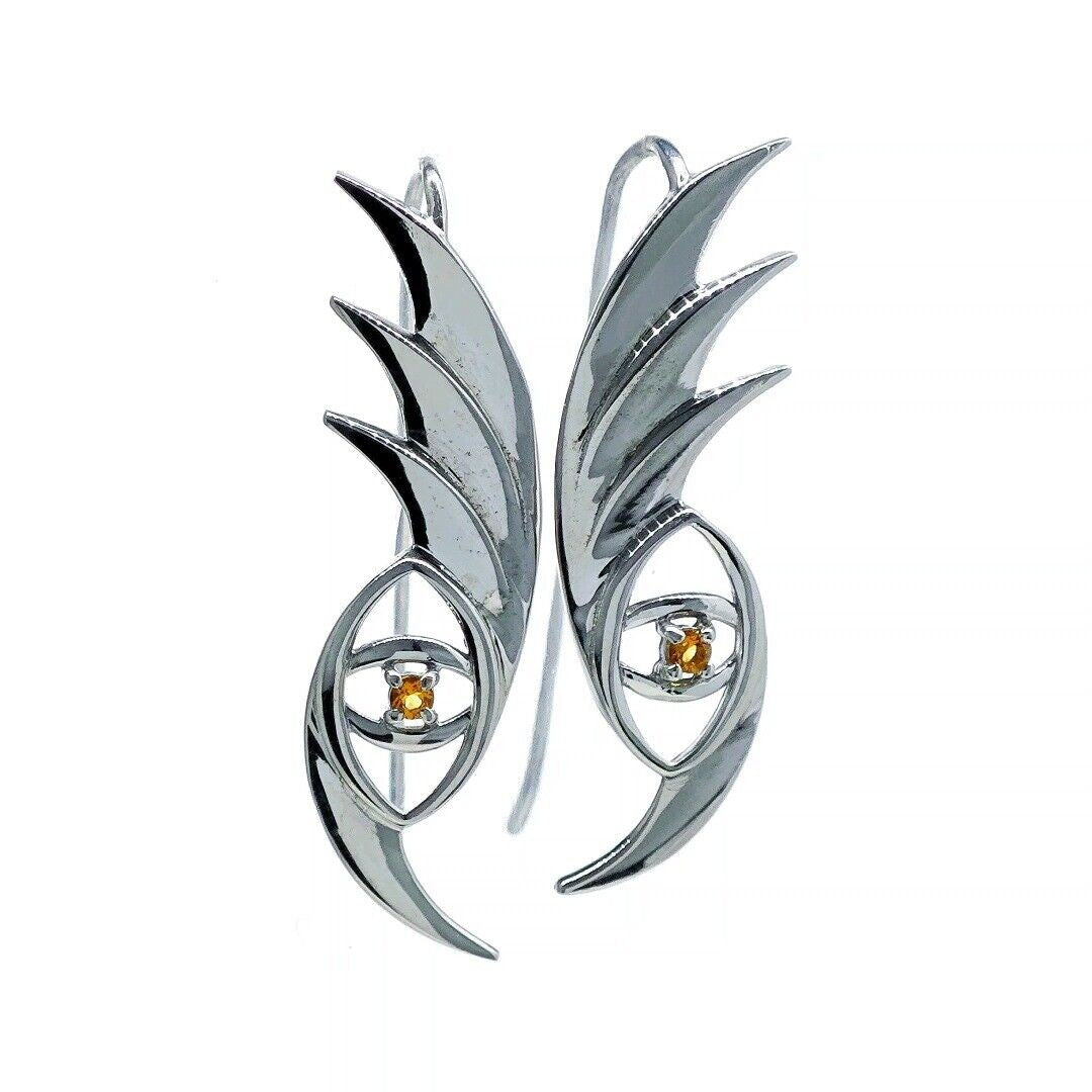 Evil Eye Dangle Earrings Sterling Silver Natural Yellow Citrine