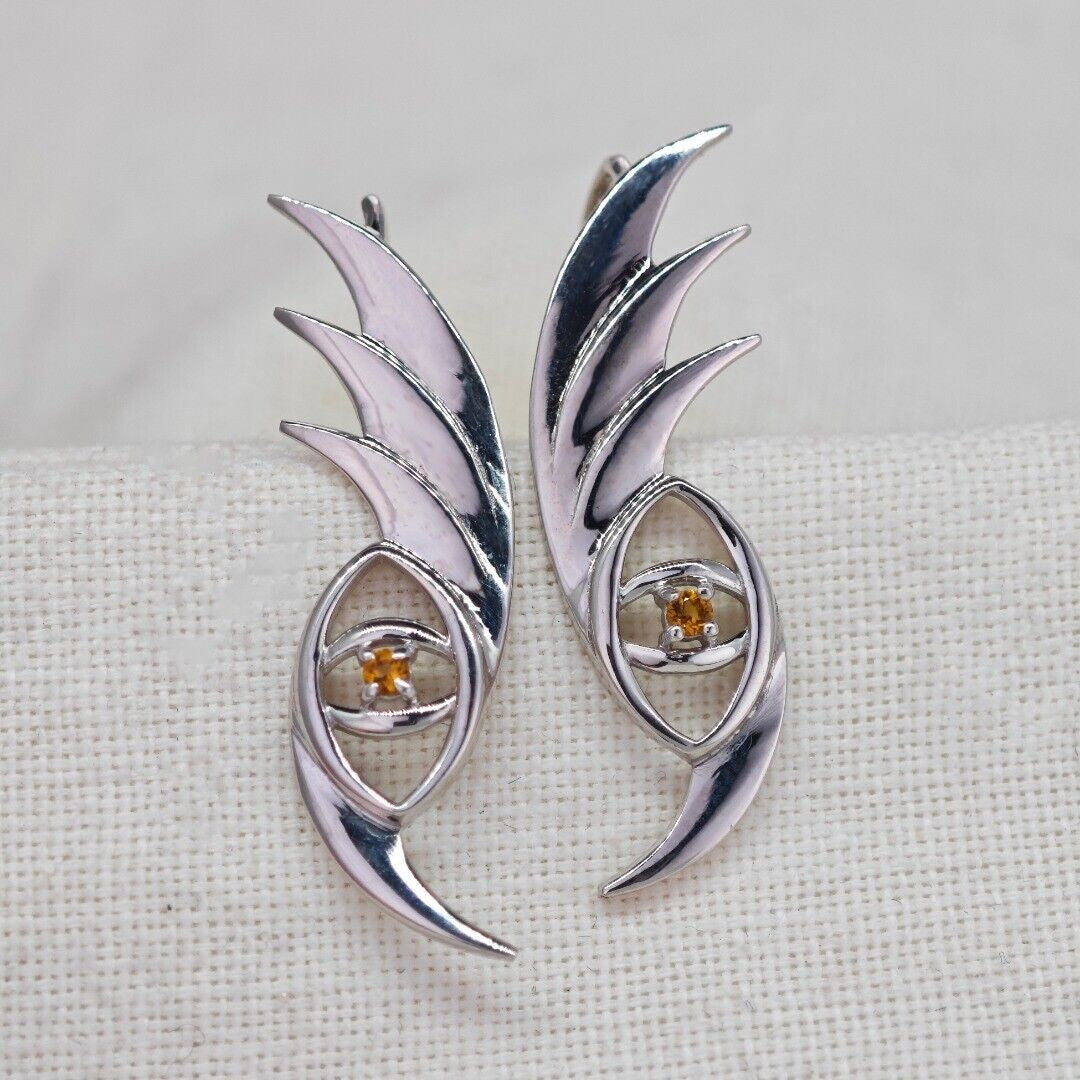 This exclusive Ojewellery design goes beyond fleeting trends. The combination of the protective evil eye symbol and the vibrant citrine creates a pair of earrings that's both stylish and meaningful. Wear them with confidence, knowing you're adorned with a symbol of good fortune and exquisite craftsmanship.