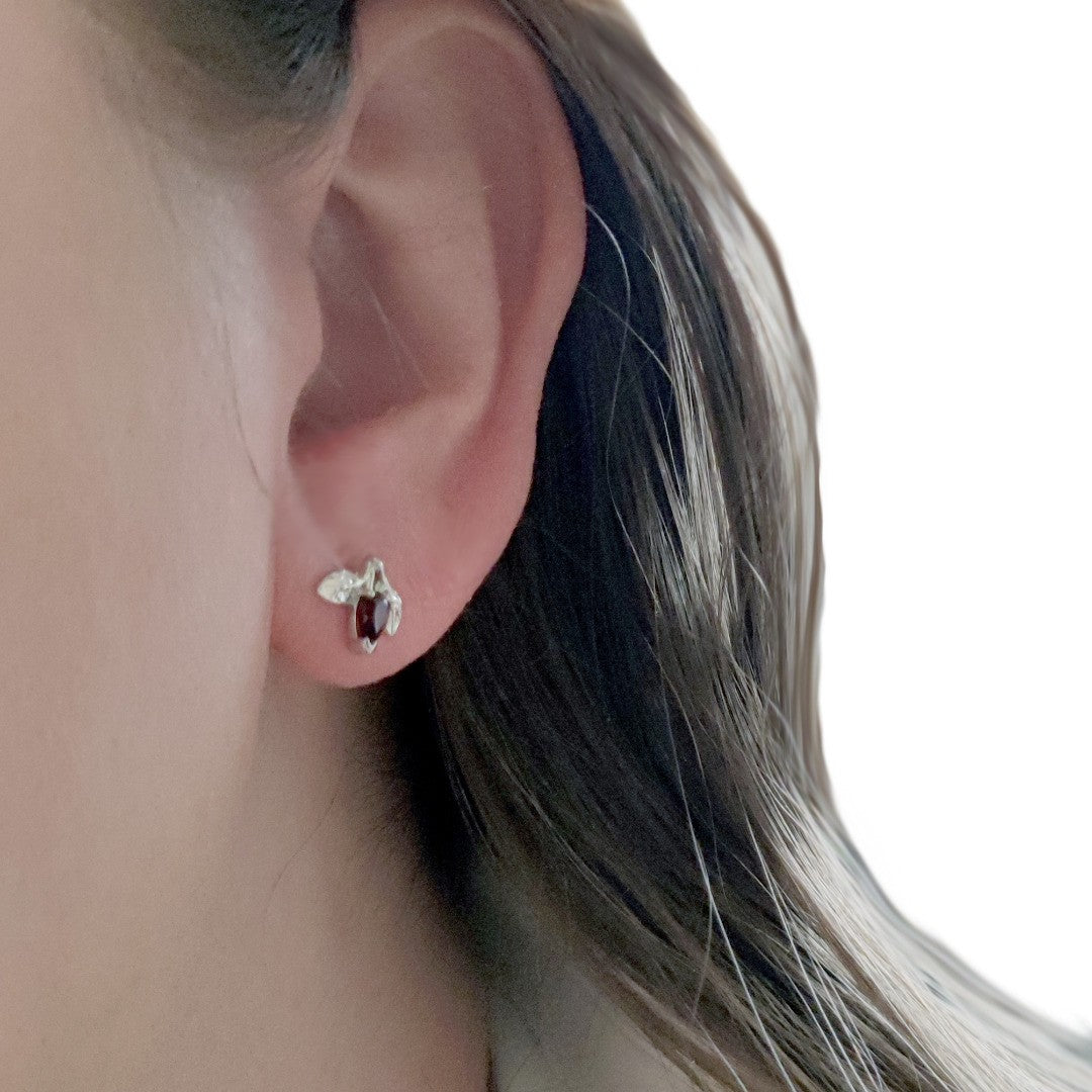 Garnet Earrings 0.5ct Pear Red Leaf Studs Sterling Silver