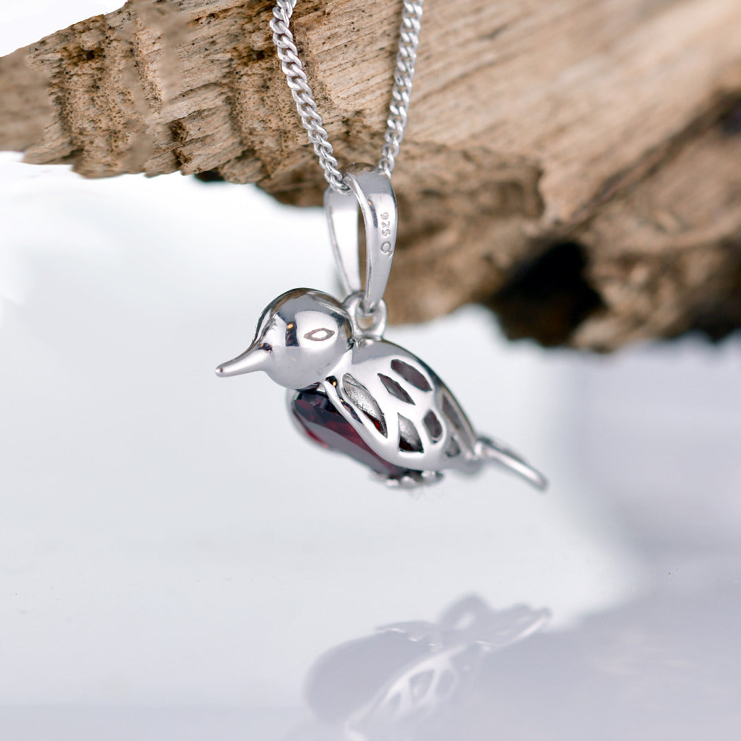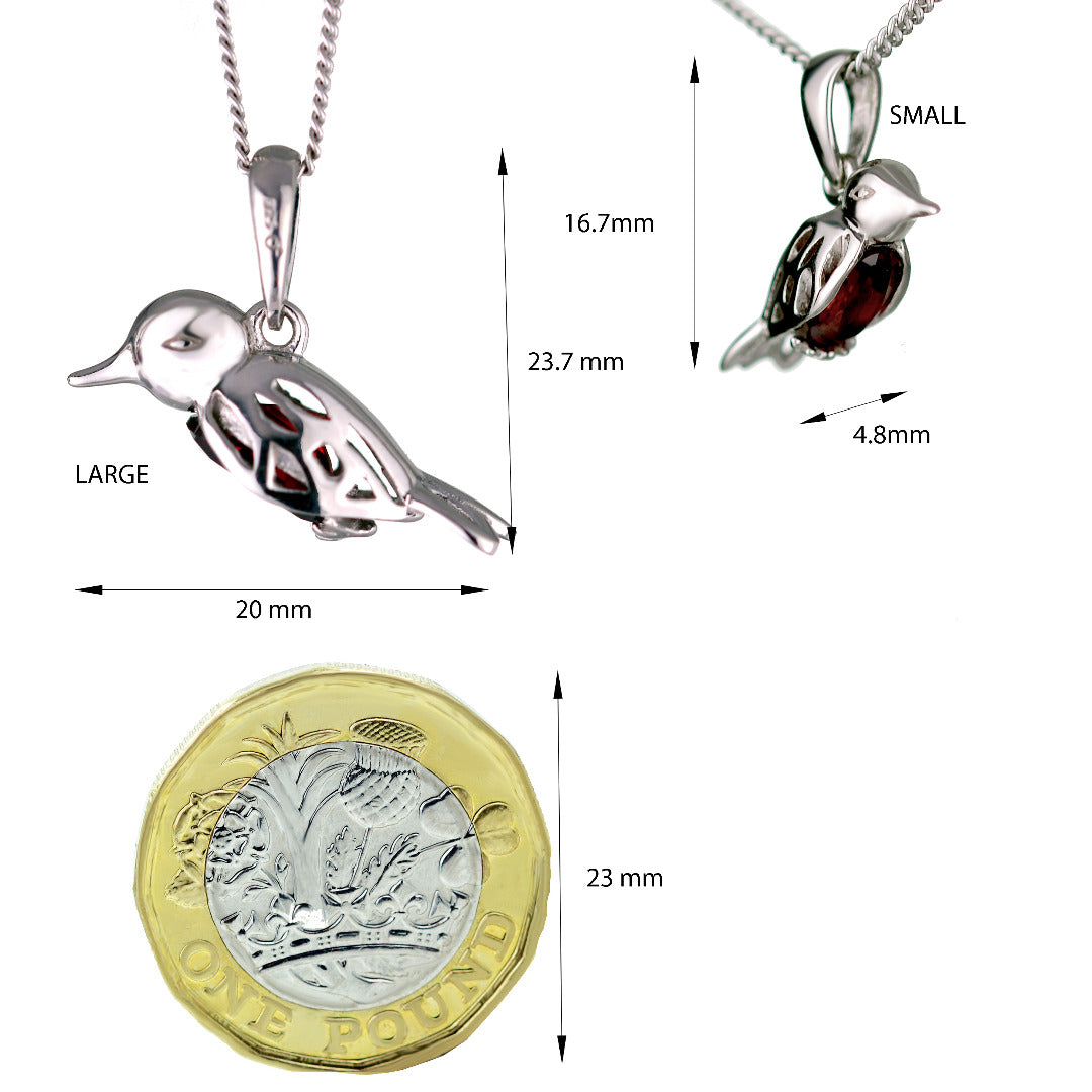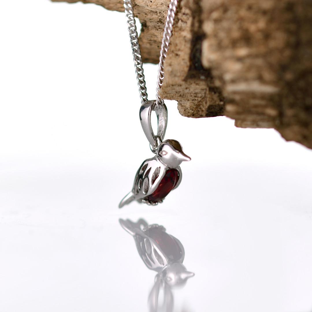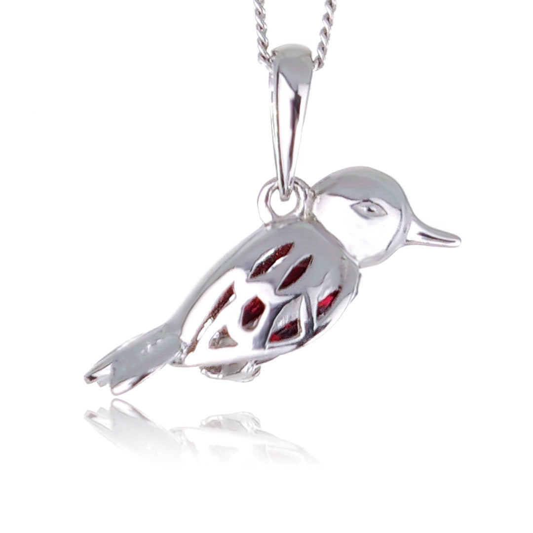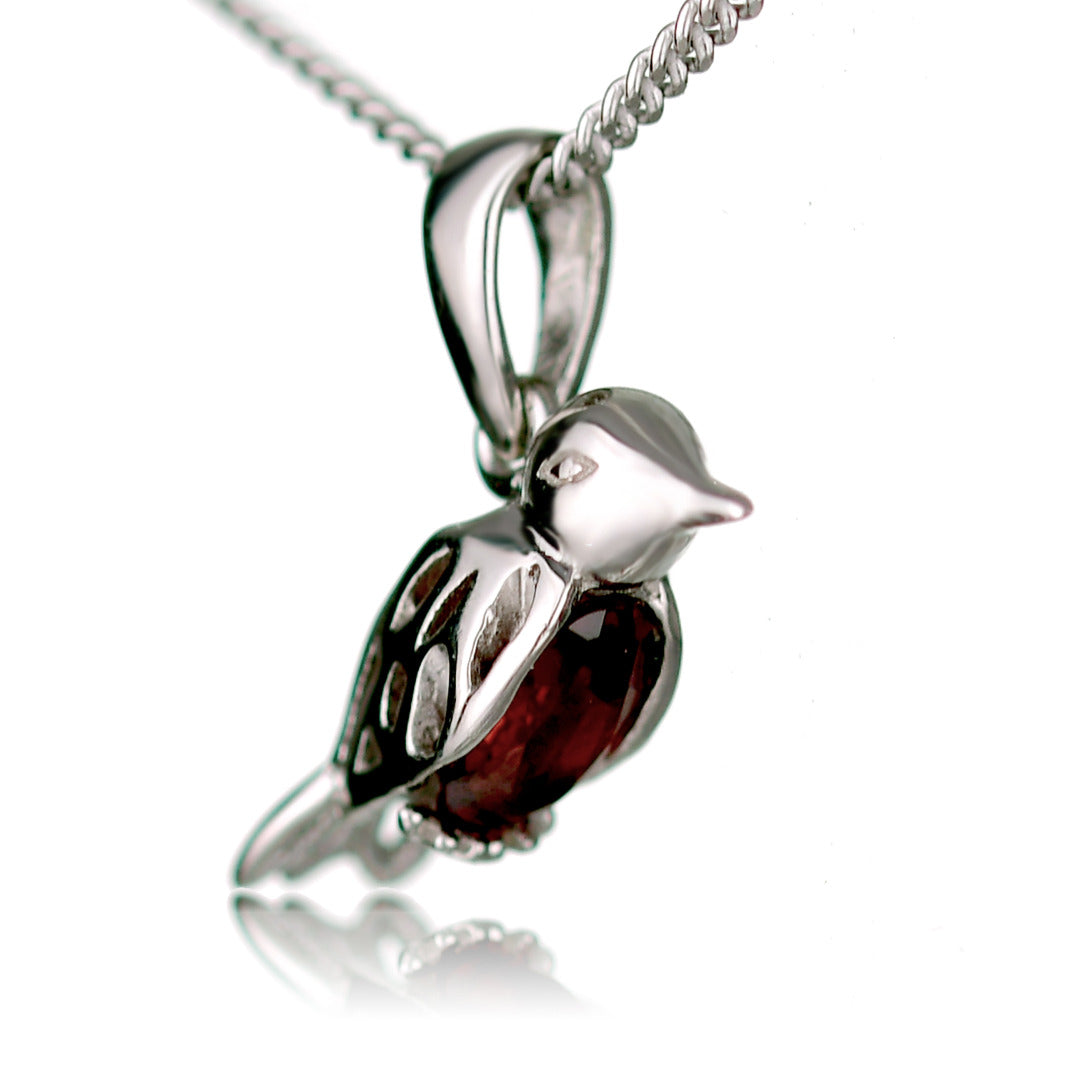 Garnet Necklace Robin Red Breast Christmas Pendant Sterling Silver January Birthstone