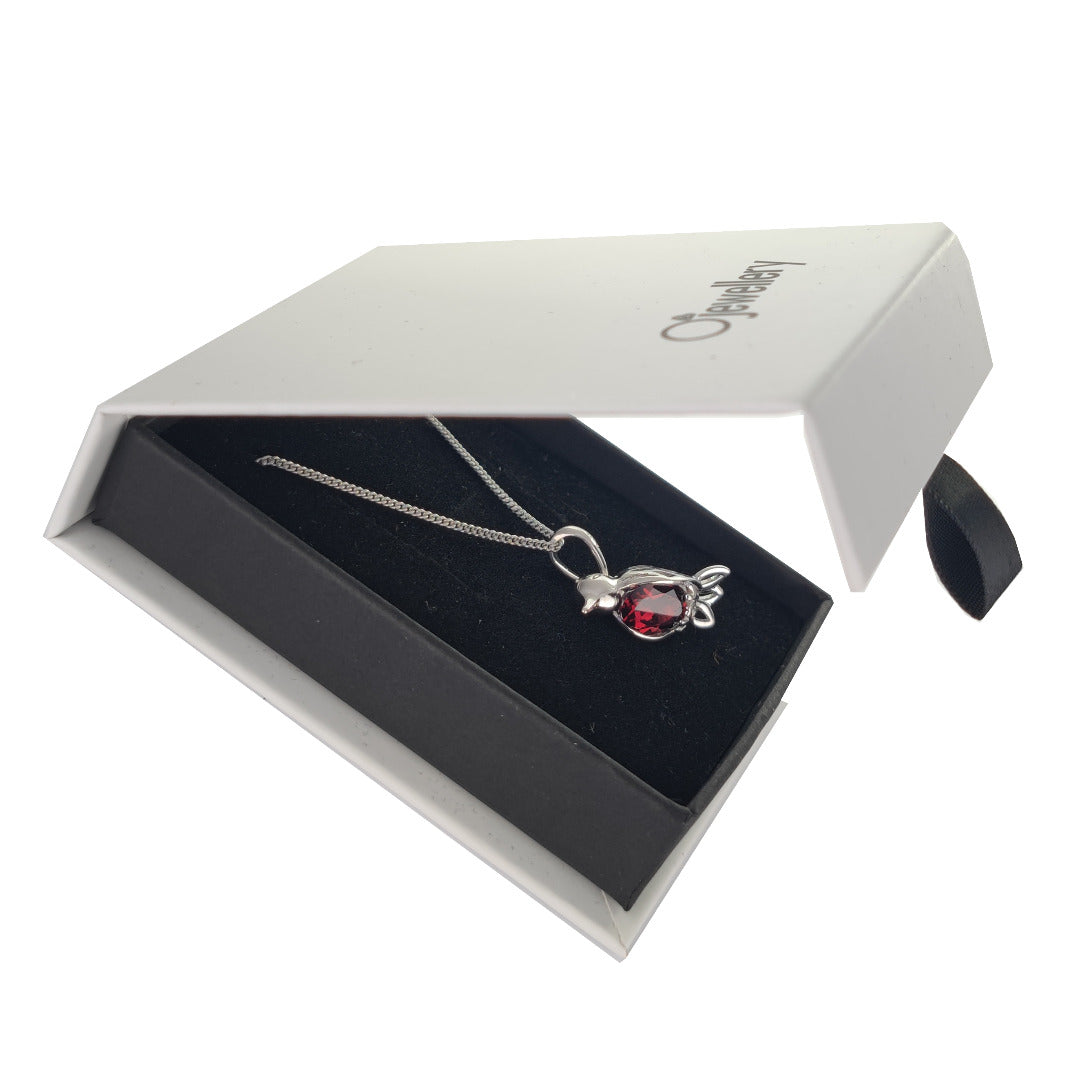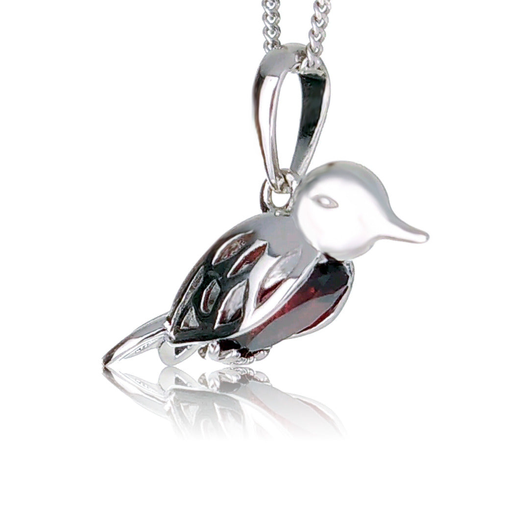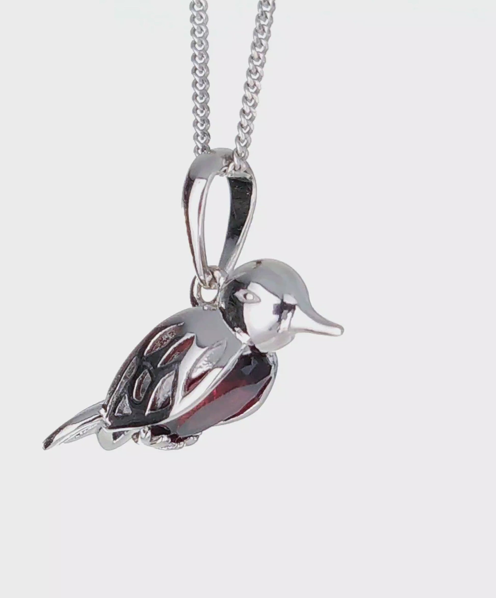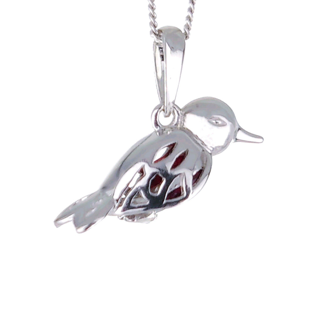 Garnet Necklace Robin Red Breast Christmas Pendant Sterling Silver January Birthstone